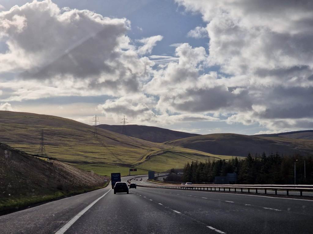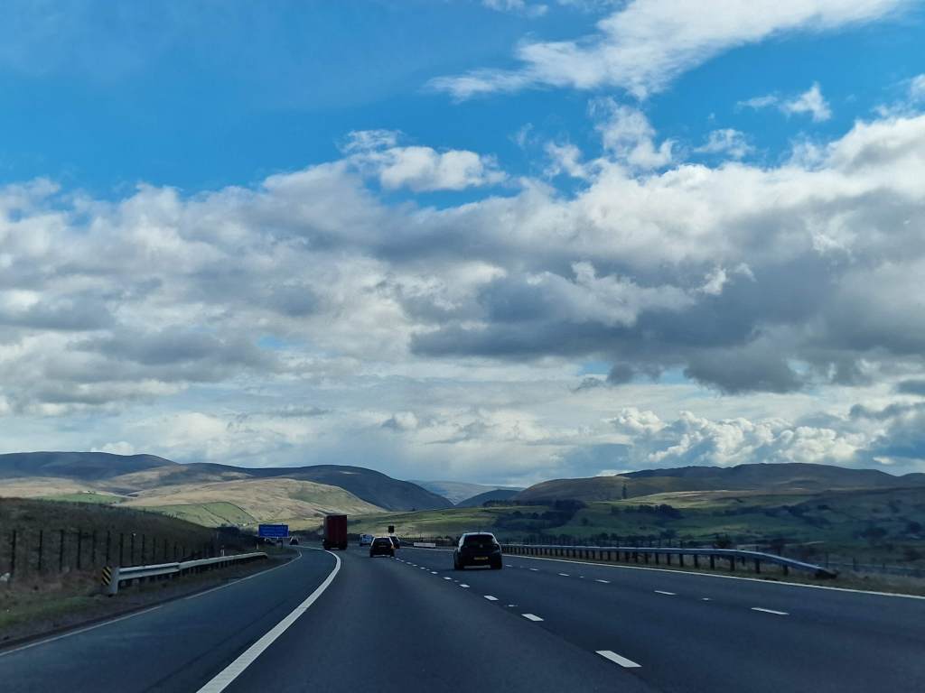 I started off, more confident driving in Scotland, and we made it almost all the way to the border before swapping over. I think my other half was antsy to get some motorway driving in, and our speed definitely picked up a bit as we headed south. At the border, our route turned from the A74 into the M6, one of the largest roads in the UK.