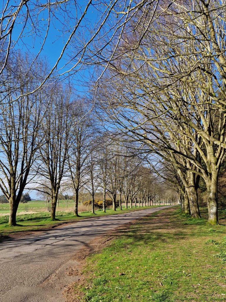 Eventually I reached the main entrance to the property, and the A916. Cars come incredibly fast along this road in both directions, but I was able to scamper across and to the safety of the farm track which is only accessible via vehicle to residents. Along the track, there are lovely views out to the right towards the Lomond Hills, and eventually back towards Cupar.