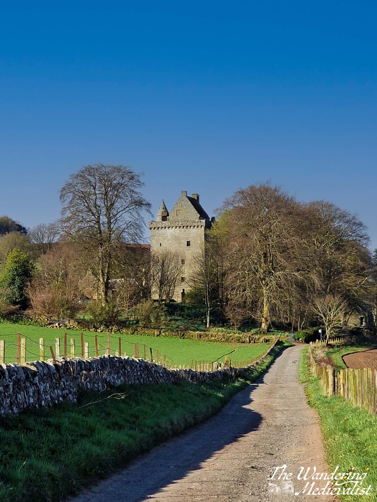 Scotstarvit Tower sits about half a mile off the road linking Craigrothie to Cupar. You cannot drive to it, but instead can find easy parking at the nearby National Trust property, the Hill of Tarvit mansion house. Parking is £3, and from the parking lot, I walked back towards the main road along a lovely tree tunnel.
