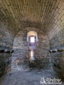 I was delighted to find, as I approached, that the front door to the tower was open, and the interior was quiet but light and well-maintained. I climbed to the staircase, which comes to an end in the little funnel-shaped room on top of tower. Perhaps understandably, the public is not currently able to wander the rooftop. It is also likely that there were outbuildings at some point, and there is evidence of an extension at ground level.