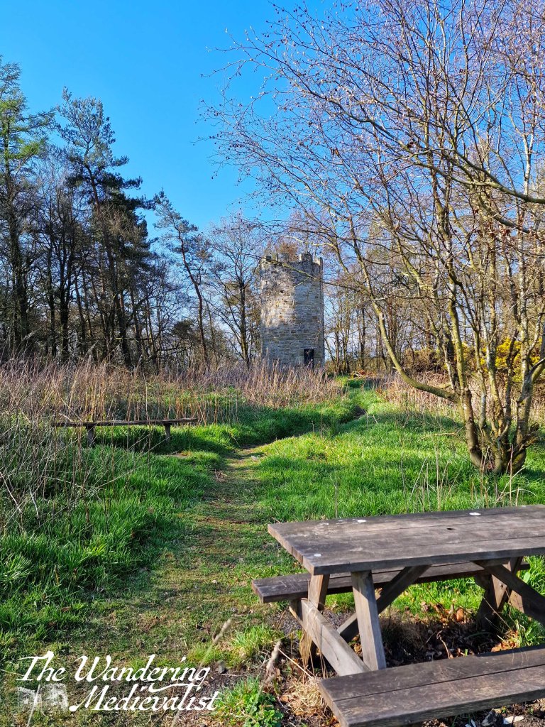 Once I had my fill of the tower, I made my way back towards the car, but I found myself distracted by another path off to the right, running along the edge of the golf course. It seemed to lead in the Craigrothie direction, and I decided I needed a few more steps so made my way through a gate and towards a nearby hill. There is a lovely old iron gate leading to a smaller path that eventually climbs up to an impressive doocot, designed to look like a medieval tower. A picnic table and slightly deteriorated wooden bench are situated perfectly to allow one to enjoy the view back towards the Hill of Tarvit mansion house. While the extra short walk is by no means required as part of the visit to the tower, it was definitely worth the effort.