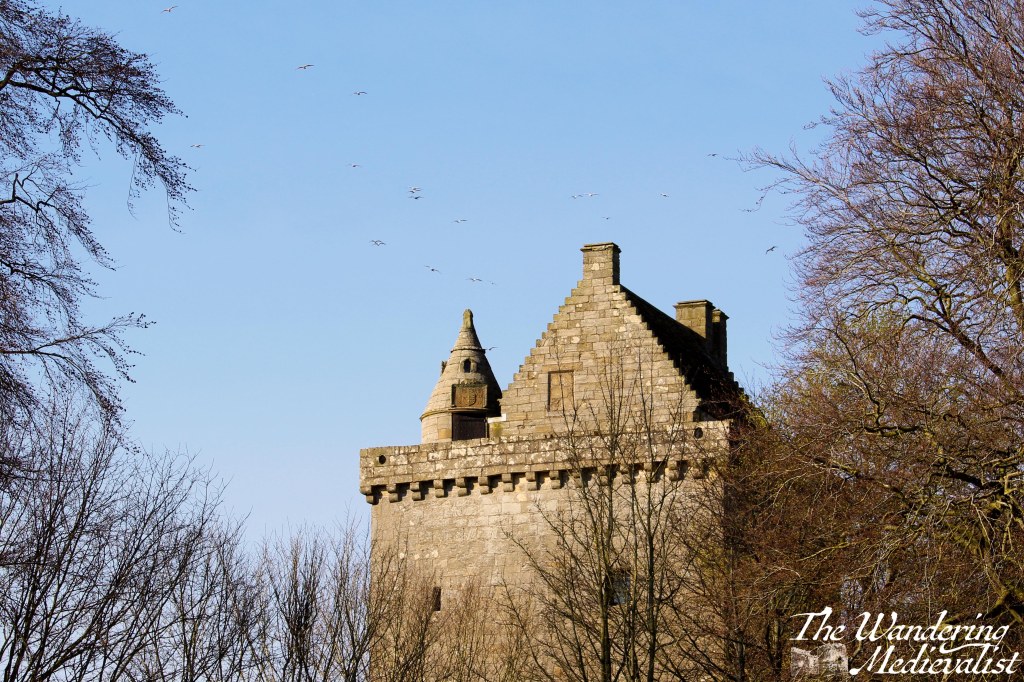 Yesterday was a positively gorgeous sunny day – in the morning anyway – and so I got myself going early to finally explore this tower, which we drove by on our daily commute for years. I had been led to believe that you could not go inside, but was excited to discover that fact had changed. Scotstarvit Tower was likely built in the late 1480s or 90s, by the Inglis family, and was renovated in the early 17th century to the form seen today. A true tower, it has one large room on each floor, connected by a spiral staircase, though there are small ‘closet’-type rooms built into the wall in places.