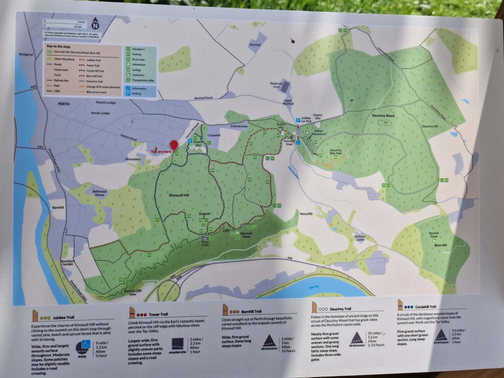 Like many locations in Scotland, Kinnoull Hill has a series of well-kept and relatively easy to follow paths, criss-crossing the ancient volcano.