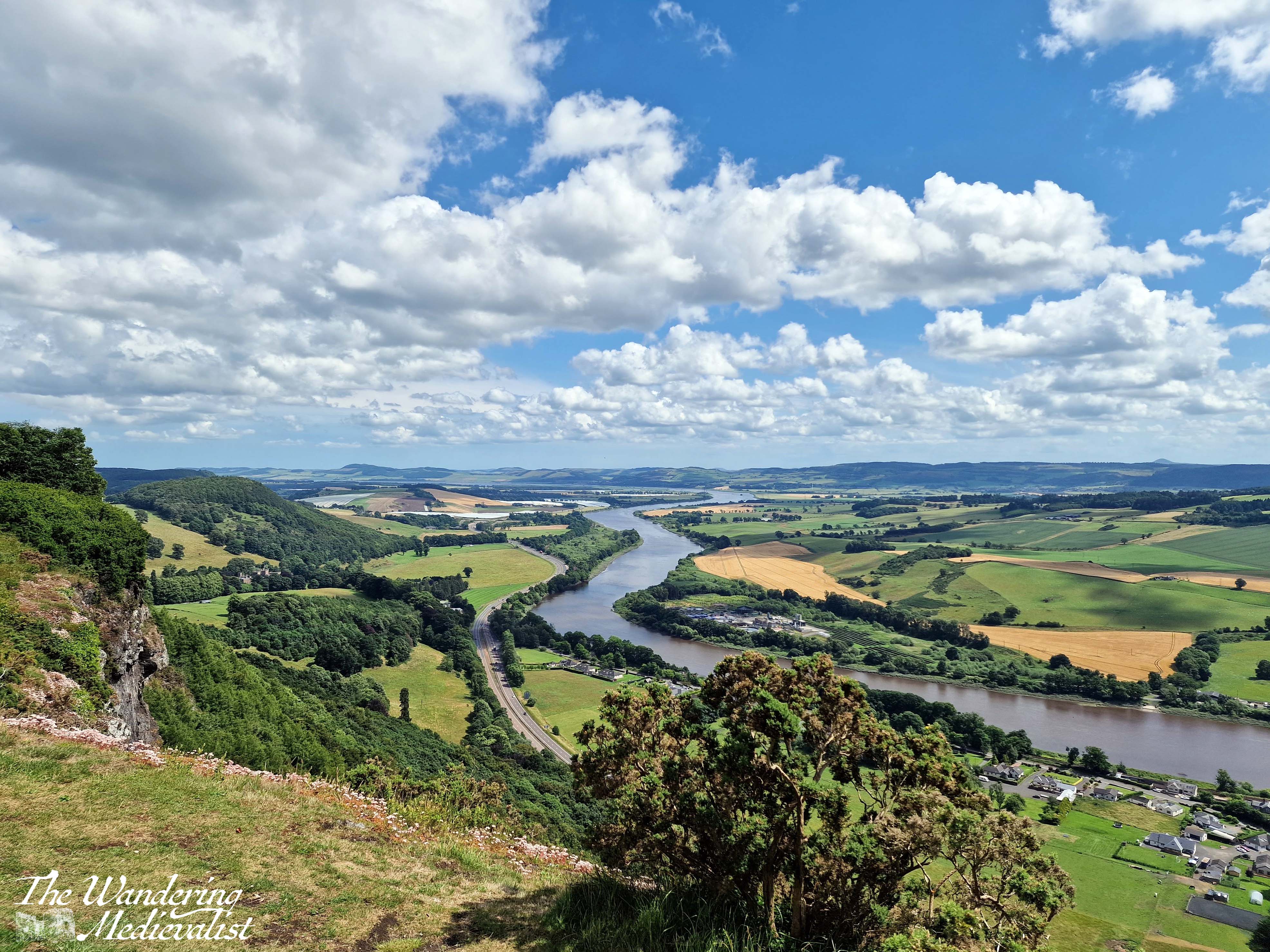 The view from the ‘Stone Table’ is absolutely fantastic, and boasts one of the most needless warning signs I’ve ever seen about the cliffs. You can see 180 degrees from impressive cliffs and the edge of Perth on the right to the hills of Fife and a hint of the tower to the far left.