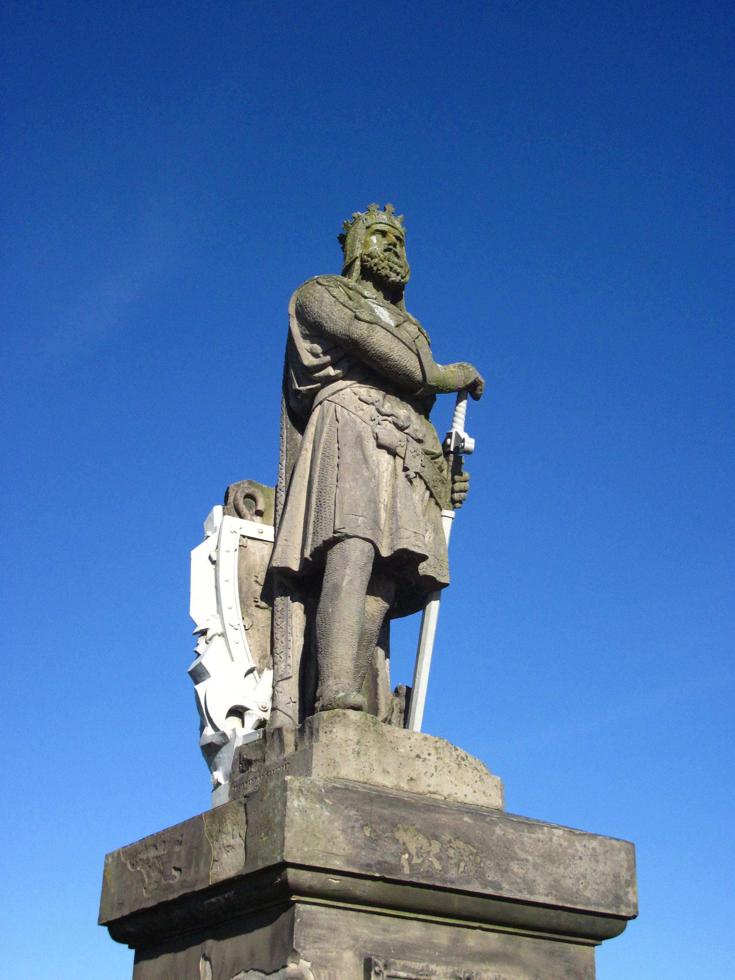 From the bus or train station in Stirling, one is met with an up-hill climb through the historic and picturesque town. Many old Scottish towns have the odd juxtaposition of beautiful old stone houses, contrasting with much newer housing and shops that always stand out. And then, before the castle, one is met by who else but Scotland’s national hero, King Robert I the Bruce (r. 1306 – 1329).