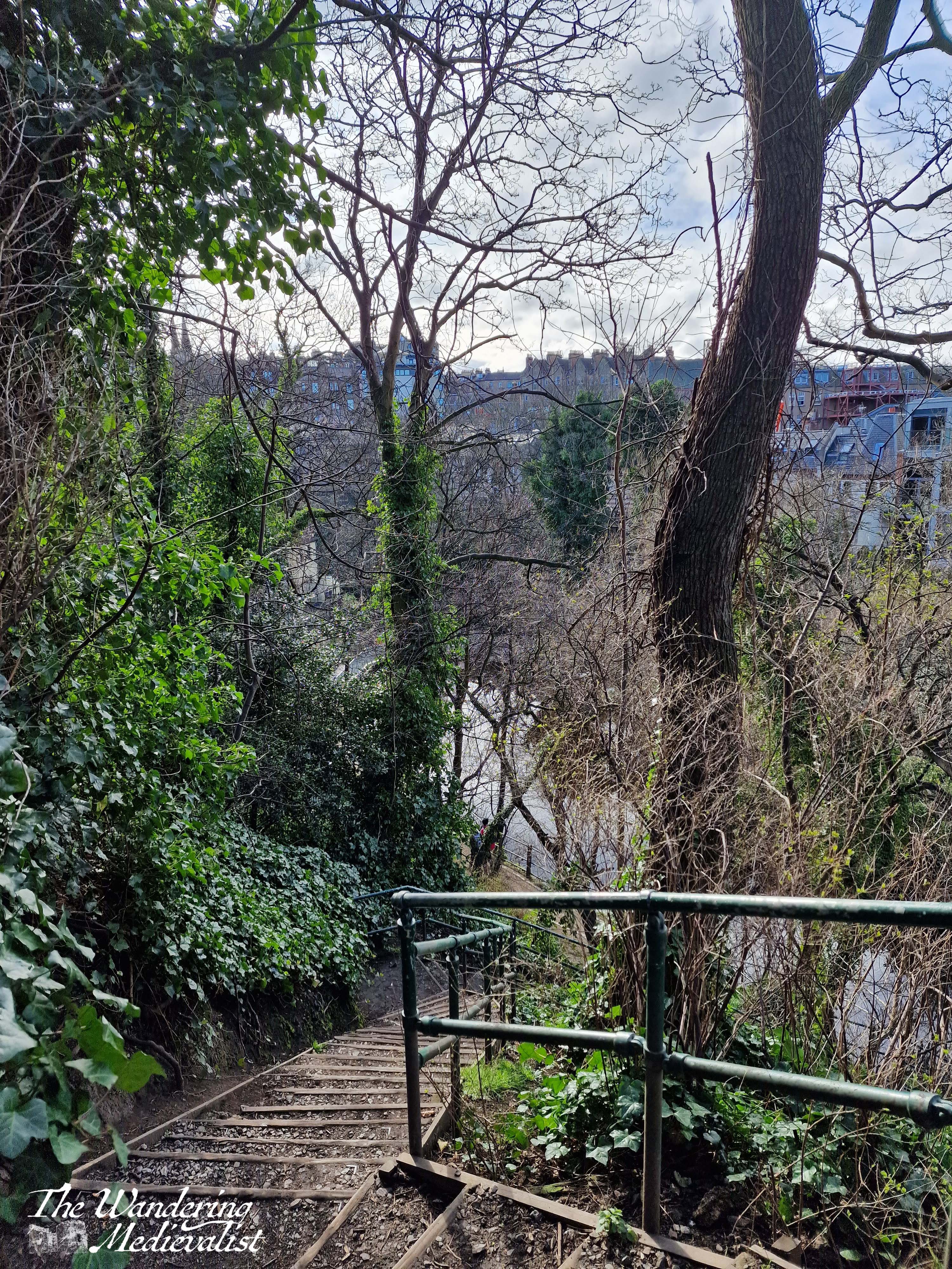 Like the village, the path did not disappoint, showing me a side of Edinburgh I had never seen – the backs of stately houses, steep lawns, and of course the river itself.