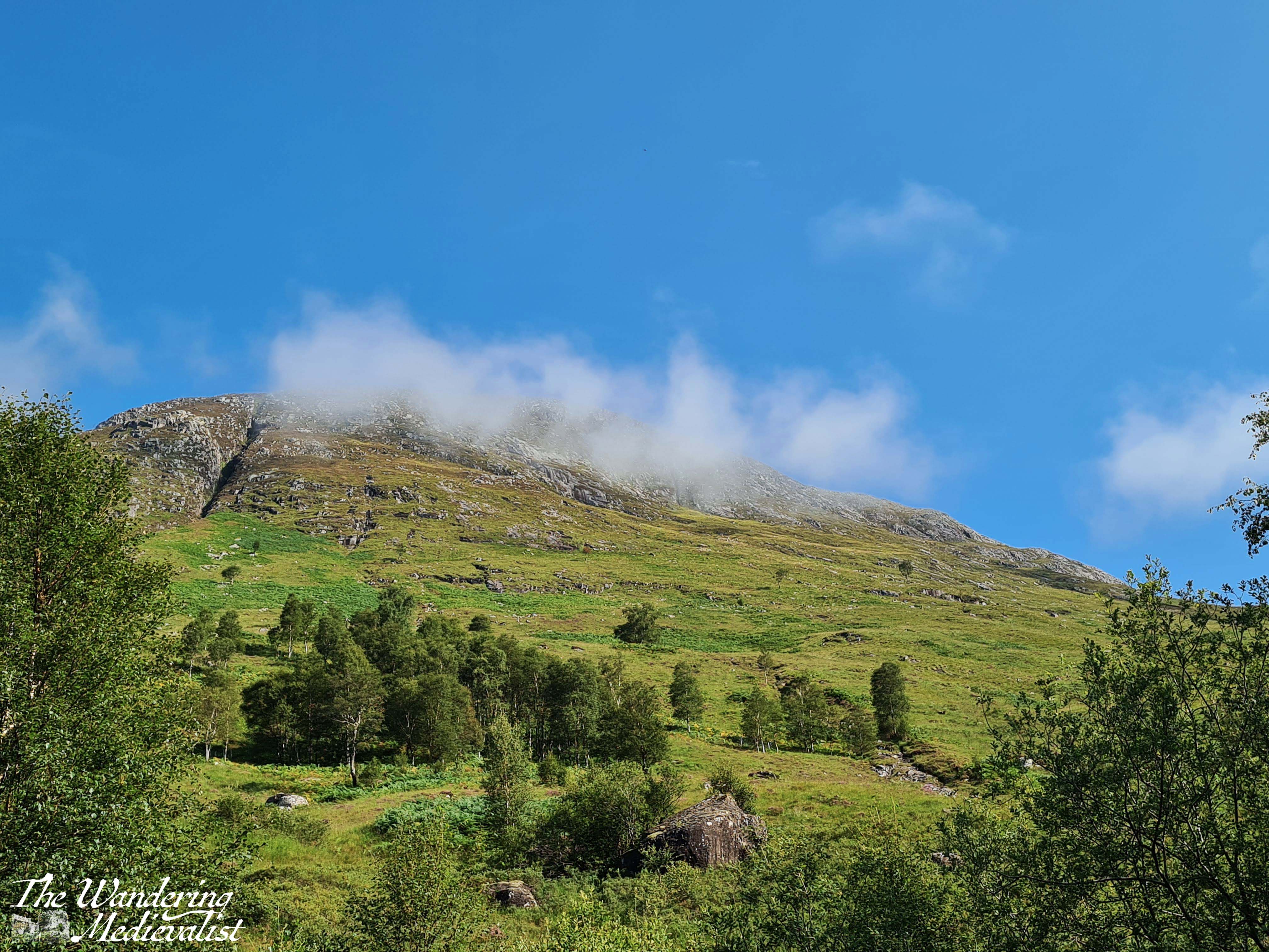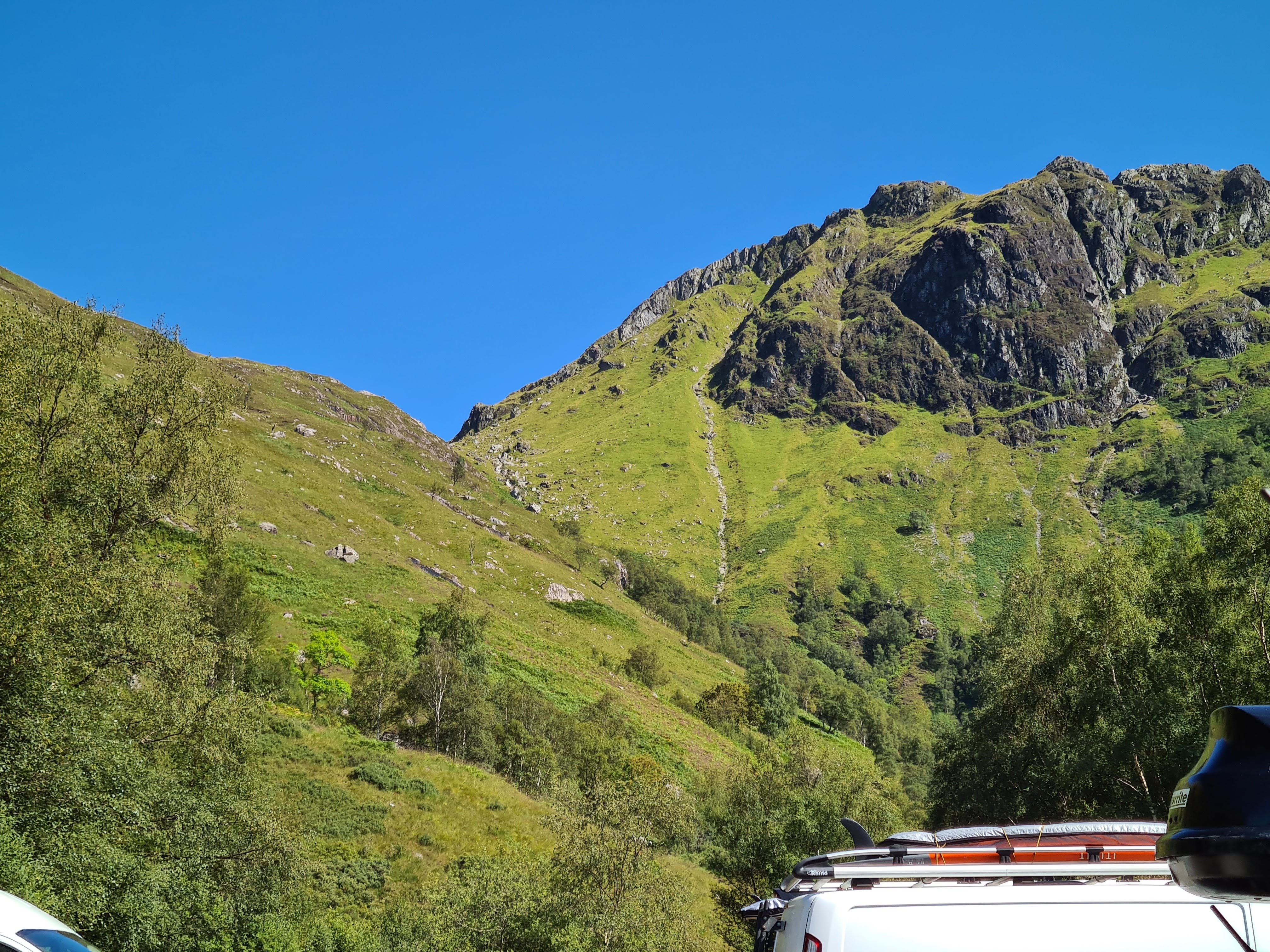 But I get ahead of myself. Our first challenge, as is often the case in more obscure walks, was to find the car park mentioned in the book. Starting in Fort William, one follows the signs for Glen Nevis and indeed for Ben Nevis itself, as the drive takes you past the most common starting point for hikers attempting the highest peak in the UK. Glen Nevis itself is stunning, and it is almost impossible not to stop a few times along the way.