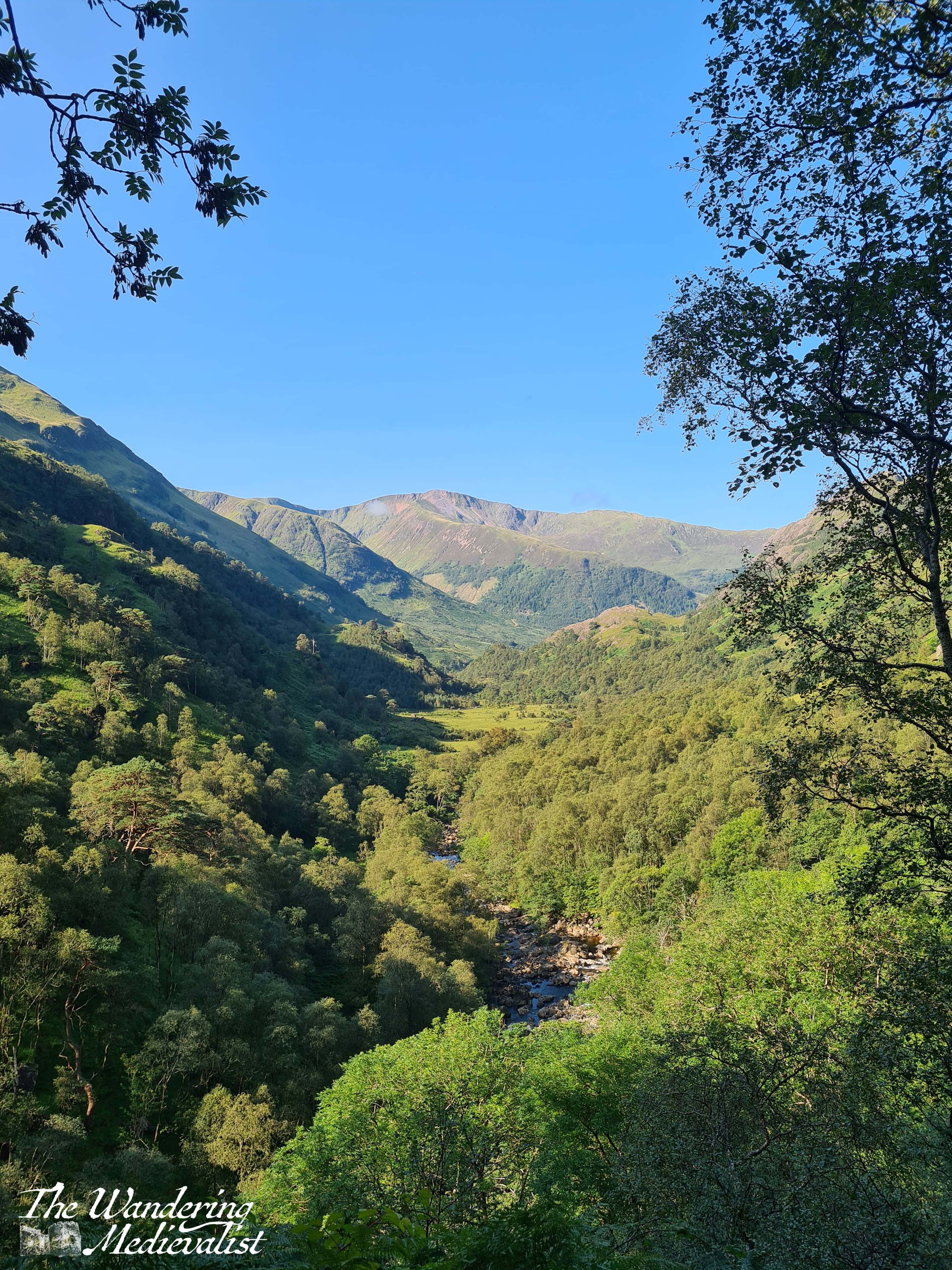 By the time we returned to the car I was very ready to take off my sturdy hiking boots and find some looser shoes to don for the drive back down the glen. I recall sitting in the car for a few moments just enjoying the car park view before finally heading back into town.
