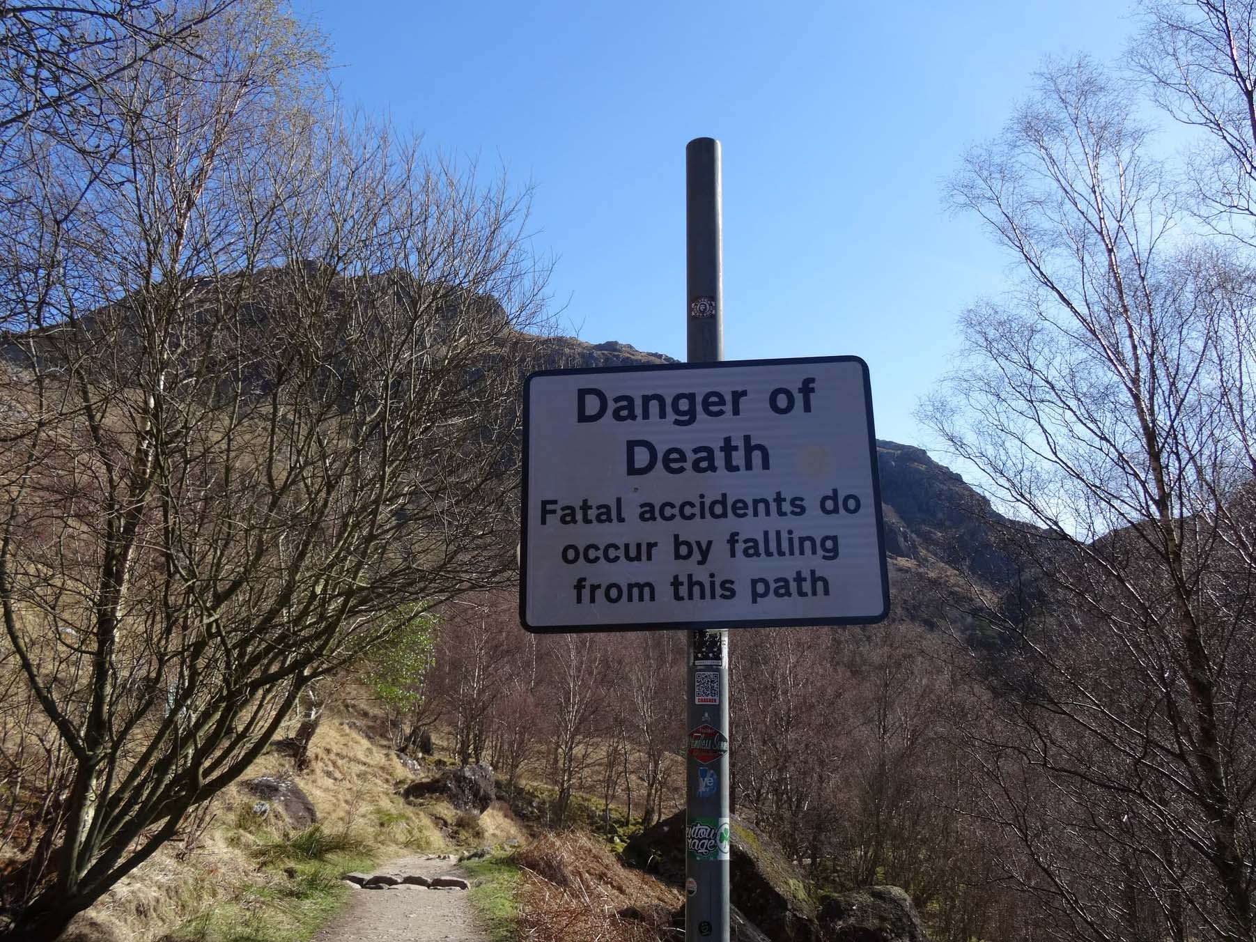 There are lovely views even from the car park, and I could not resist snapping a pic of the warning sign to send to the family – once we had returned safely of course.