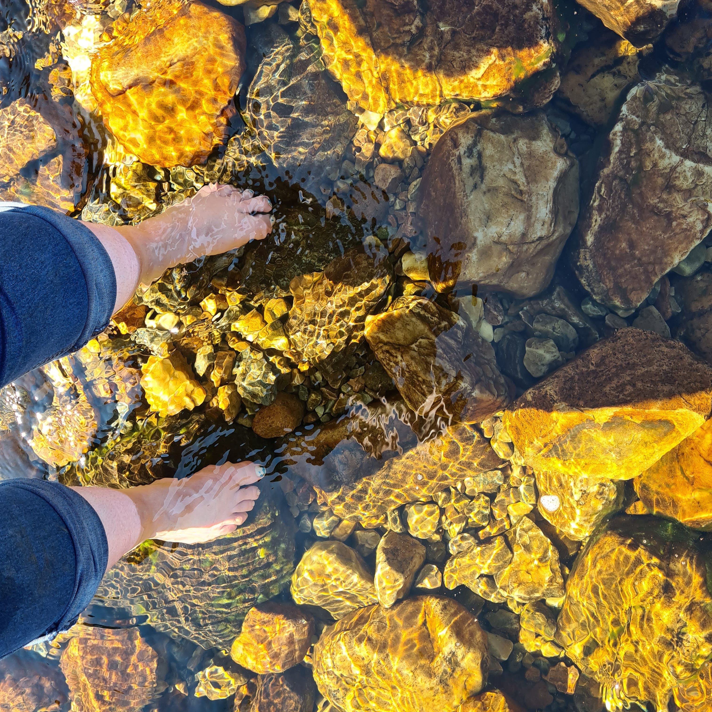 Dad and I tried to continue walking along the valley but found the path to essentially disappear into bog, so we headed back towards the wire bridge, looking for a place to cross. In the end, tired feet won out and I stripped off my boots to plunge into the icy water. It felt amazing and almost immediately numbed my toes to the rocks as I managed to just get across without falling. As we waited for our feet to dry, we sat on the riverbank and enjoyed the stunning view back towards the gorge.