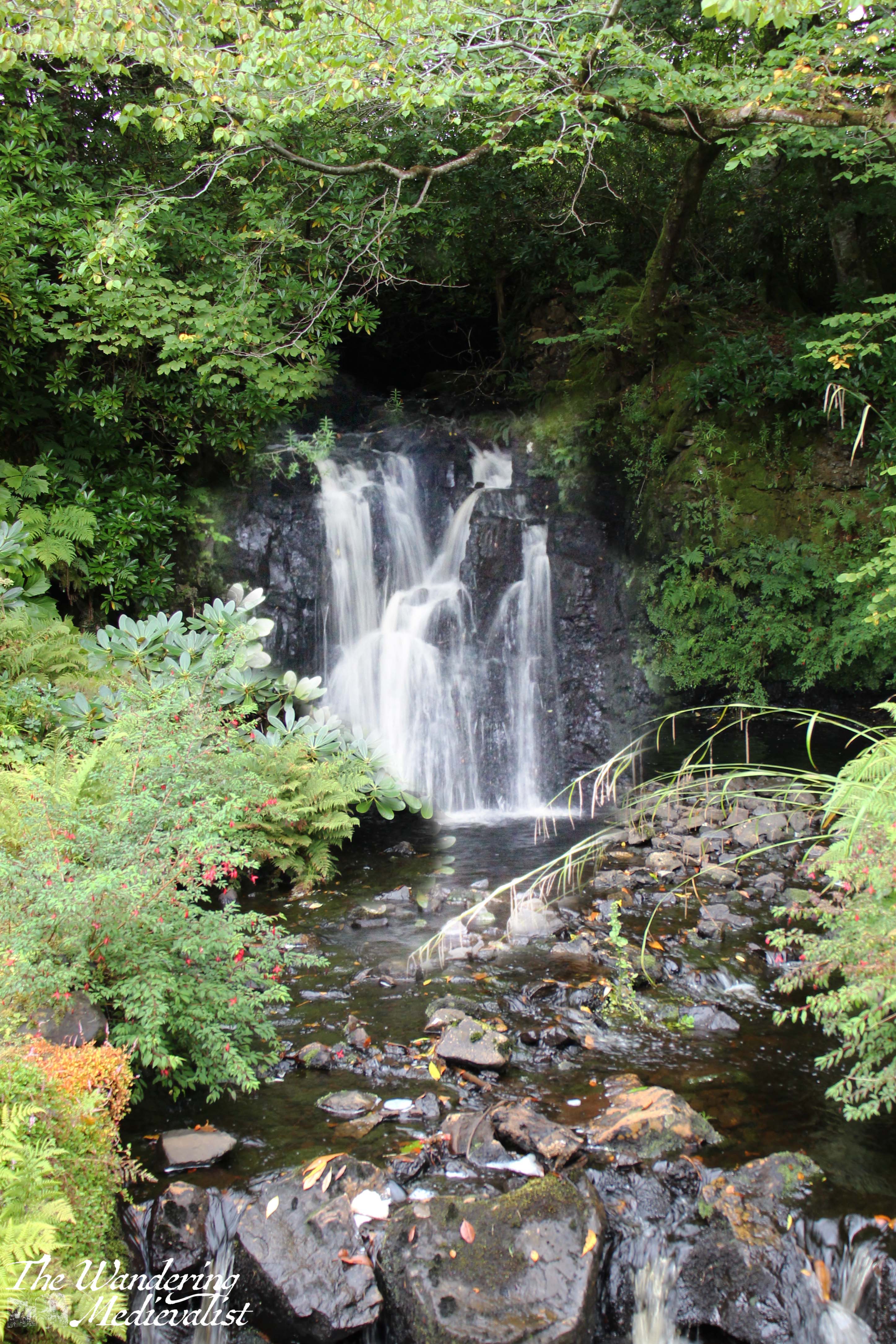 I do not mean to say that the castle is not incredibly impressive – by all means, the sight of it towering over the bay, commanding views and a romantic atmosphere even in the rain, demonstrates the significance of the location and why there was a fortress here for hundreds of years. The castle is the seat of the MacLeod of MacLeod, chief of the Clan MacLeod, and it is surrounded by a beautiful garden with water features, a walled formal garden, and more natural forest spaces. On the day we visited, the gardens were more our style and were the focus of our time. Even in the rain and after the height of the summer blooms, it was very easy to see how stunning the place would be on a sunny day in the right season. One amusing story here is that I had declined to bring my tripod with me due to the poor weather, but as I was resting my camera on a railing to keep it steady, a kind German man offered me use of his so that I could properly capture the waterfall. I think I did ok with out it, though!