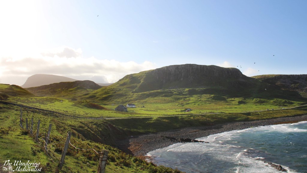 First stop was Duntulm, less than ten minutes north of where we stayed – it is an almost entirely ruined castle on a promontory with gorgeous views back over the hills and coastline.