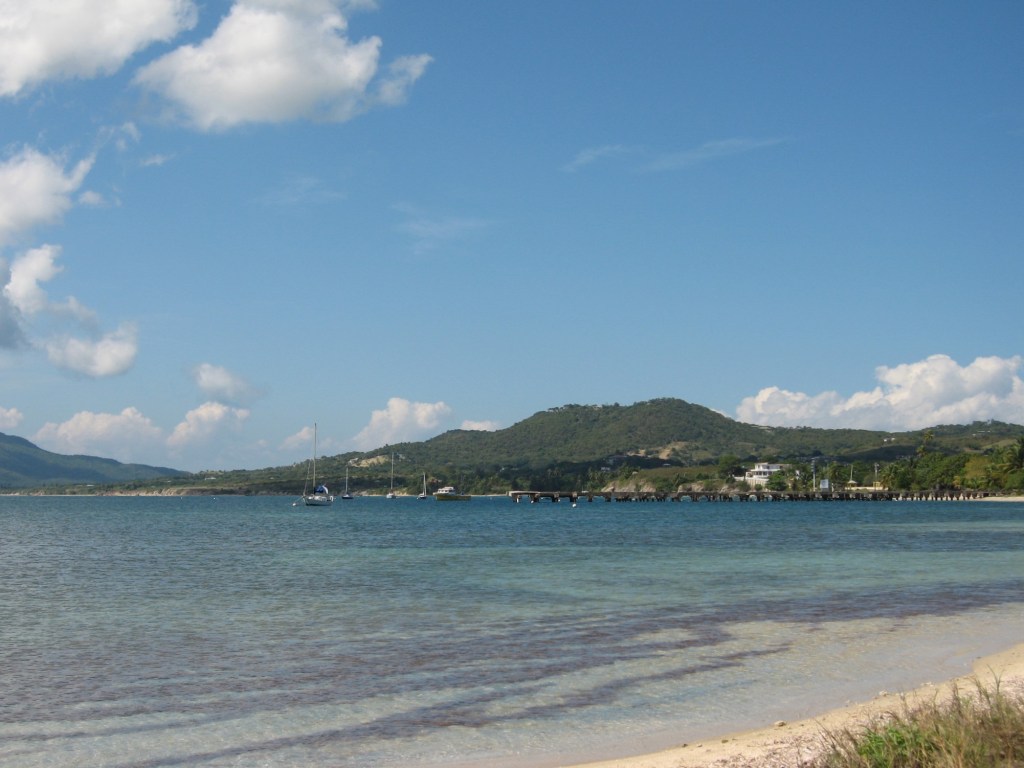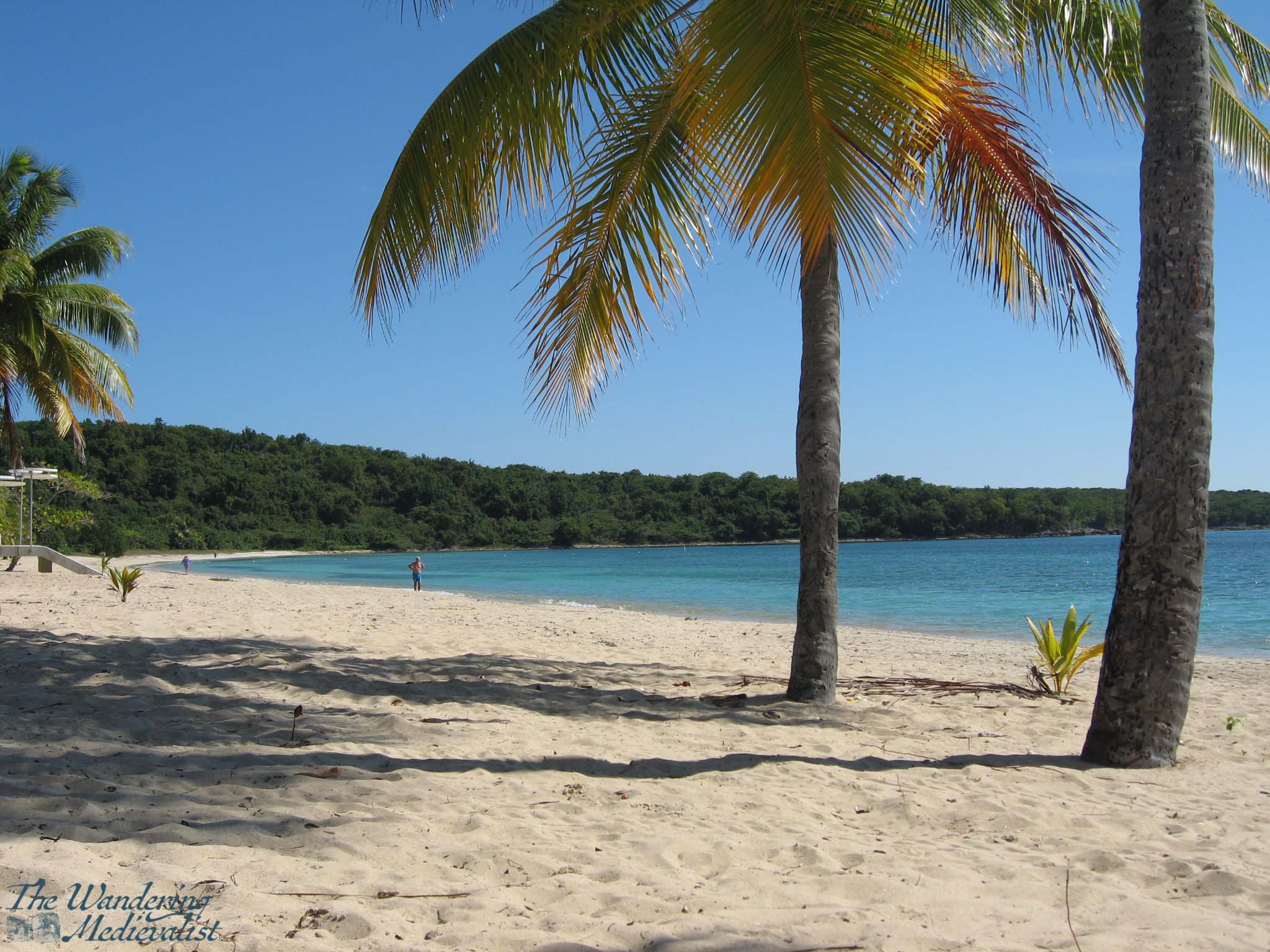Sun Bay is, as it sounds, a beautiful crescent-shaped beach facing south, with plenty of gorgeous sand and lined with palms and sea grapes. The palms often take a beating during hurricanes and you can never be sure how many will be there. The beach is deep enough that you can usually find a place in the shade or in the sun, and all within a few steps of the usually clear water. There used to be a swimming area marked out, with a line of buoys stretching along the length of the beach that made it very easy to swim along and stay in deep water; this also protects swimmers from boats of course. Behind the beach is a relatively well-kept road that allows you to drive the length of the shore and back to find the perfect spot for you, or continue on to Media Luna, the next beach along that was well-known for having good surf.