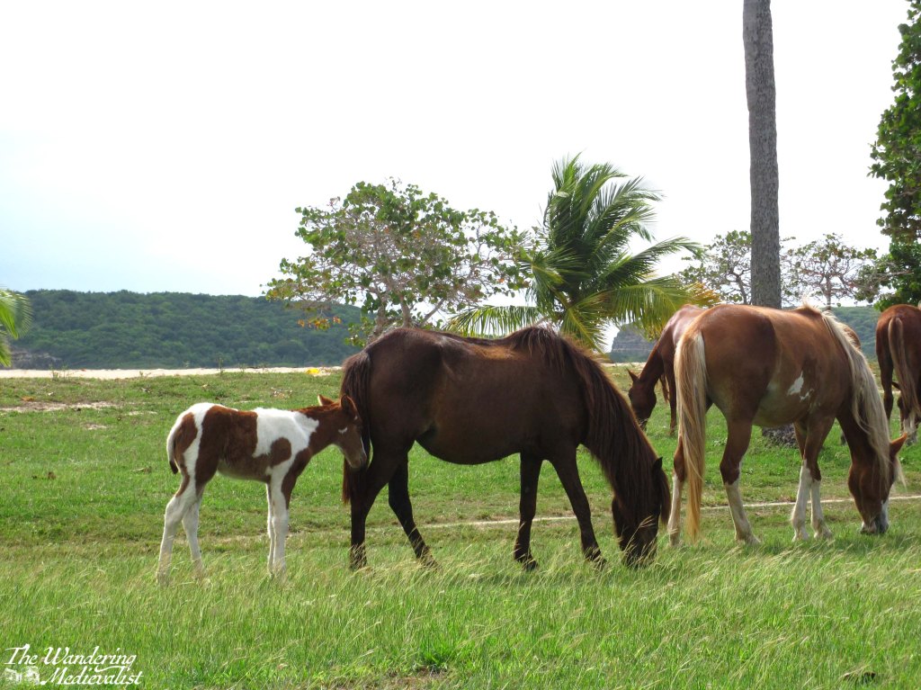 While Sun Bay is a great place for swimming it is not necessarily for snorkelling; there used to be a spot to the far left that you could swim out to, but it was not as well-developed as most of the beaches on the former Navy Base. Also, it was quite a decent swim just to get there and the waves were often strong enough to make any real enjoyment of the fish quite difficult. Even in swimming closer to the beach, though, I have seen a variety of creatures over the years including turtles, an enormous ray, barracuda, and of course plenty of fish. Out of the water, one can often spy groups of wild horses that roam the island, but seem often to congregate near the beach.