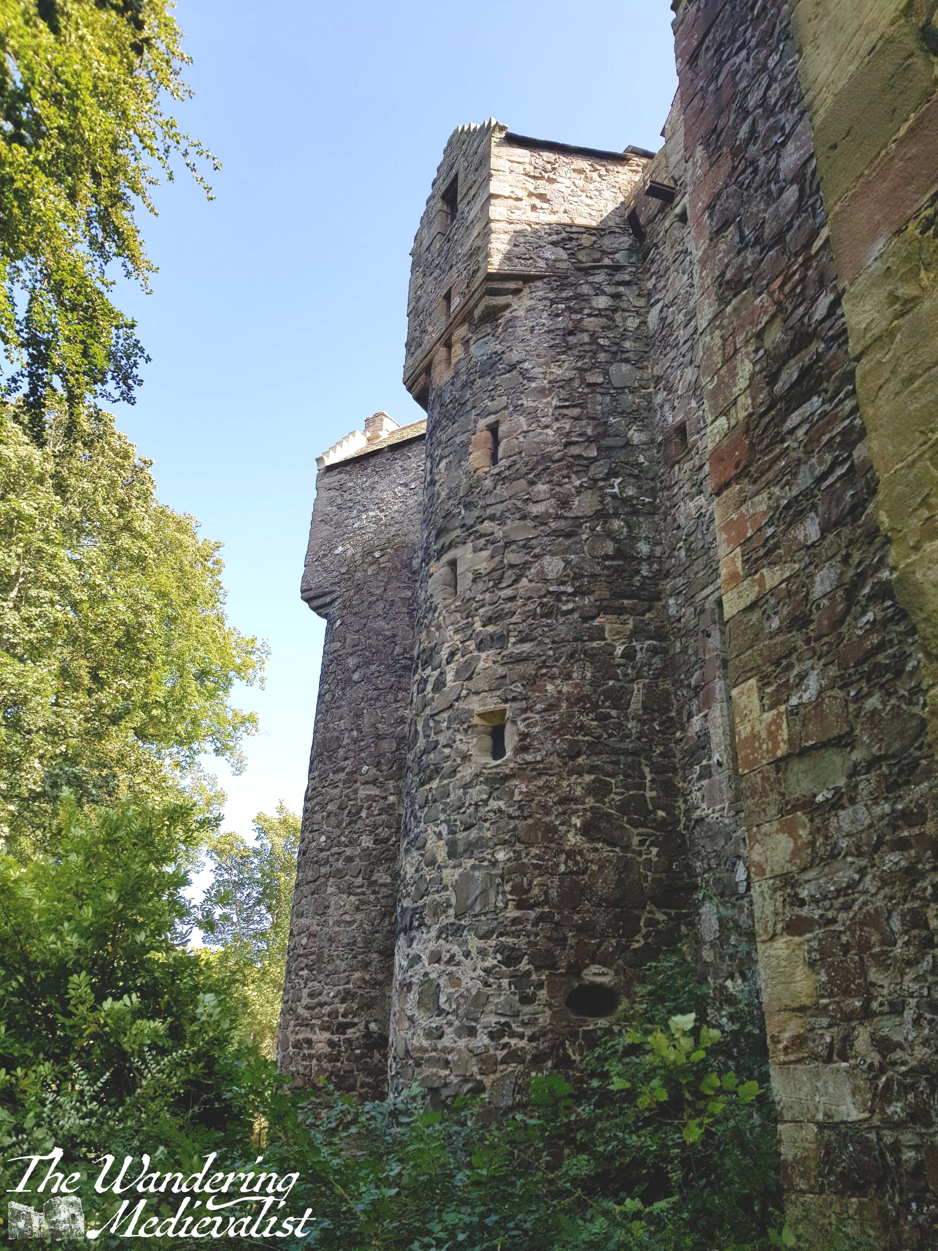 Our excursion to Elcho Castle was part of a late summer weekend during which we met a friend – and fellow medievalist – in Perth for lunch and decided to explore this heretofore unknown castle. I had identified it on one of my many castle maps of Scotland, and the Historic Scotland website confirmed it to be a well-preserved example of a late medieval Scottish tower-house. I note that as of writing, the castle is one of the many currently closed while masonry inspections are undertaken.