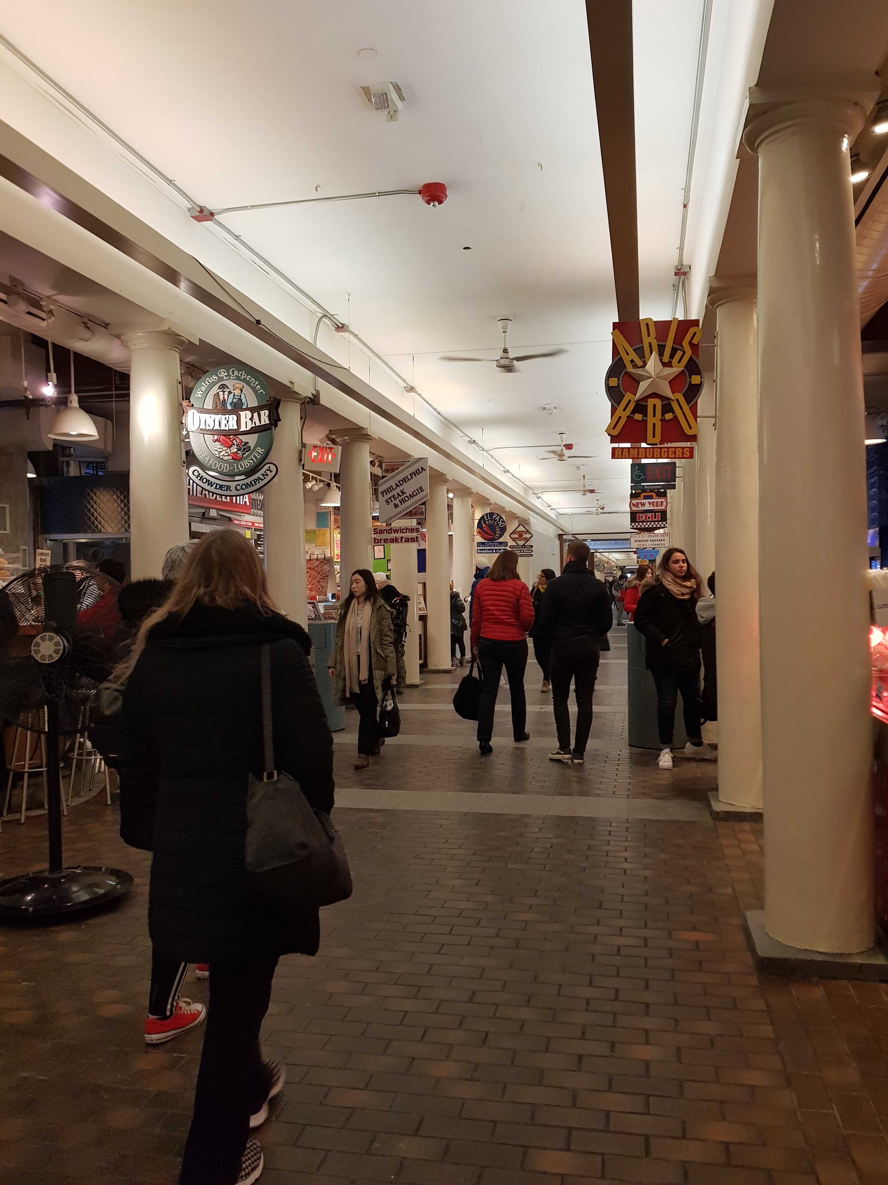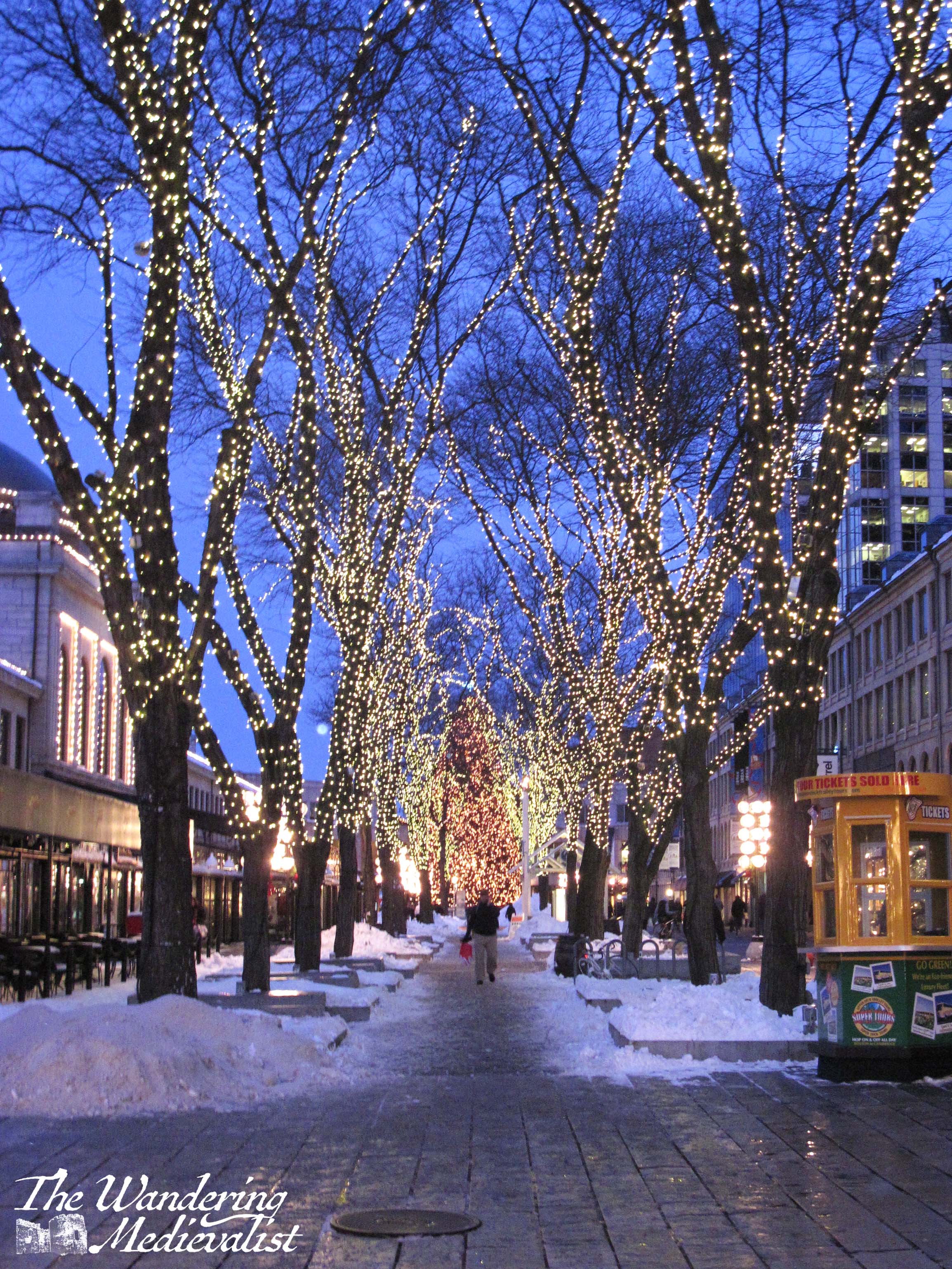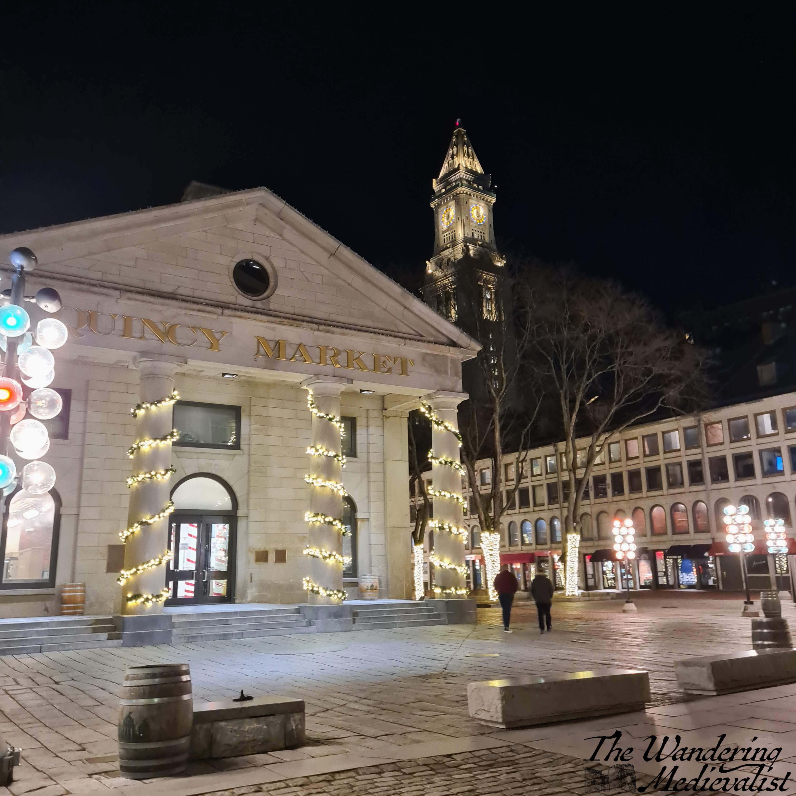 I love Quincy Market at Christmas in particular, when everything is done up with lights and pine garlands or wreaths.