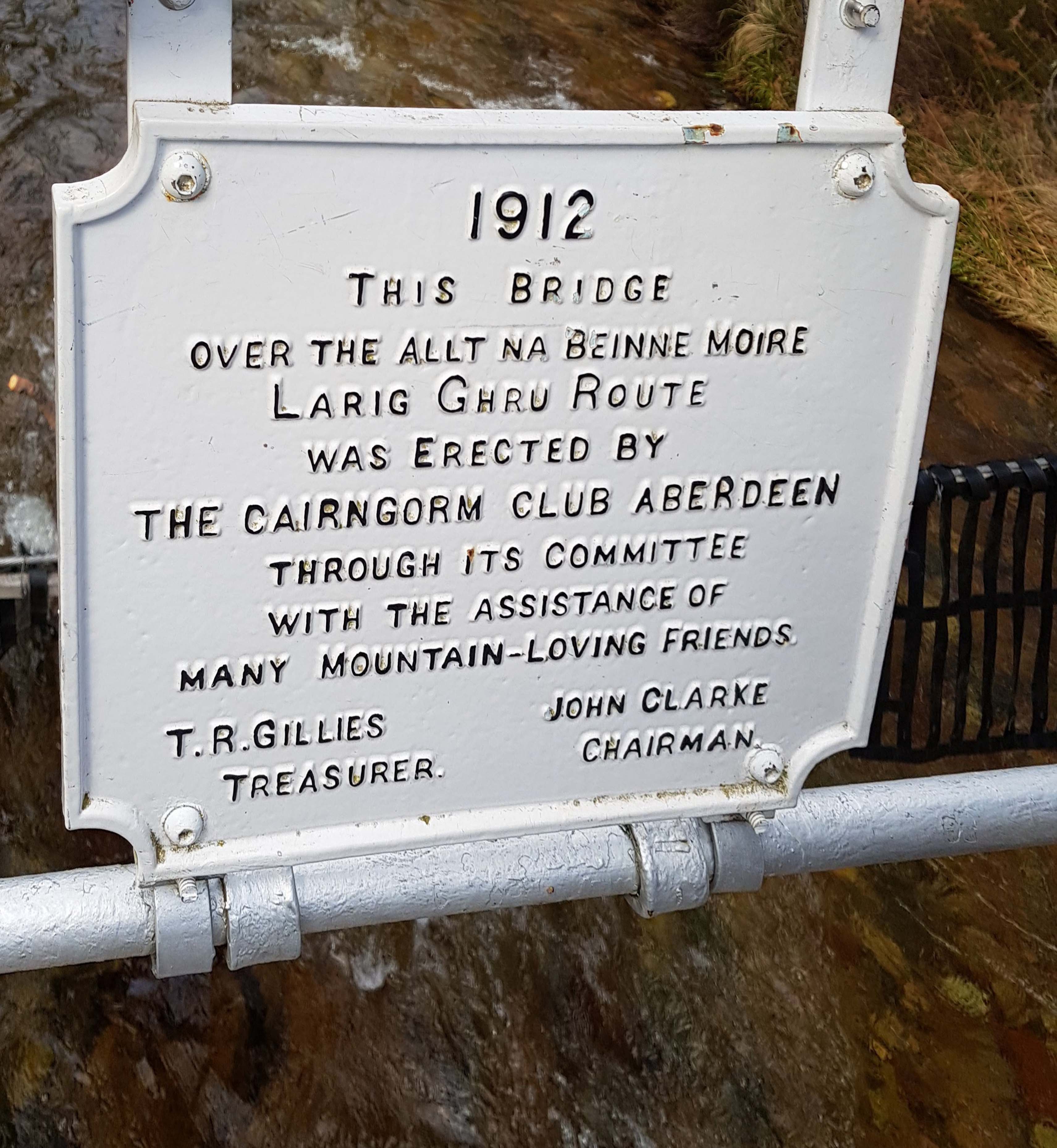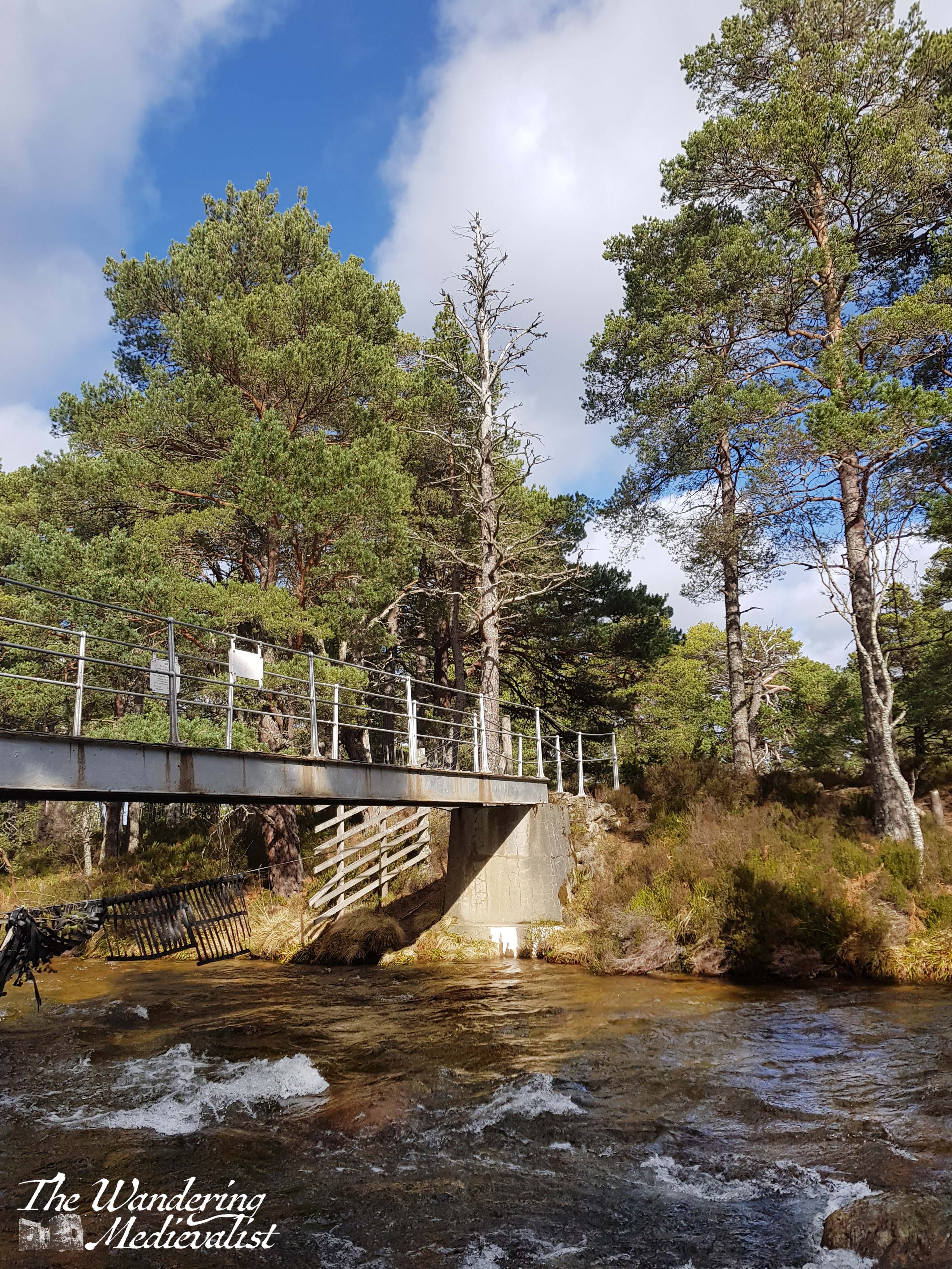 Our goal and our lunch spot for the day was the iron footbridge which spans the river and was constructed by the Cairngorm Club in 1912. It boasts several sturdy plaques memorialising the building of the bridge, and a good viewpoint to look up or down the river. It was the perfect stop to fuel up and take a few selfies to prove we had managed a hike that day.