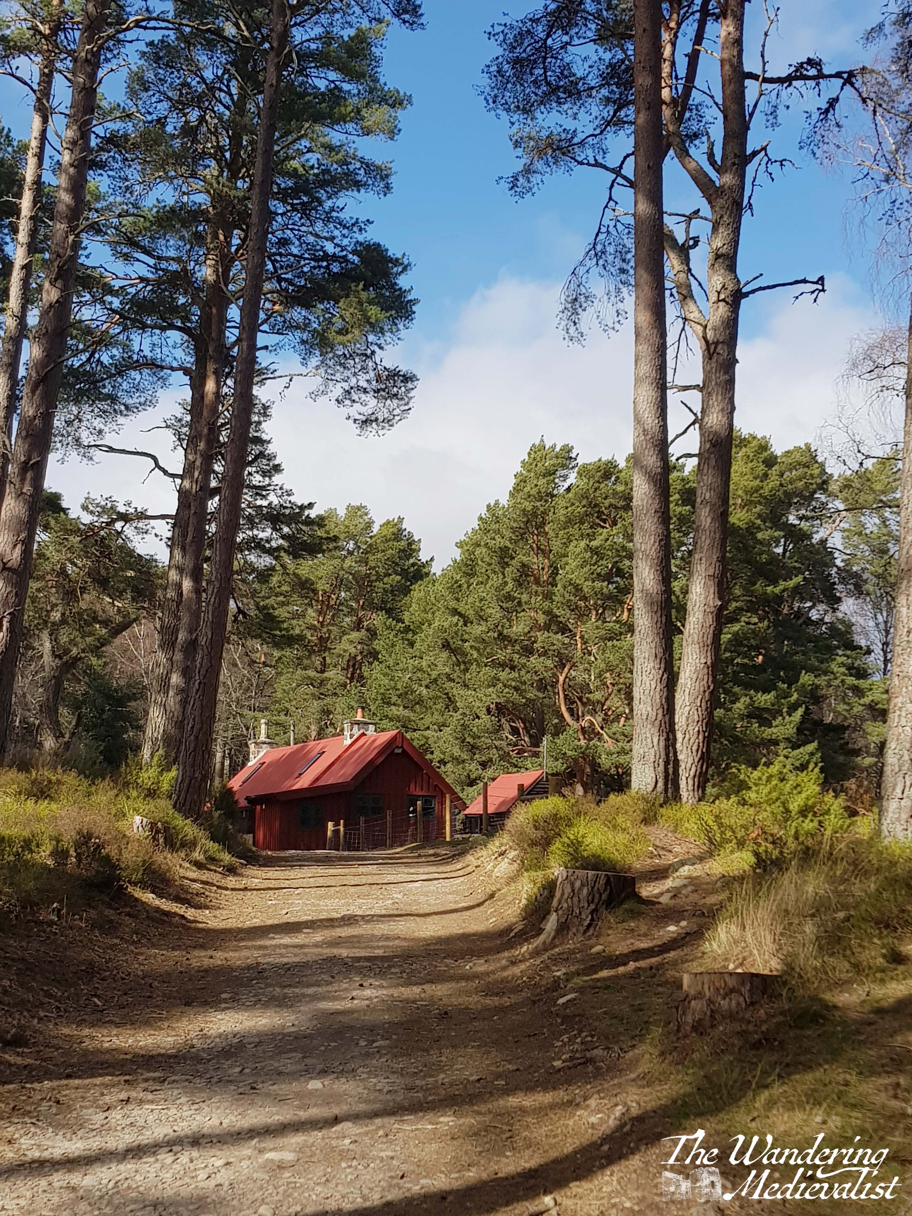 The paths in this area are very well-marked, and we started off along an access road, skirting the edge of the loch. At first, the route was surrounded by beautiful tall pines that allowed tempting glimpses of the water, as well as this stunning Bob Ross-style view of a small forest cottage.
