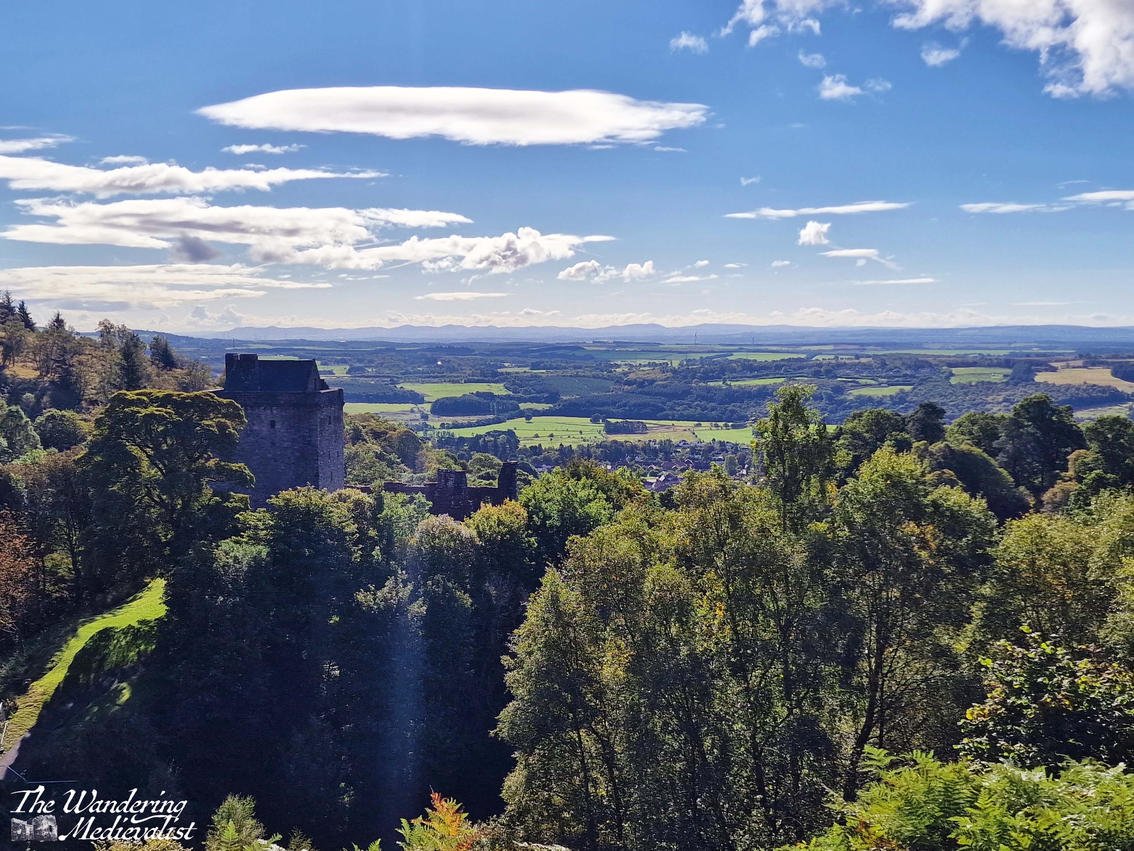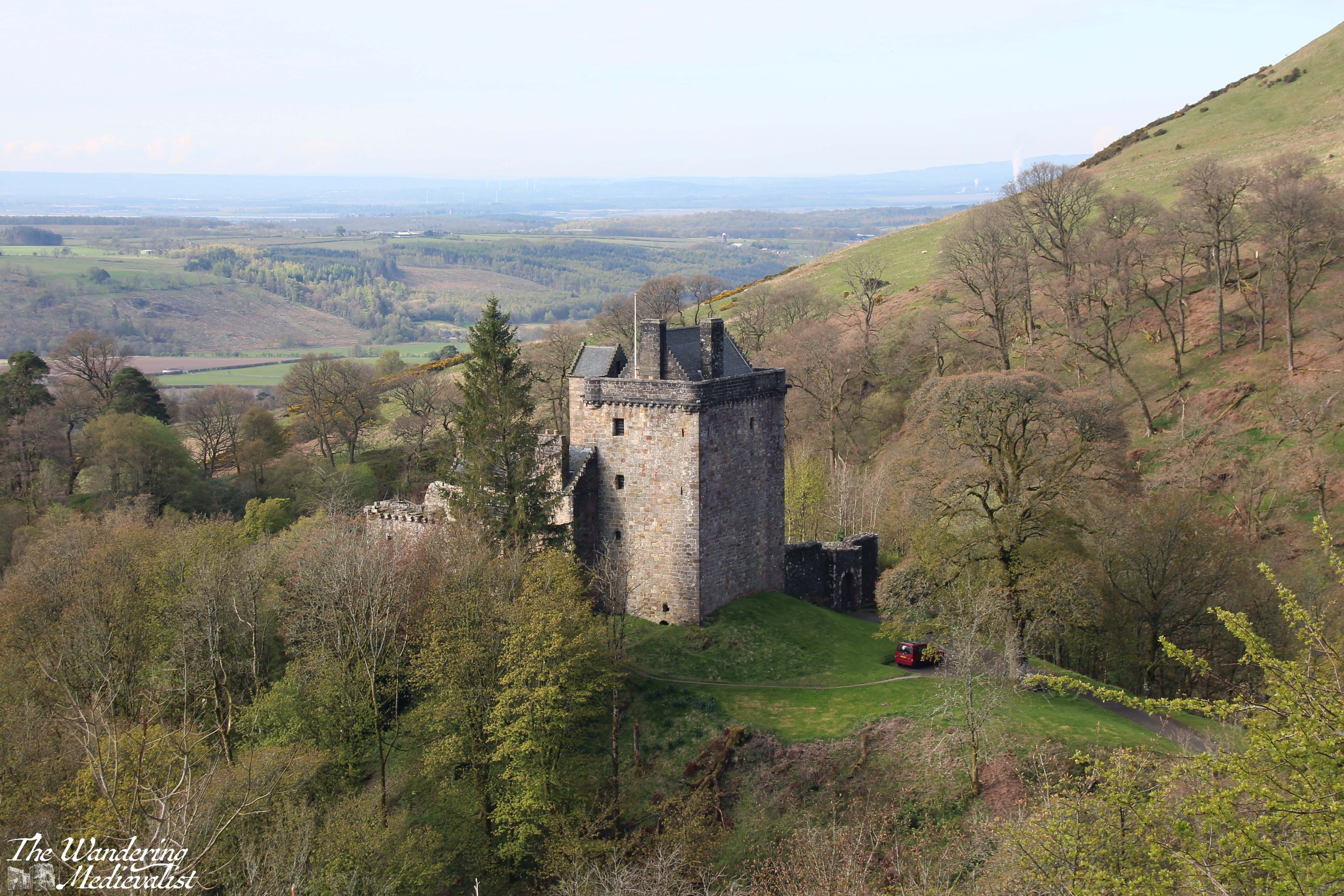 Castle Campbell, or Castle Gloom as it was known at its inception, dates from the early 1400s, though the benefits of its strategic location suggest it may have been fortified well before that time. One needs only observe the steep hills and deep ravines on either side – in one runs the Burn of Sorrow, the other the Burn of Care – to realise that it would not have been attacked without serious effort, and of course the views make it ideal for watching movements across the flat land below.