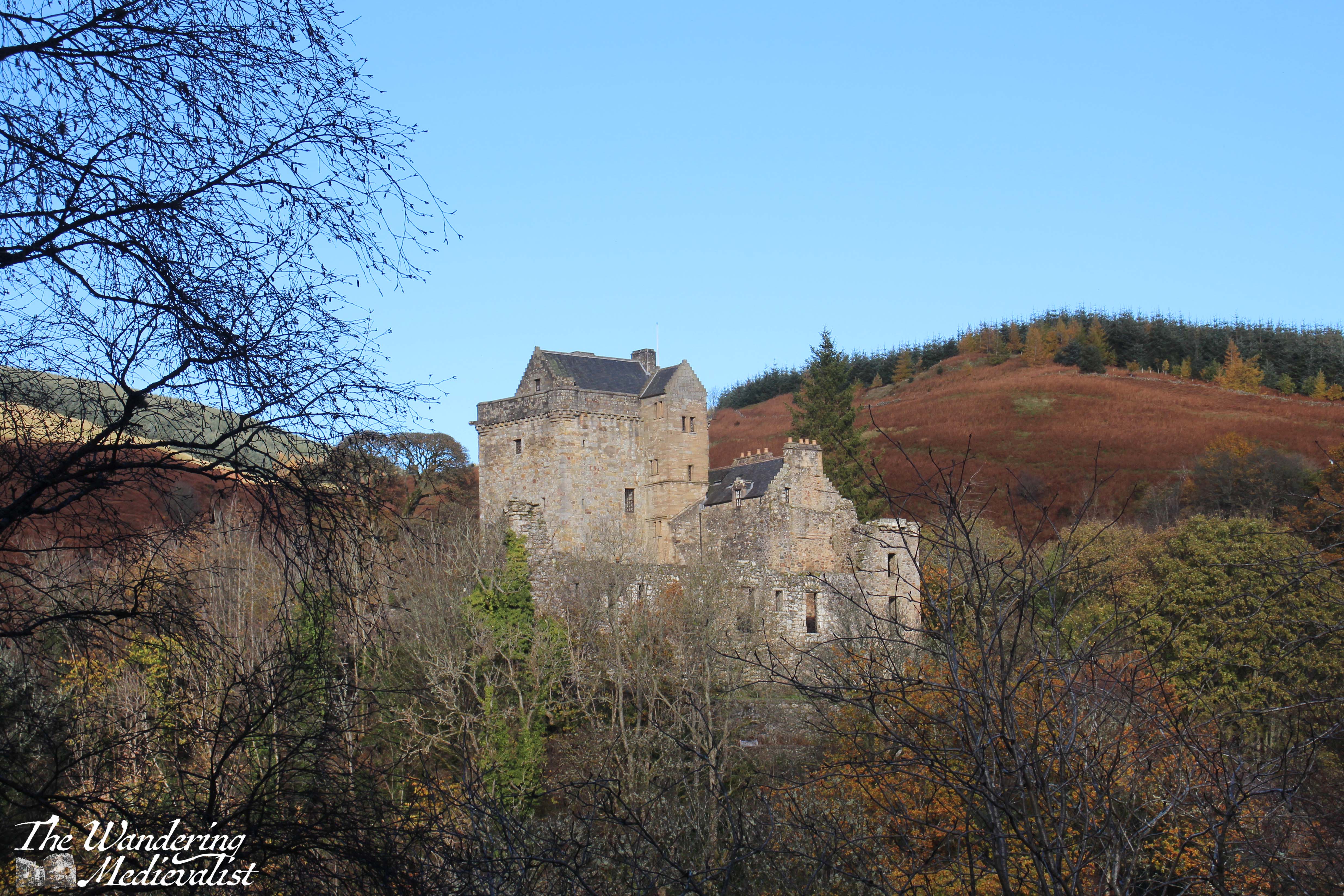 While Clackmannanshire (Britain’s smallest county) is very much not the Highlands, it offers a very small taste of what one will see further north: sheep, hillsides covered in grass and gorse and heather, steep-sided ravines through which rivers rush and create waterfalls and gorges. Even though I have visited several times, it is a castle and an area I can never get tired of seeing, whether it is to roam the halls or find adventure in the hills and trails behind it.