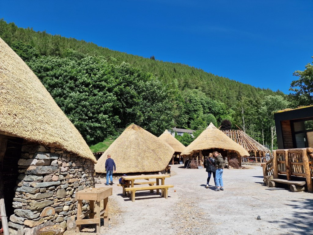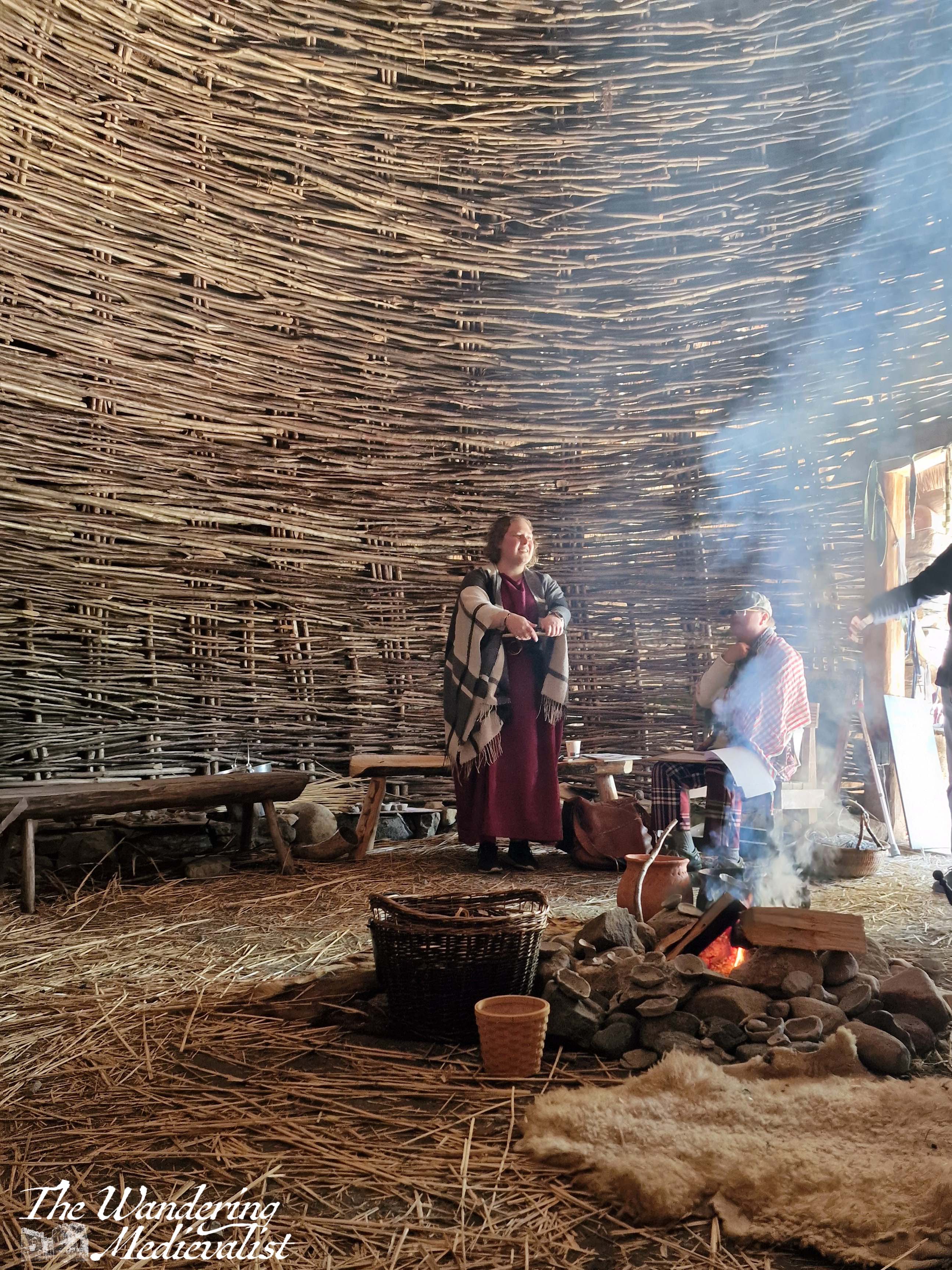 The final building was the round house, which consisted of dry stone walls, a thatched roof, and a tremendous upside-down basket that made up the domed interior walls and roof. Several staff told us how it was a massive effort from tens of people to cut the willow at the right time and weave the ‘basket’. As we sat listening to the staff talk about oral traditions, the wind was howling around the building but it stayed warm and draft-less, making one appreciate how it would have been possible to survive on the banks of this loch even in the winter.