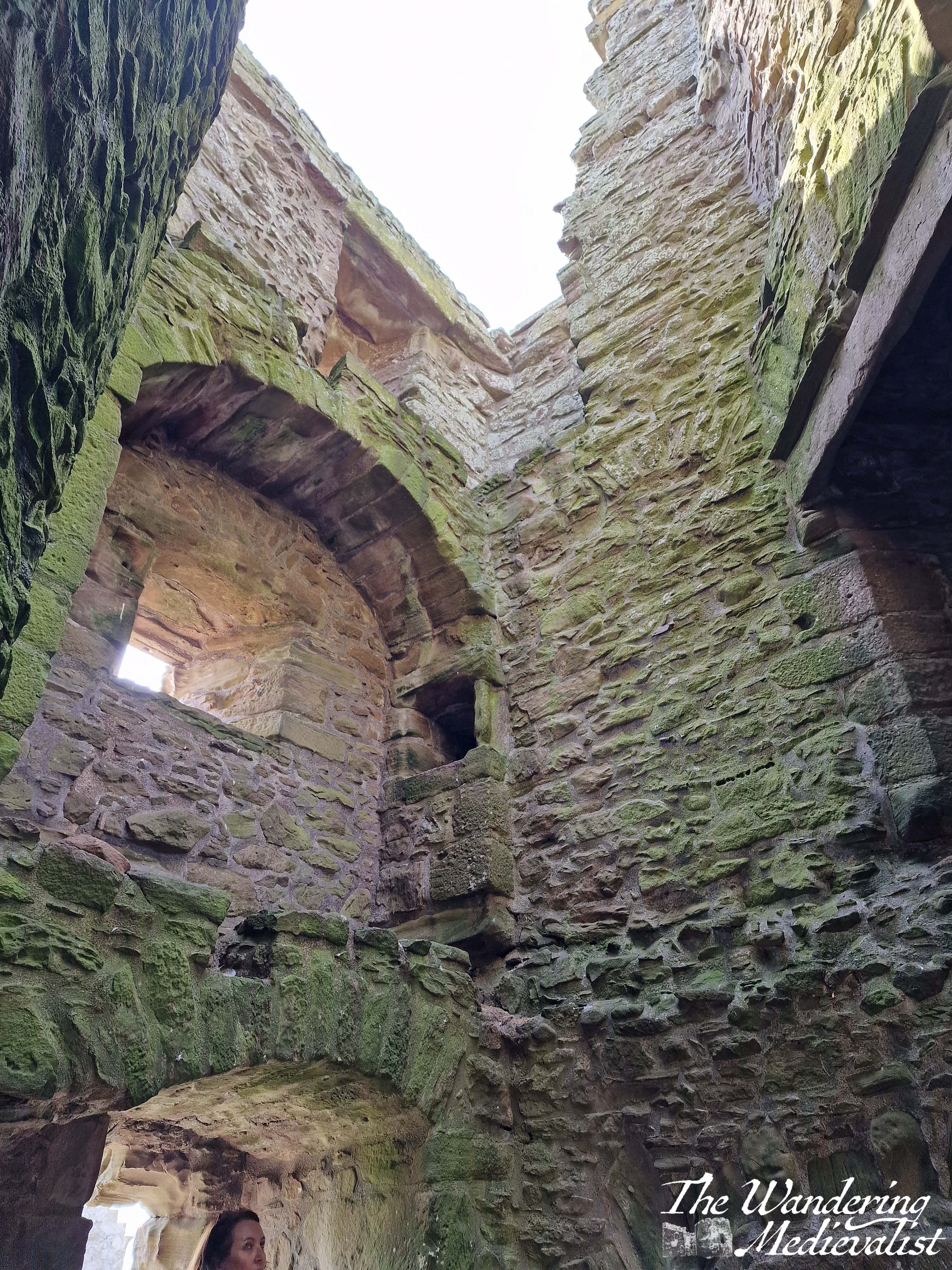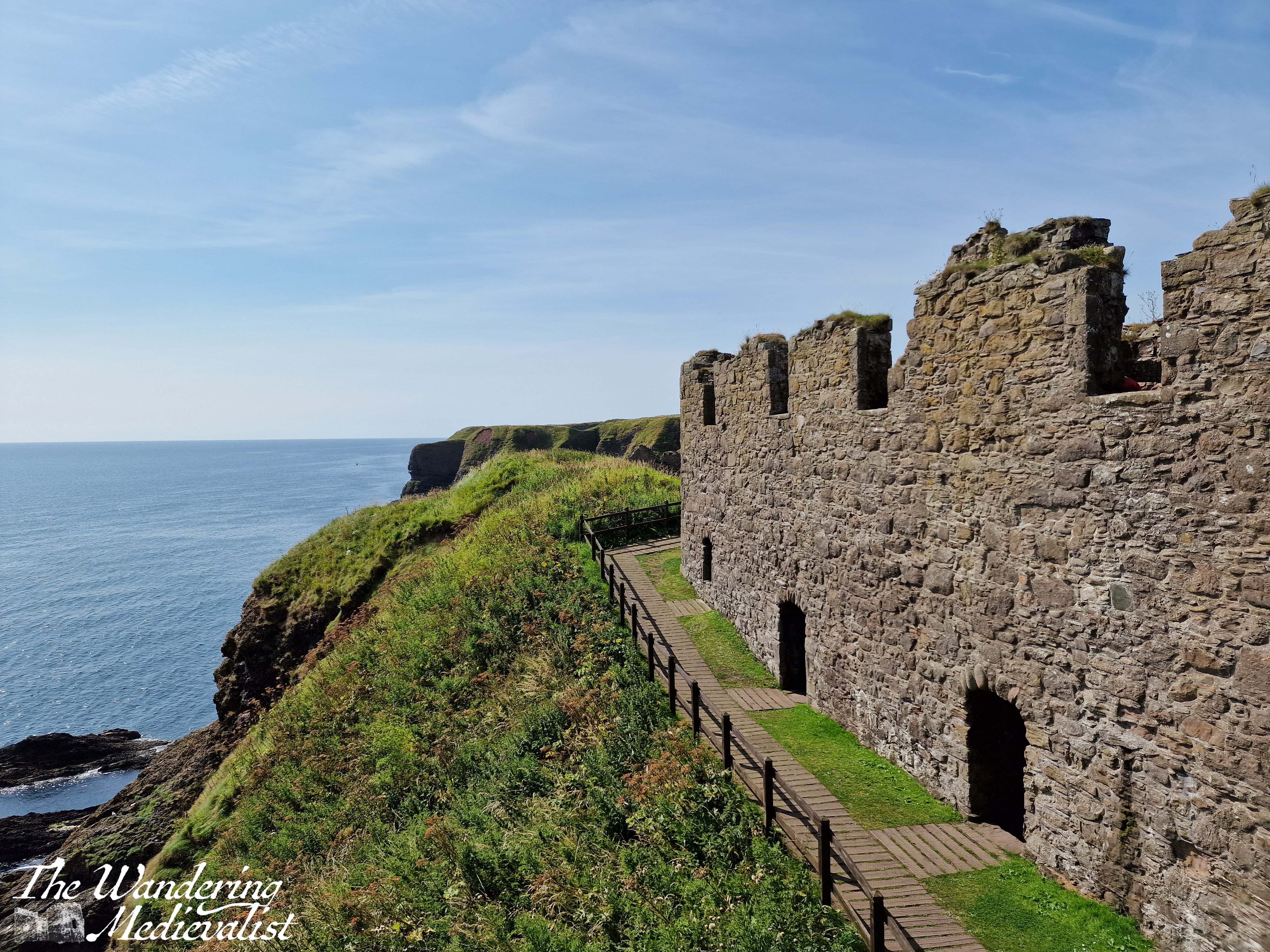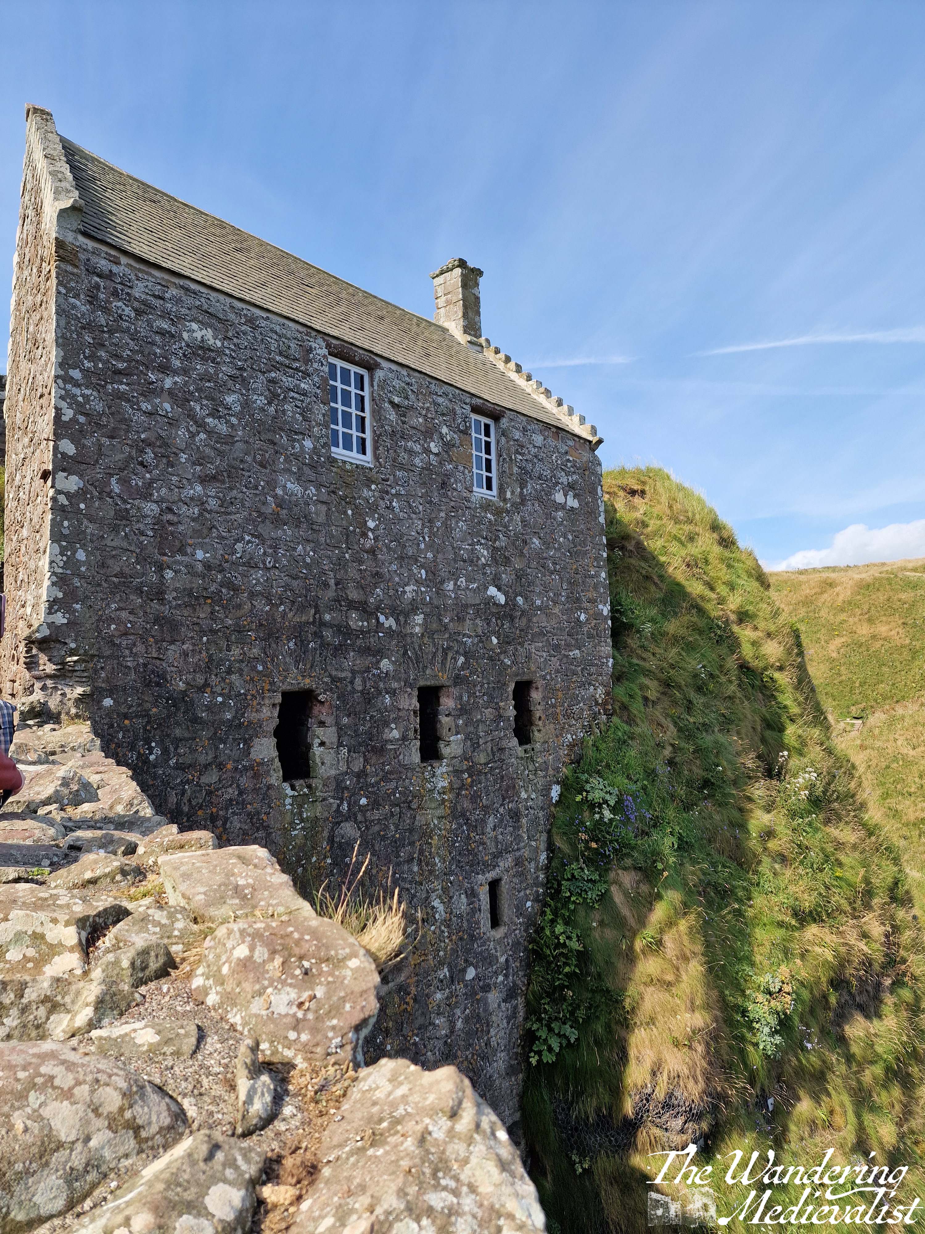 Stairs take you in a postern gate type of entrance, and then up through the gatehouse to where you buy or show your tickets. From the ticket office, there is a well-marked route climbing up through the castle, past Benholm’s Lodging, a structure clinging to the edge of the rock. The top floor is a comfortable enough room, while the lower levels are all designed to aide in defence of the castle with numerous arrow loops.