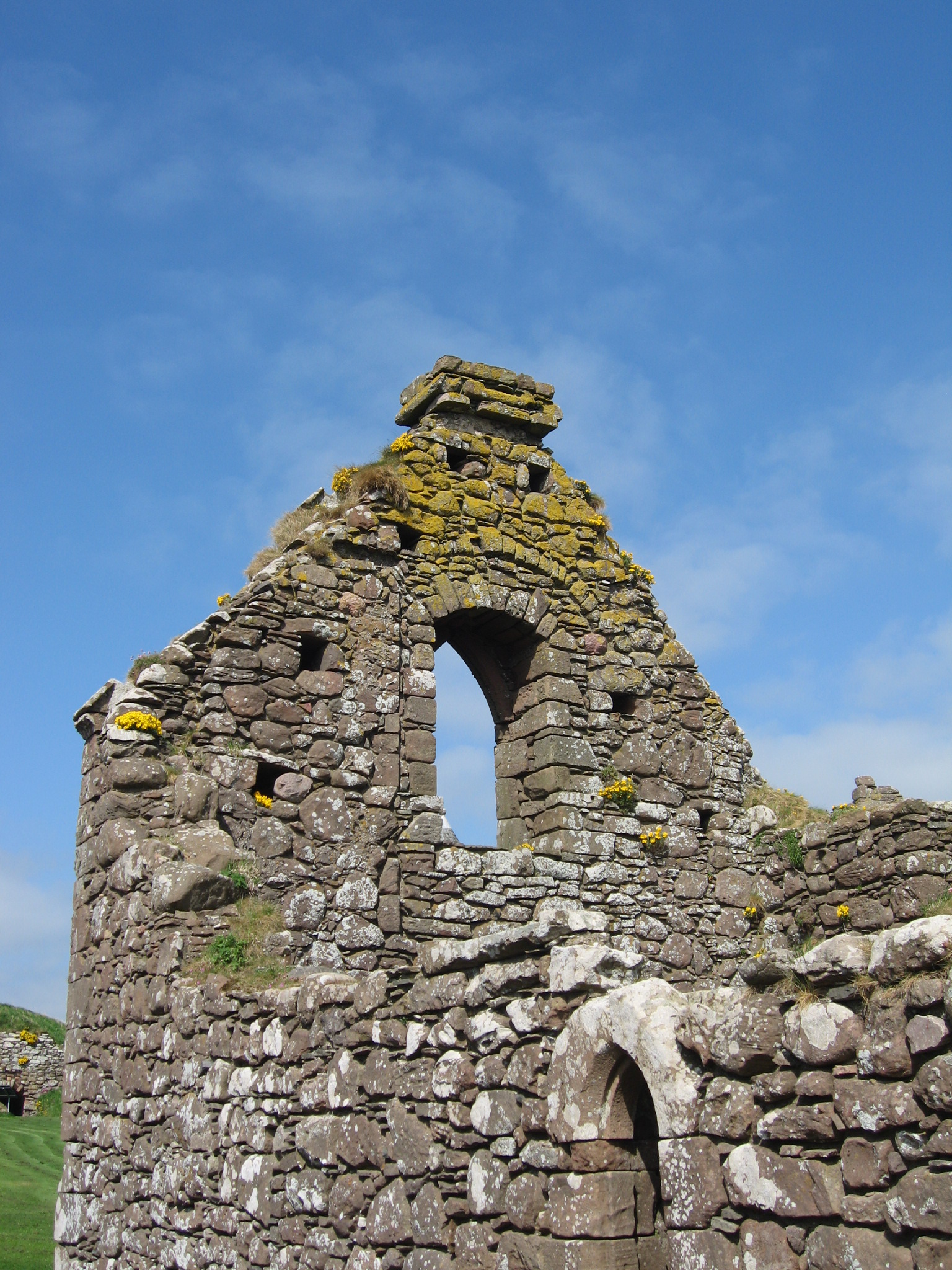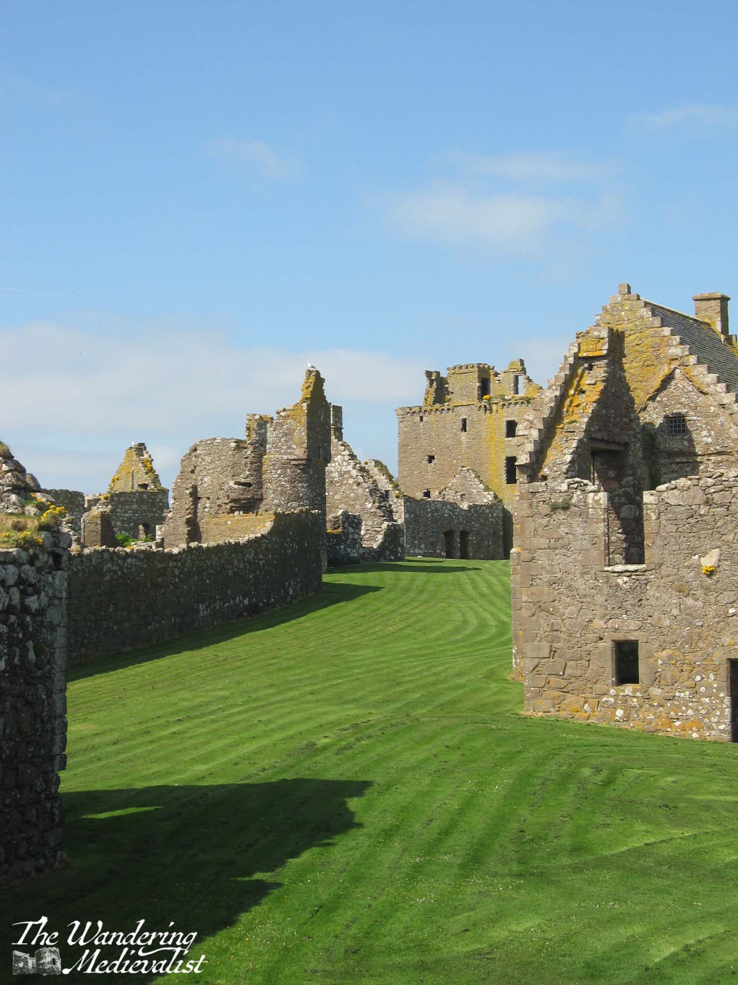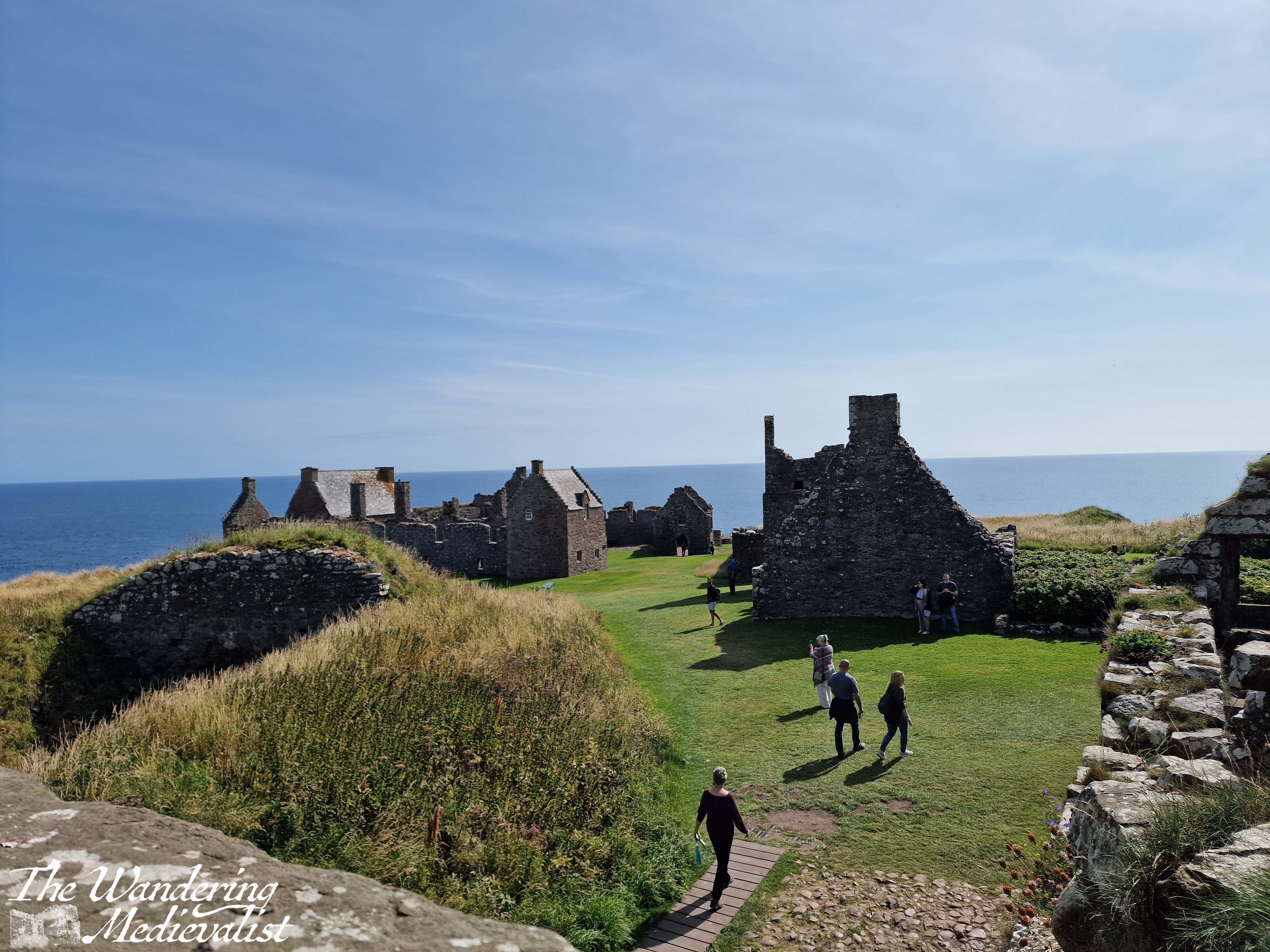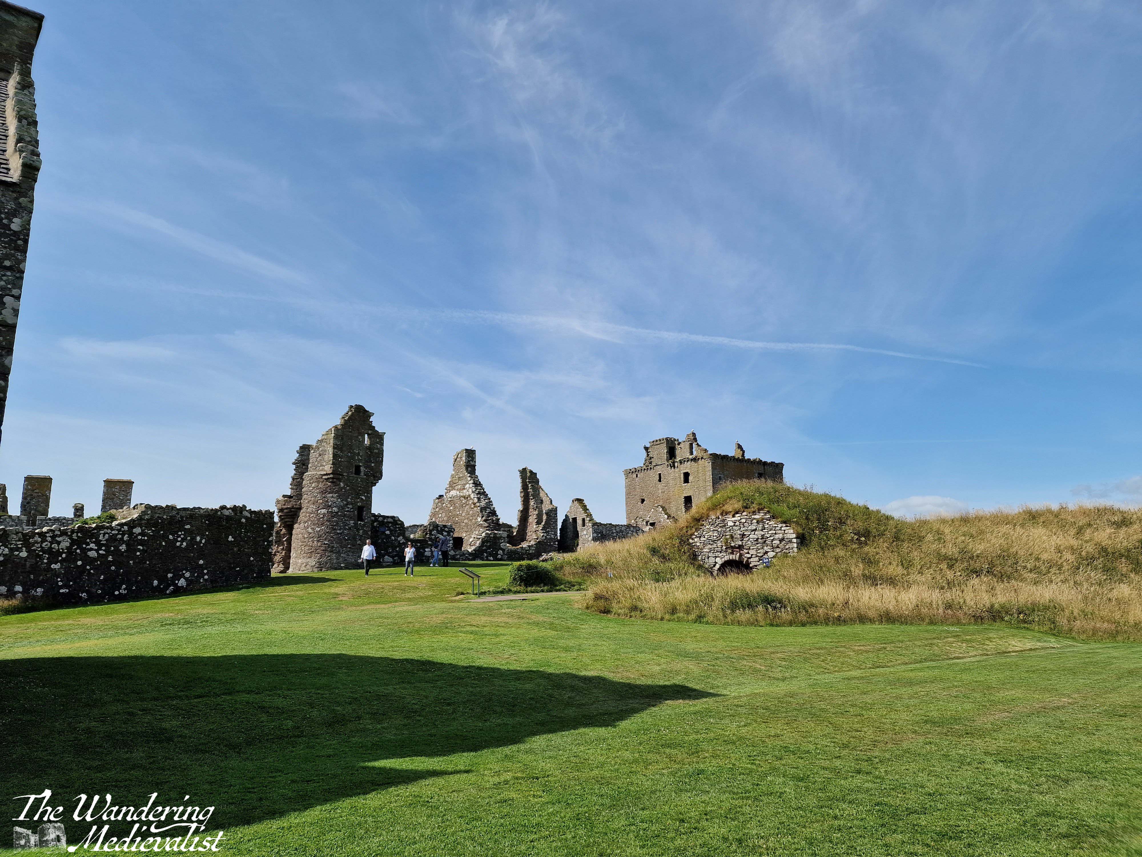 The chapel is key to note, as it is one of the oldest structures; consecrated in 1276 by William Wishart, the Bishop of St Andrews, it probably replaced a much earlier chapel to St Ninian, a missionary saint who is very popular in Scotland. The site of Dunnottar itself was likely inhabited as early as the fifth century by the Picts, and it was a religious site in the early Middle Ages, meaning that the construction of a defensive castle caused some upset. The pope even became involved in the dispute. Poignantly, the land that was graveyard is now mostly grass, with only one marker remaining.