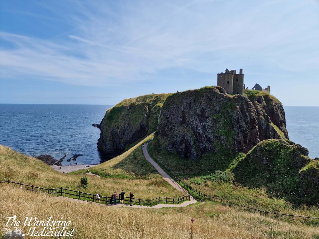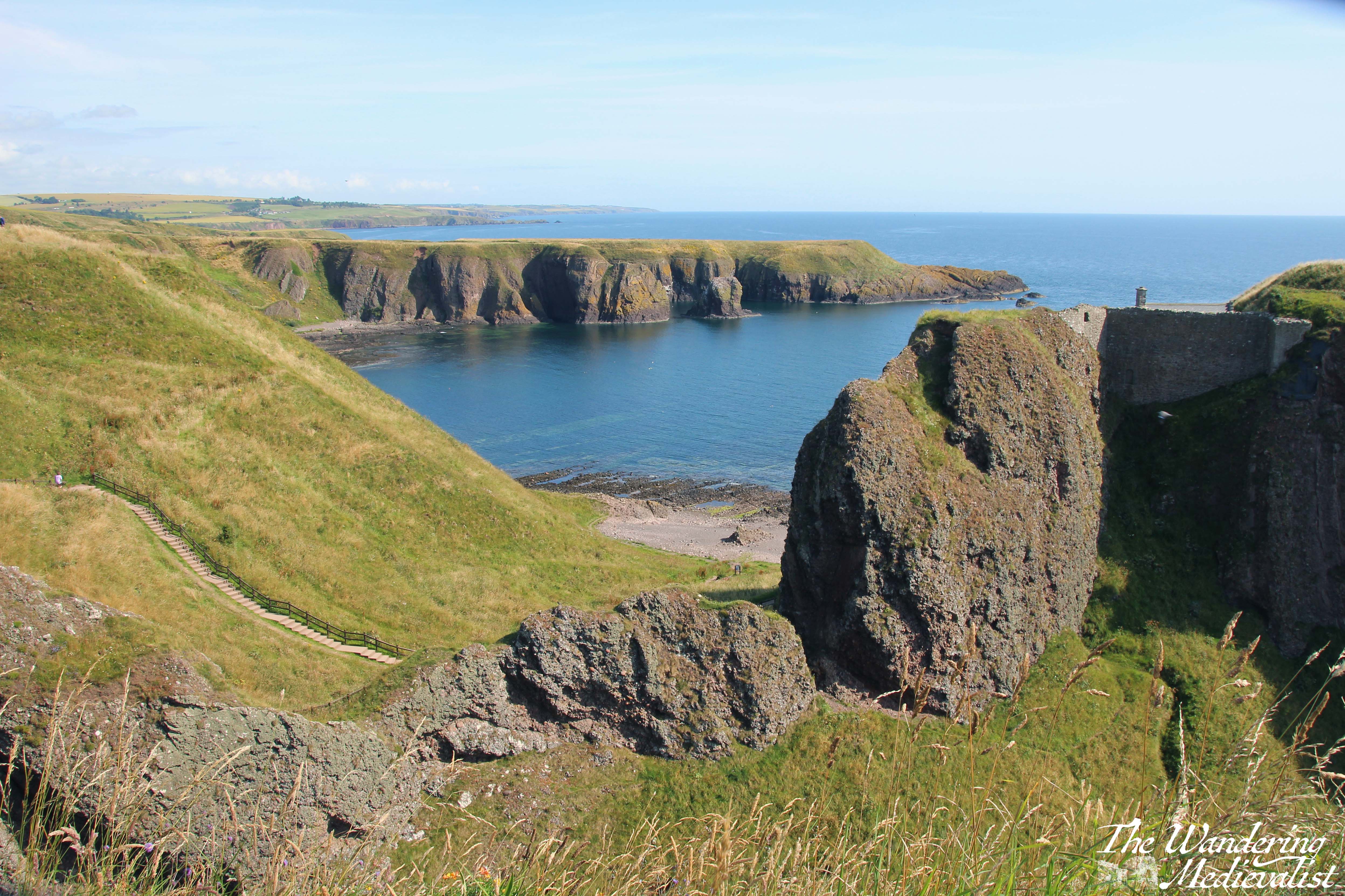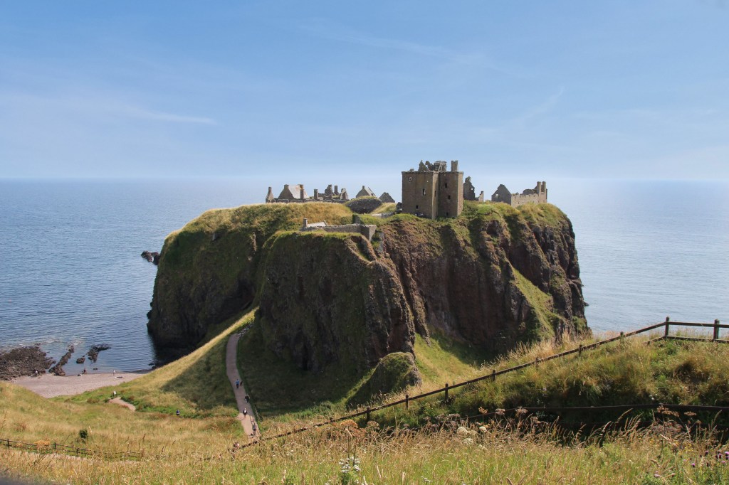 Dunnottar is most easily accessed by car, but if you are trying a carbon-friendly tour of Scotland, you are still in luck. You can either walk up the seacoast from nearby Stonehaven, about 1.5 miles – though prepare for a few good climbs and wear sturdy shoes – or you can get a local bus to the end of the road, about half a mile. I am not sure how often these busses run, however, so definitely keep an eye on the schedules. My mother and I first visited more than ten years ago, though I cannot recall how we actually reached the castle as we were definitely without a car; I have a feeling we actually took a taxi from Stonehaven train station, so that may be another option.