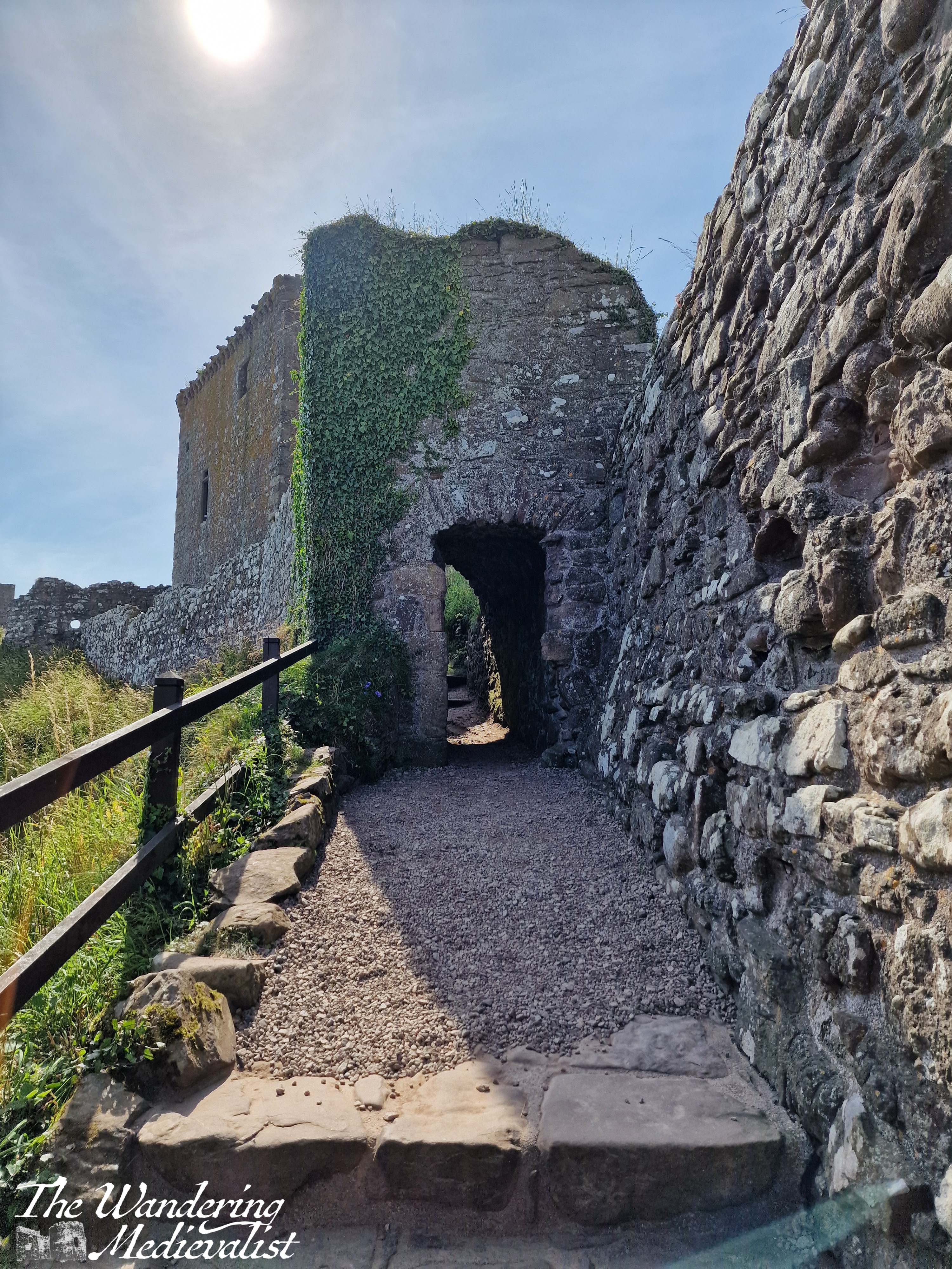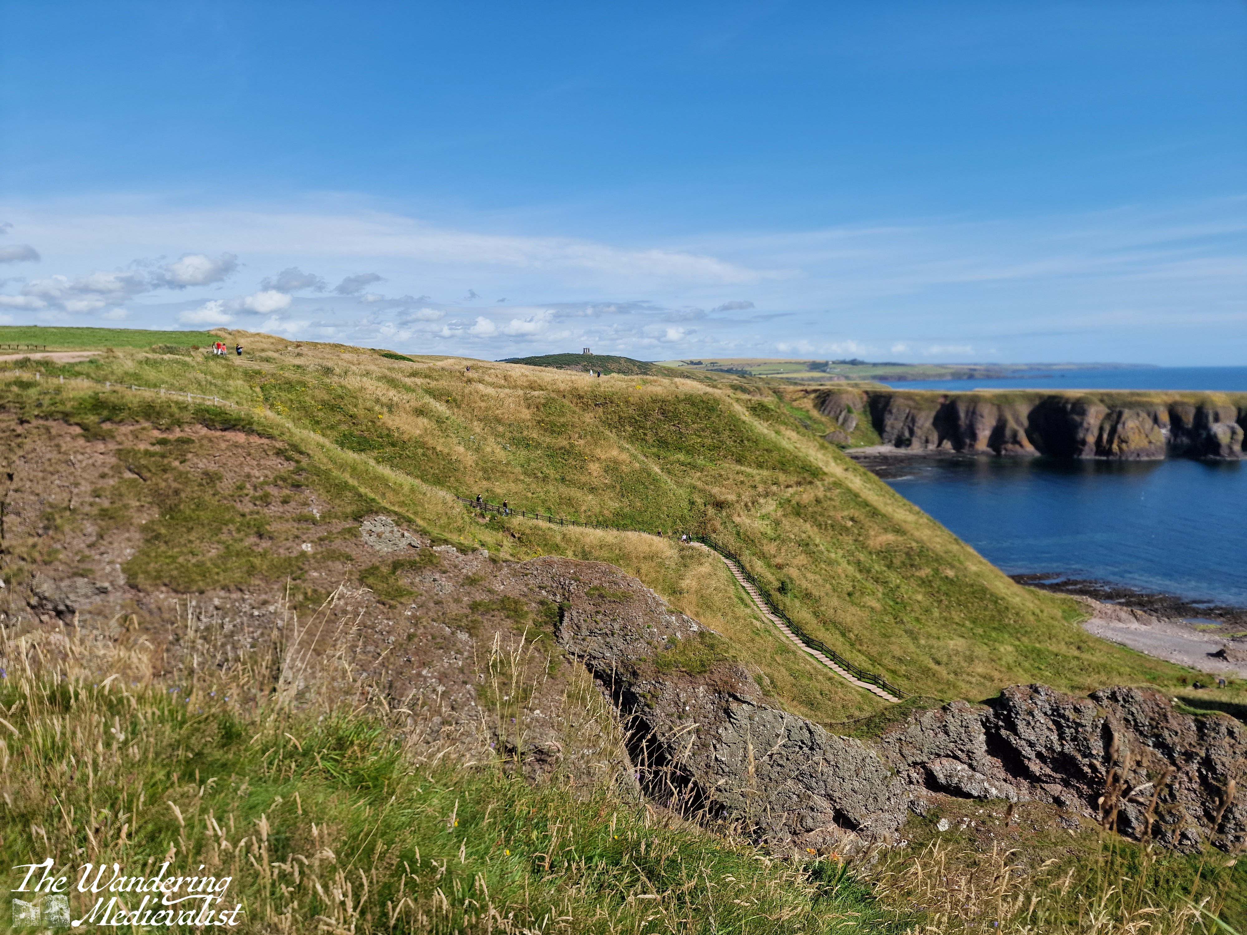 From the car park, visitors start off down a wide path lined with thistle and wild roses, with the castle slowly rising on the horizon ahead.