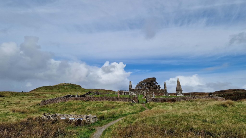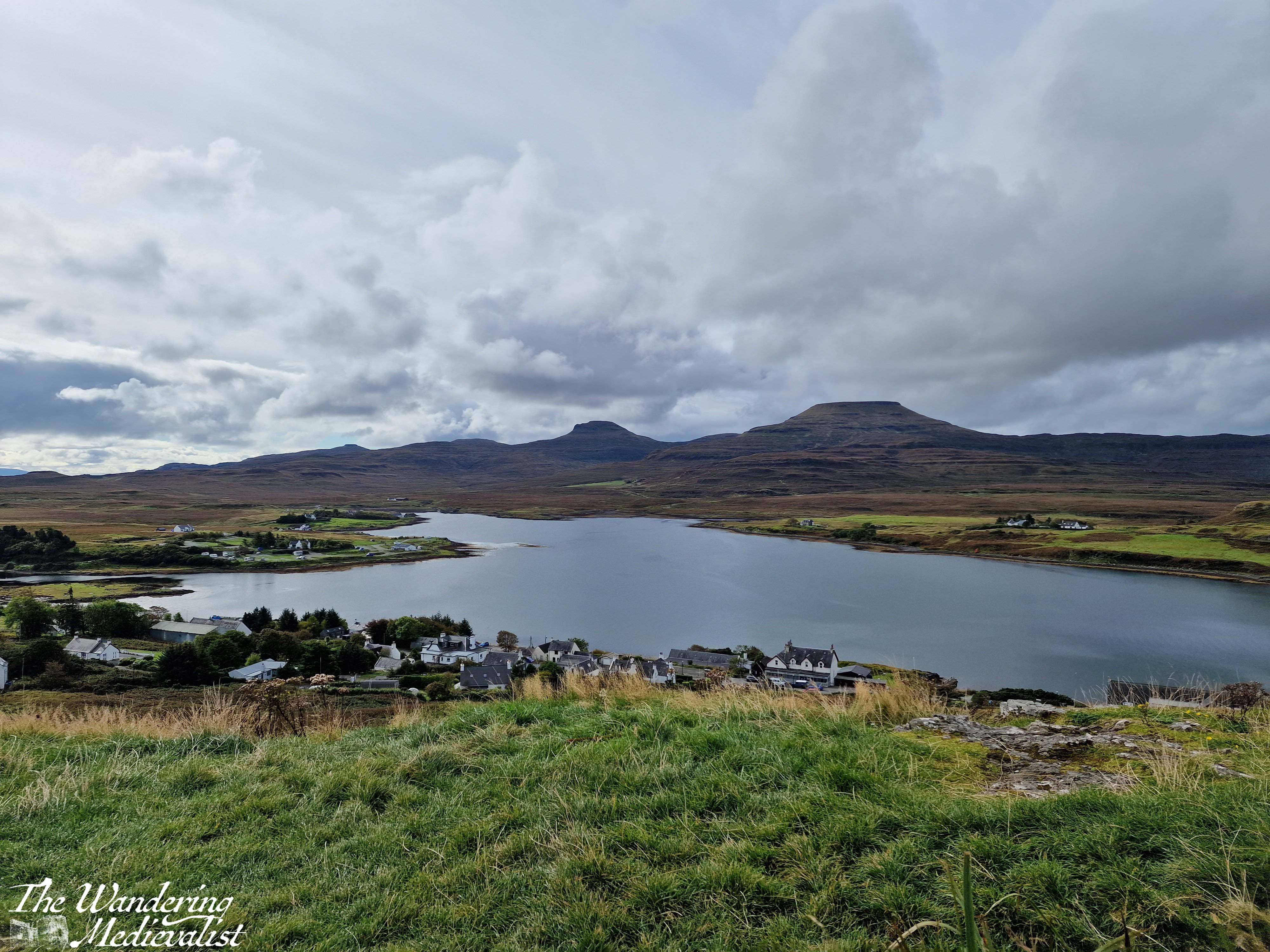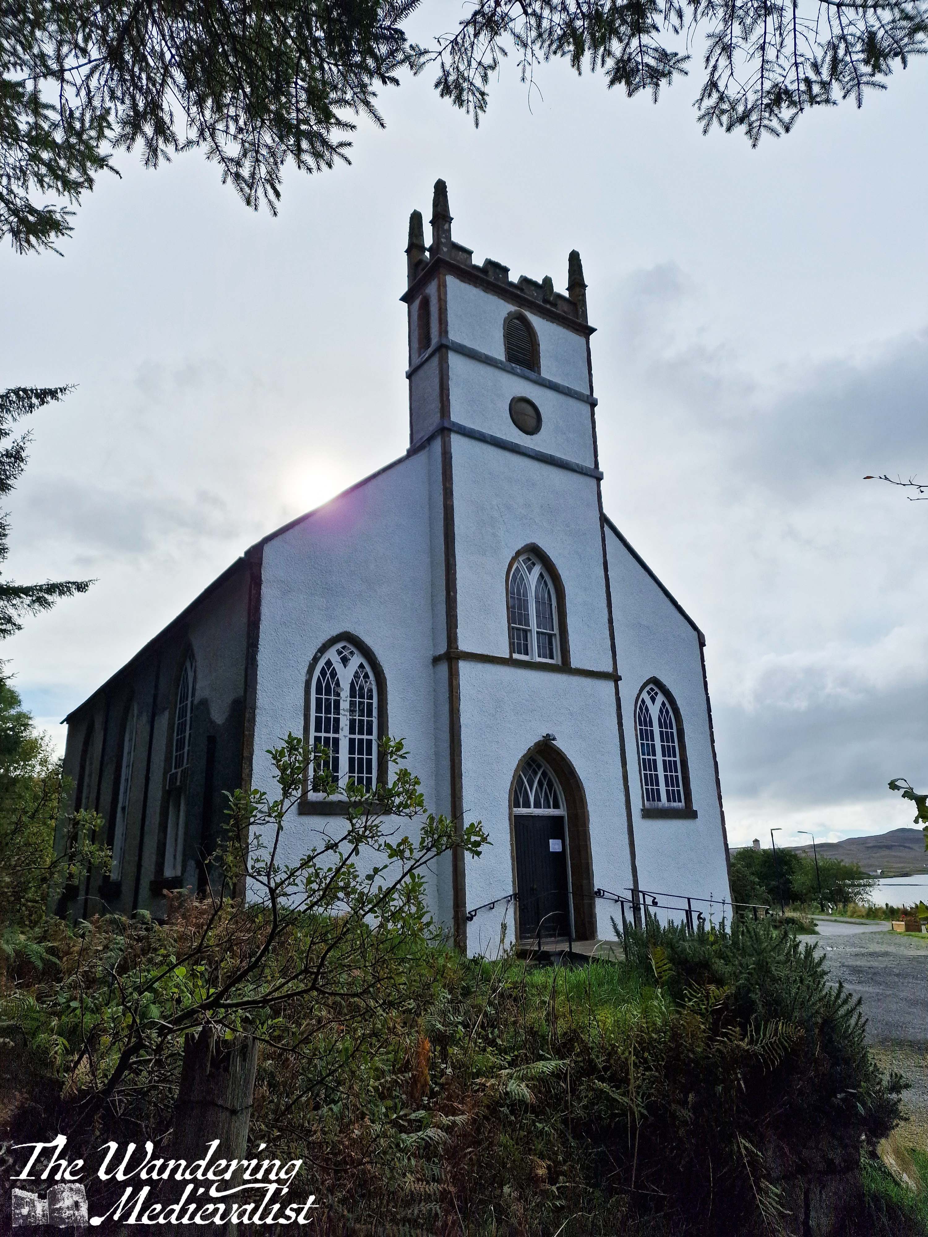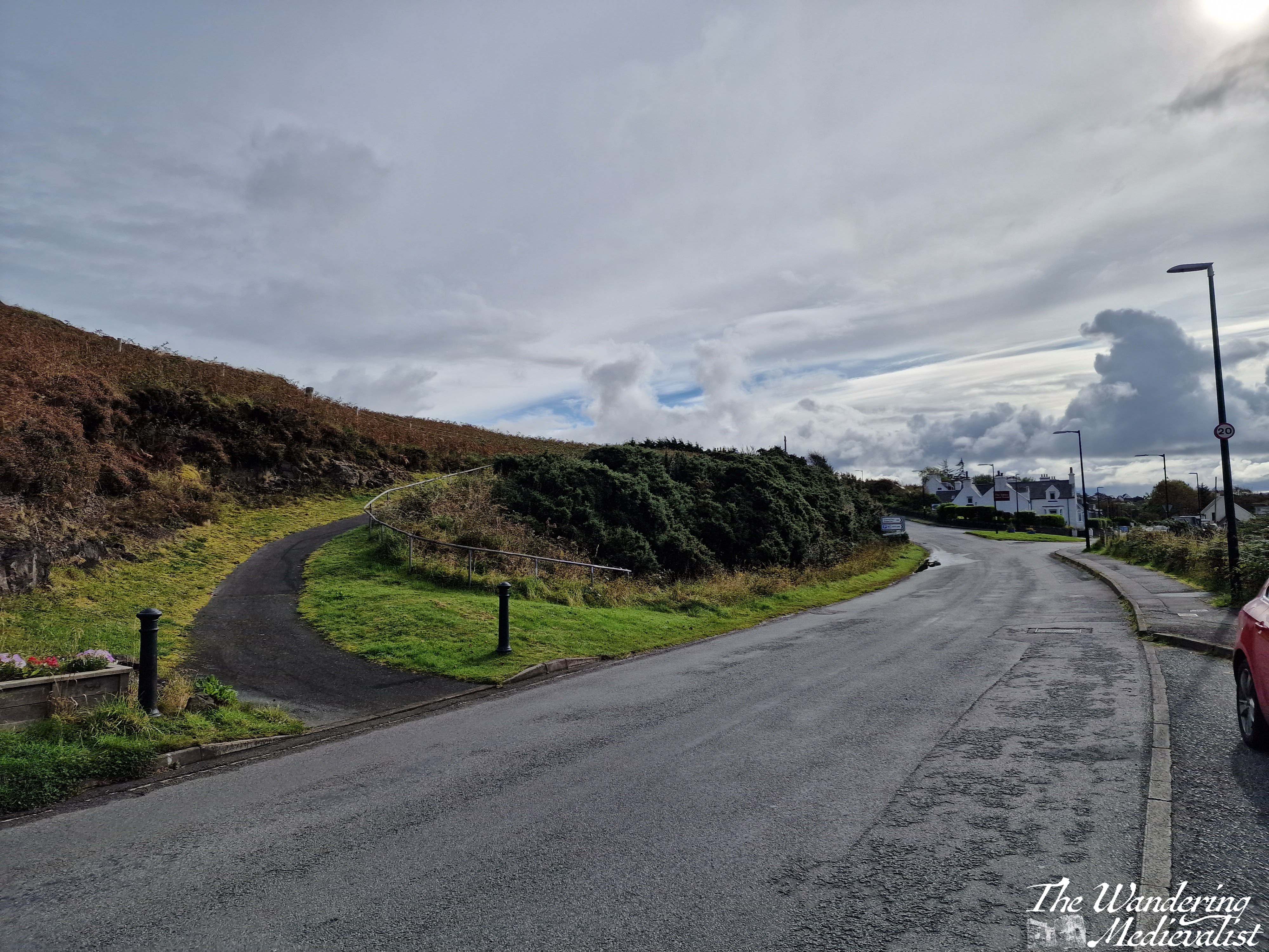 As you leave the fairy town behind, you soon come to the second of the two churches, the Duirinish Parish Church, which unlike St Mary’s is still very much in use. Here the path meets the road, and there is a short stretch of shops and buildings. There is an option for a short detour up to a memorial for those lost in battle, and the site overlooks the town and loch with lovely views.