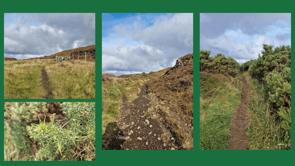 The path starts just to the right of the ruins of St Mary’s Church. It is a well-kept trail with a slow incline. There is a plaque with details about the walk and its route, as well as some of the birds you may see along the way (though we did not). You get nice views back towards the churchyard, with grassland on both sides. On the day we visited it was mostly dry though I imagine it would be muddy at times, and once the path turns rockier a bit further on, it could be slippery in the wet. I would definitely recommend good sneakers or walking boots to traipse through the puddles.