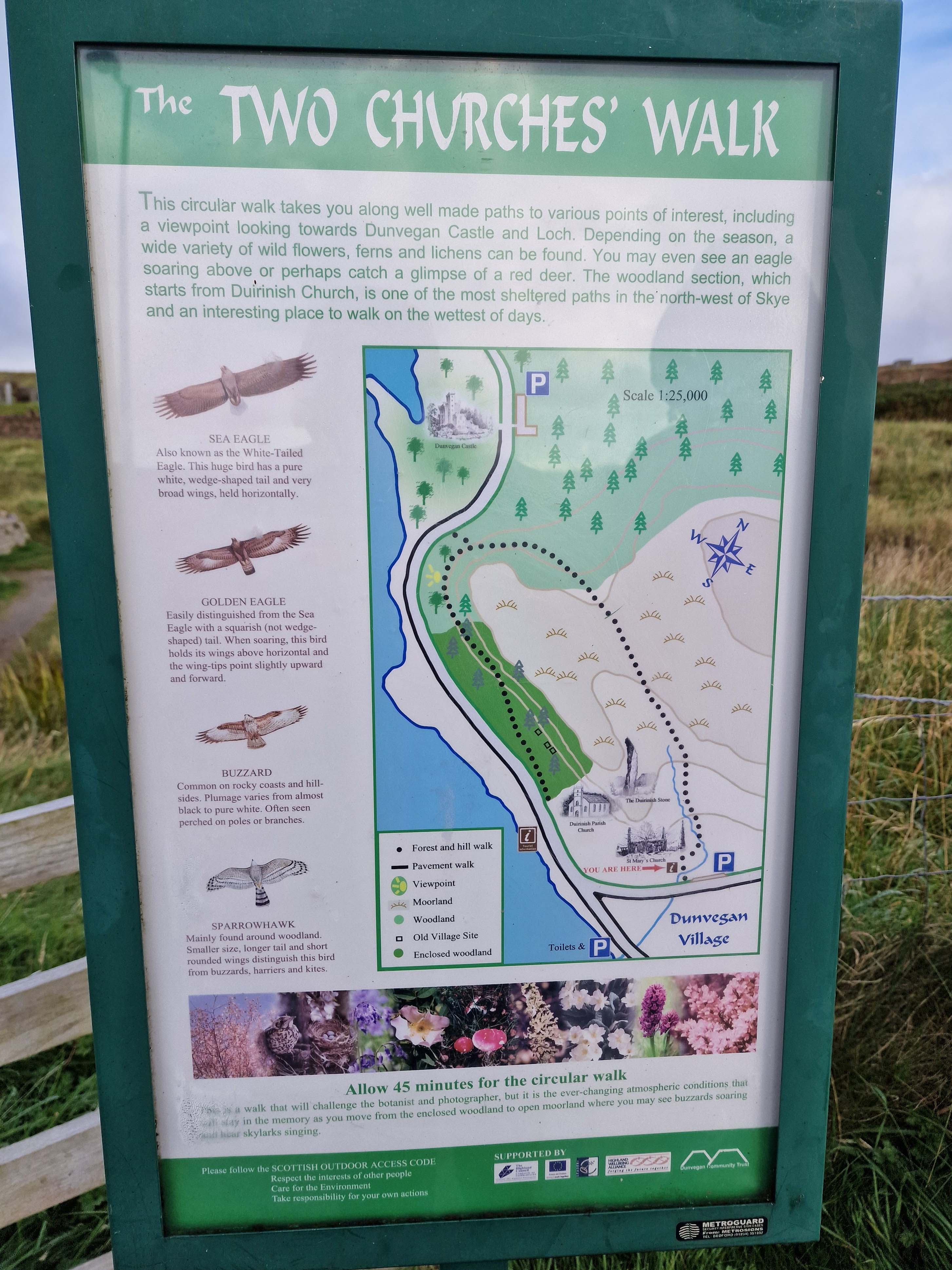 This is a very pleasant walk for a morning or afternoon, long enough to work out sore muscles from the day before but not enough to add to exhaustion. The views of the loch and mountains are lovely, and this could easily be combined with a visit to Dunvegan Castle which is only a mile or two further along the road. And definitely, if you have time, stop into the Dunvegan Café for a snack!
