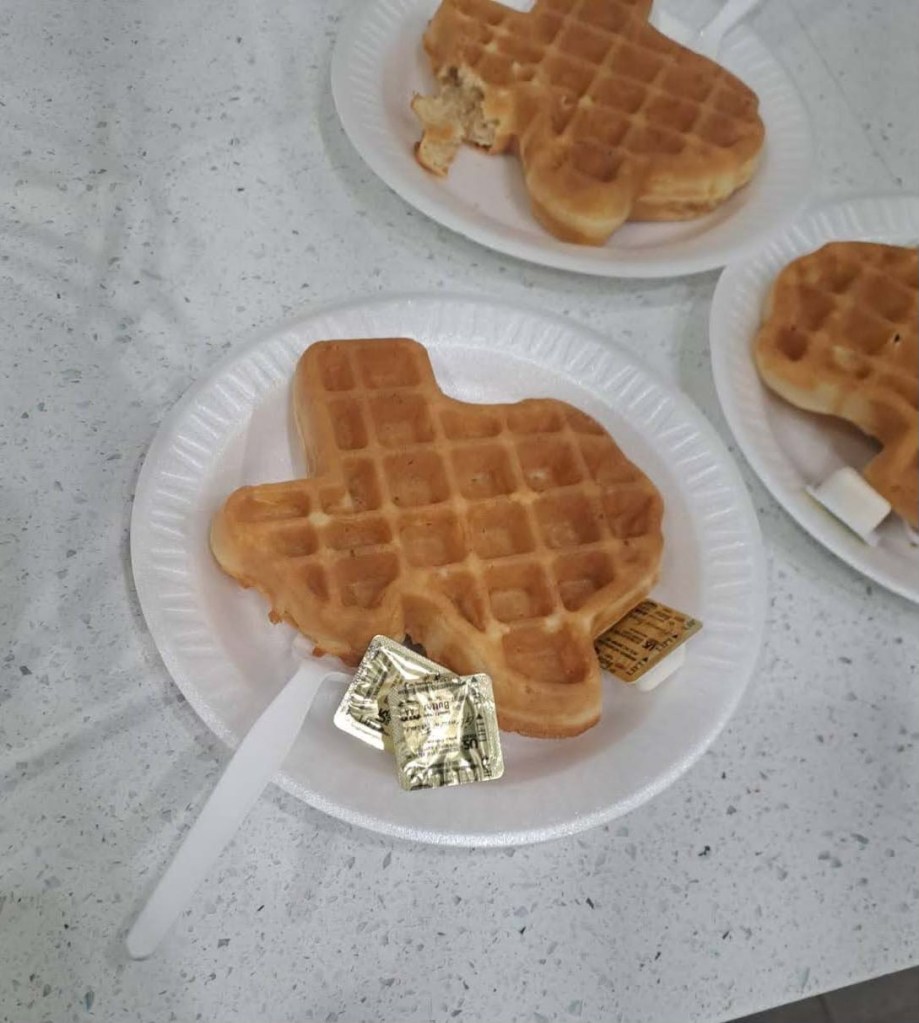 In the otherwise rather standard hotel I stayed in, they offered Texas-shaped waffles on a Sunday morning. The epitome of Texas and the US. Made me so very happy.