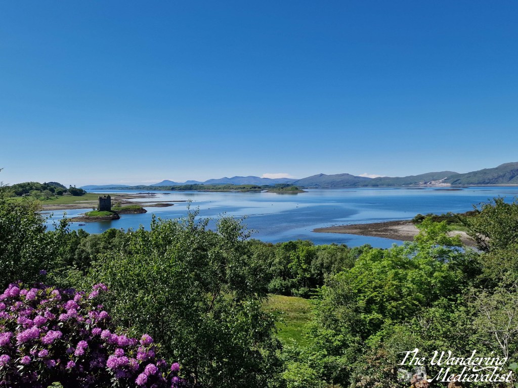 Driving back from Oban, we enjoyed a day of almost perfect weather. We stopped at the Stalker View café and this perfect view awaited us. I love the hint of rhododendron in the corner.