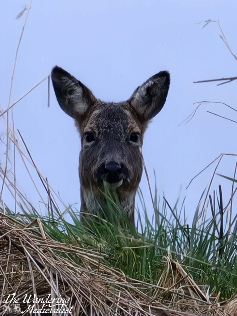 My morning walks in spring are often joined by the local small family of deer. I like to think that they get used to me and are less afraid of the woman in a purple coat who is always taking pictures.