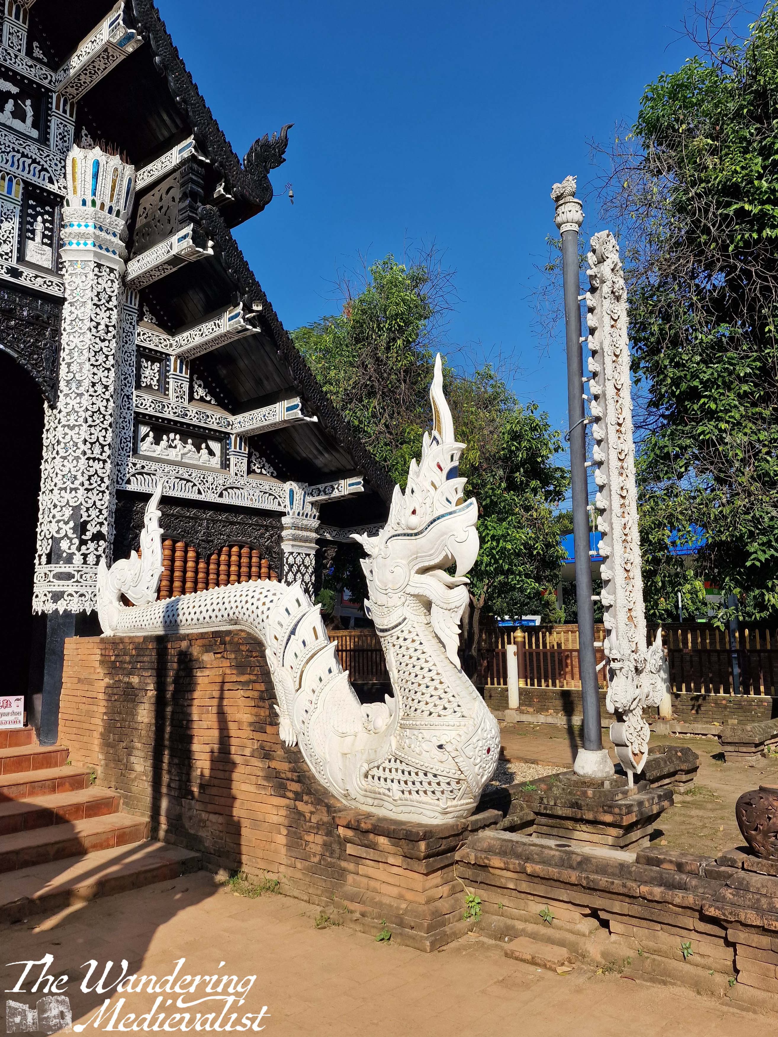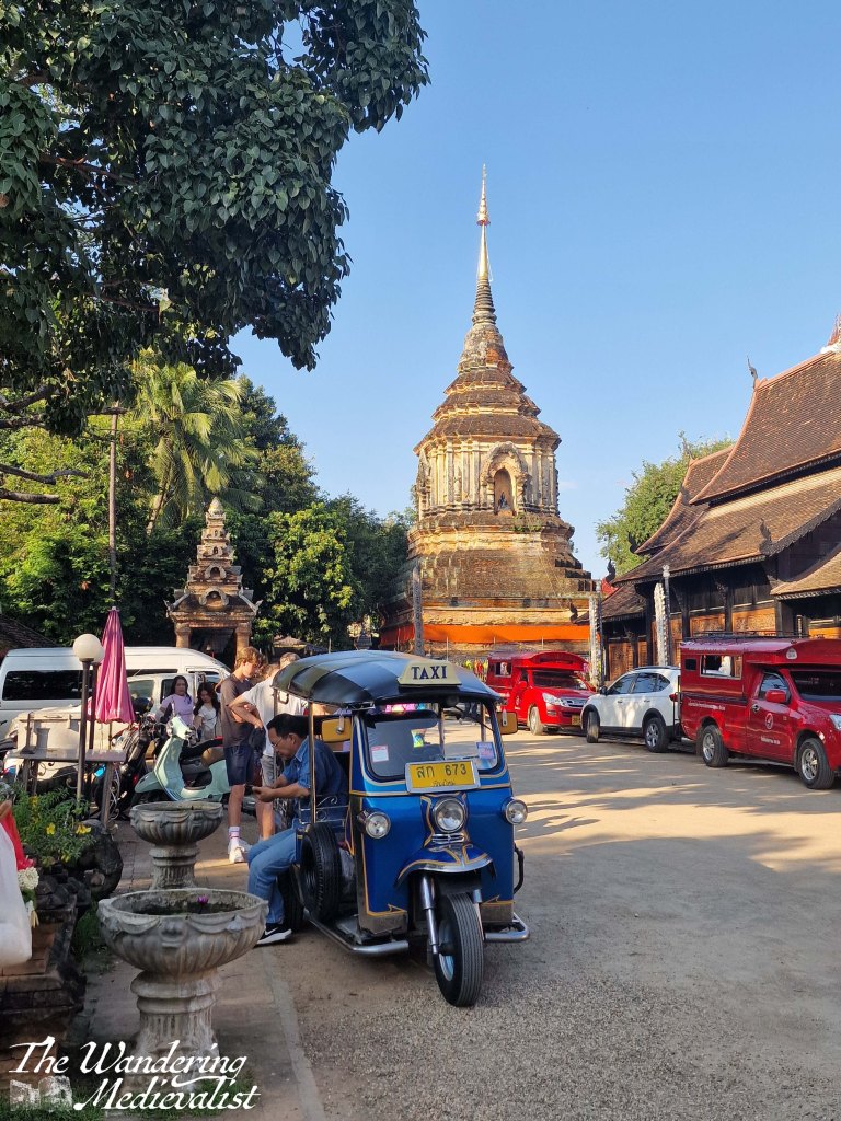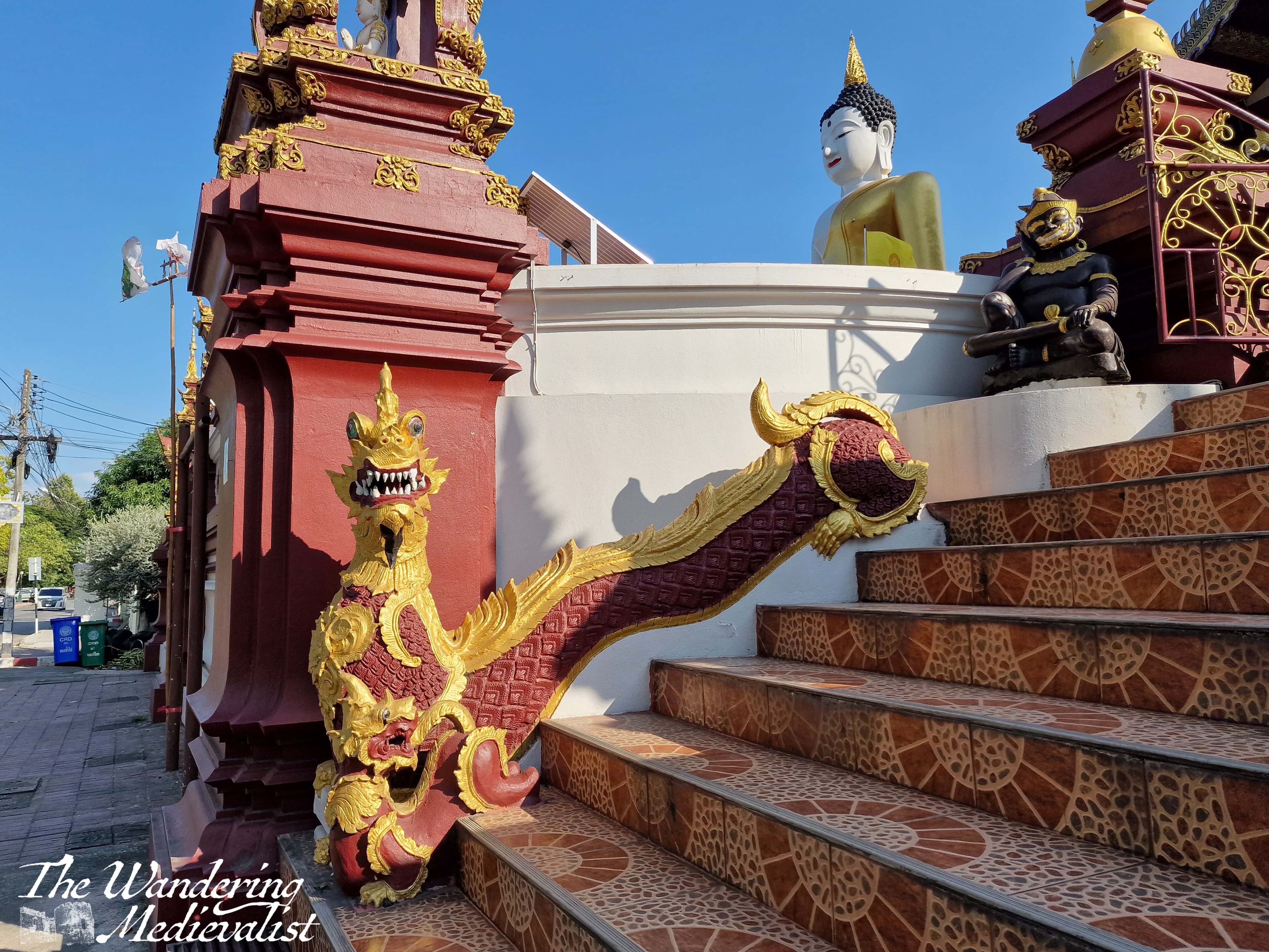 Chiang Mai, as I learned, is the second-largest city in Thailand, though the portion I visited felt considerably smaller – I clearly missed quite a bit. It was founded in 1296, and fortified with a town wall – some of which still exists – as well as the almost square moat. I confess myself to being quite ignorant of Thai history, but learned that this area of northern Thailand was part of the Lan Na Kingdom for what in Euro-centric terms is considered the Middle Ages and early modern period. Chiang Mai became capital of Lan Na under its first king, Mangrai (c. 1238 – 1311).