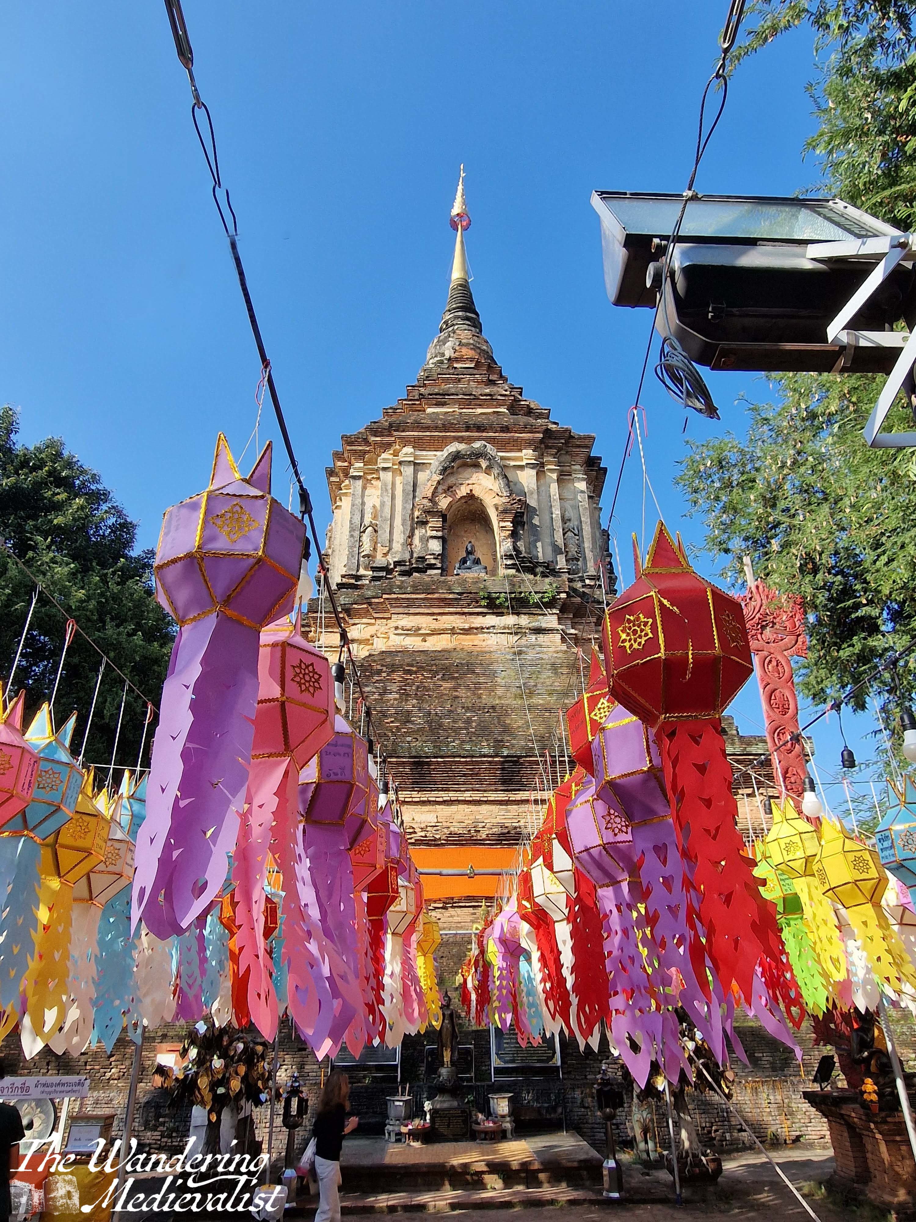 From here I moved back towards the chedi – commissioned in 1527 – in front of which was a display of beautiful coloured lanterns.
