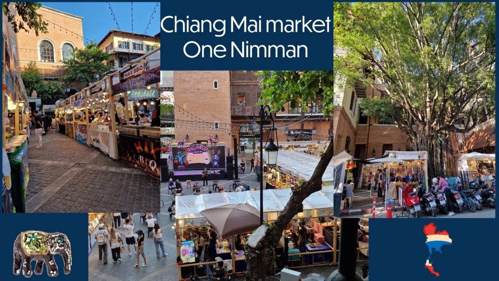 My final exploration of Chiang Mai was investigating One Nimman, the shopping centre across from the hotel. It reminded me slightly of Quincy Market in Boston in terms of architecture, and the shops were perfectly touristy, just what I needed to round out my Thailand gifts for home. The central square was a large open air street food market, while around the edges of the complex were a series of craft stalls. Clearly a high-end market area, One Nimman also offered plenty of health-related shops where wellness was a priority – massage, facials, and much more.