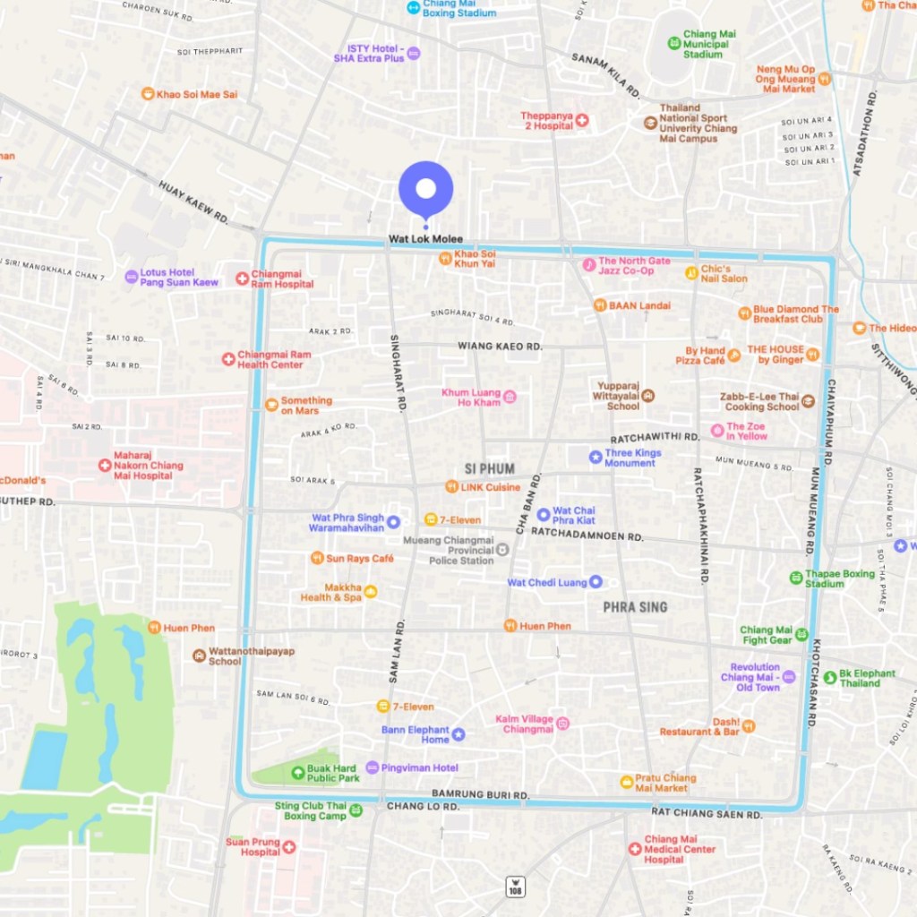 The temperature and my excitement meant that by this point, my phone was actually starting to overheat; it was time to put it in my bag, away from my body heat, and head back to the hotel. I had the route planned out, but learned before long that my idea of ‘I’ll just walk up that road’ was not as simple in Chiang Mai.