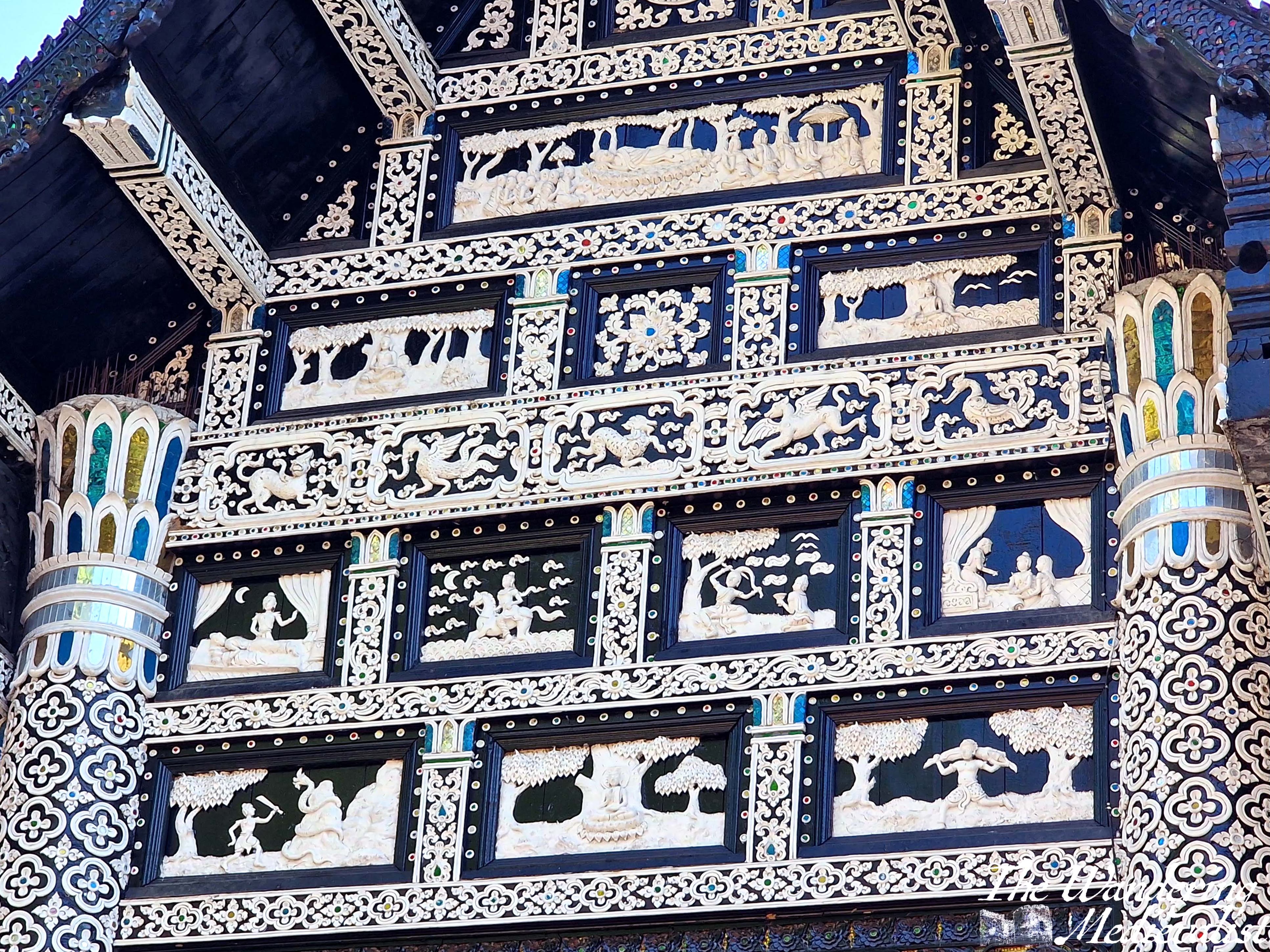 Through the arch, one was confronted immediately with the splendour of two massive elephant statues, and the intricately carved face of the temple, flanked by white dragons.