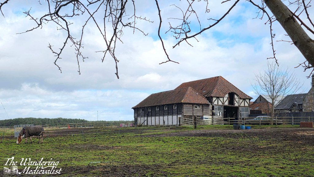 Not far beyond the main entrance – blocked by a massive gate house – is another exit to the estate, where you can just see hints of the wall and gardens. A short distance later, through the bushes on the other side of the road, comes into a view a beautiful old barn with several horses in the field/ The accompanying farm house is a bit less grand, but the presence of several rows of now decaying farm crofts indicate that this may have been a thriving community at one time.