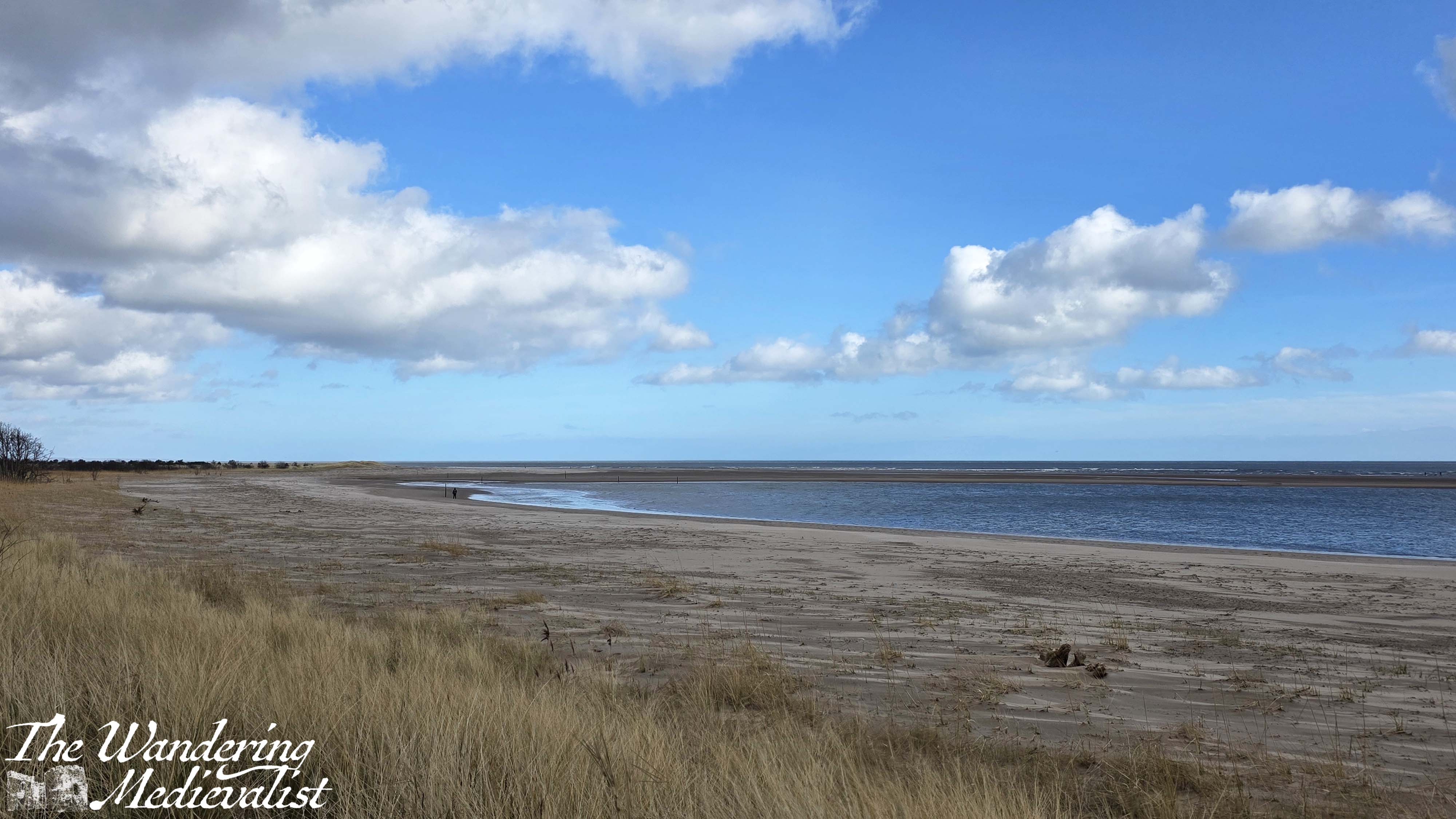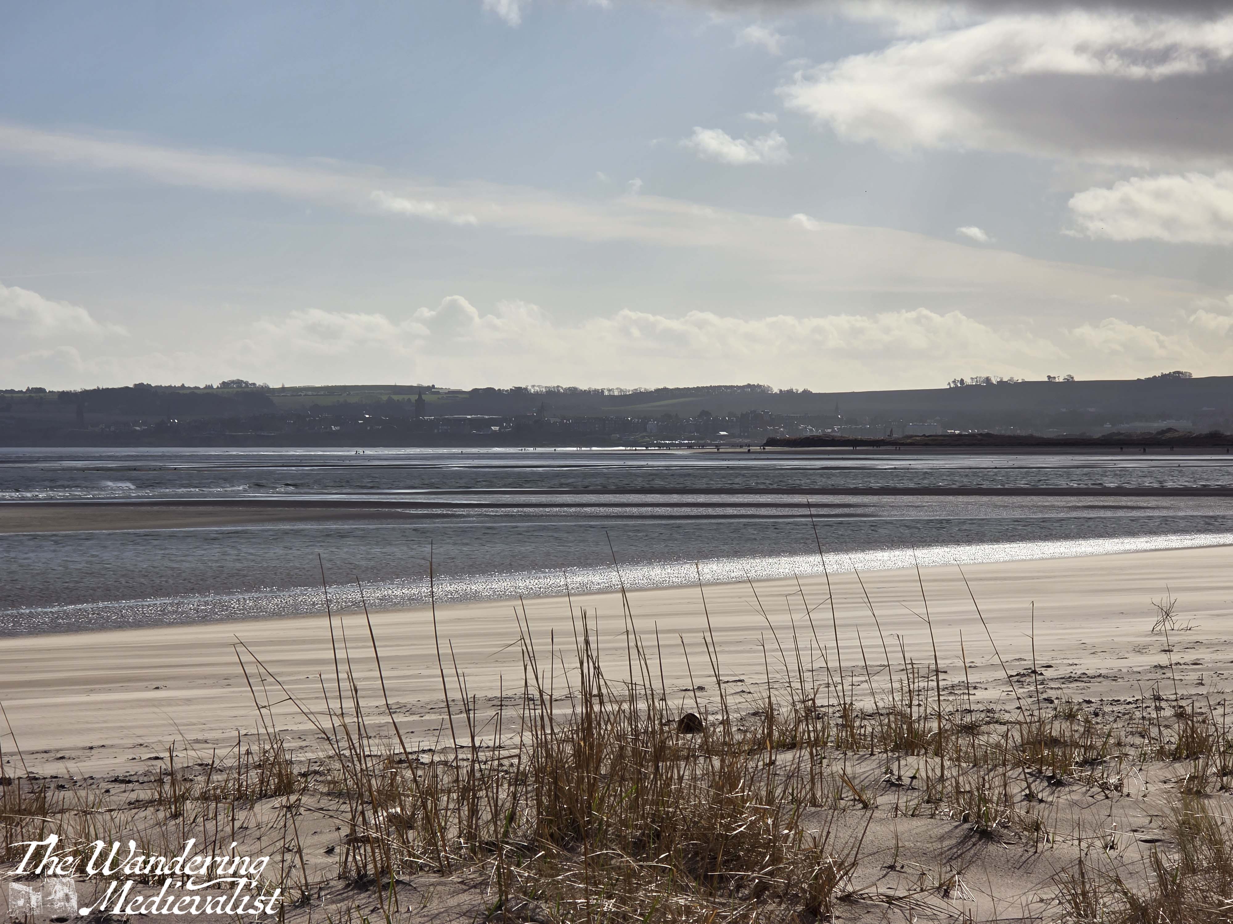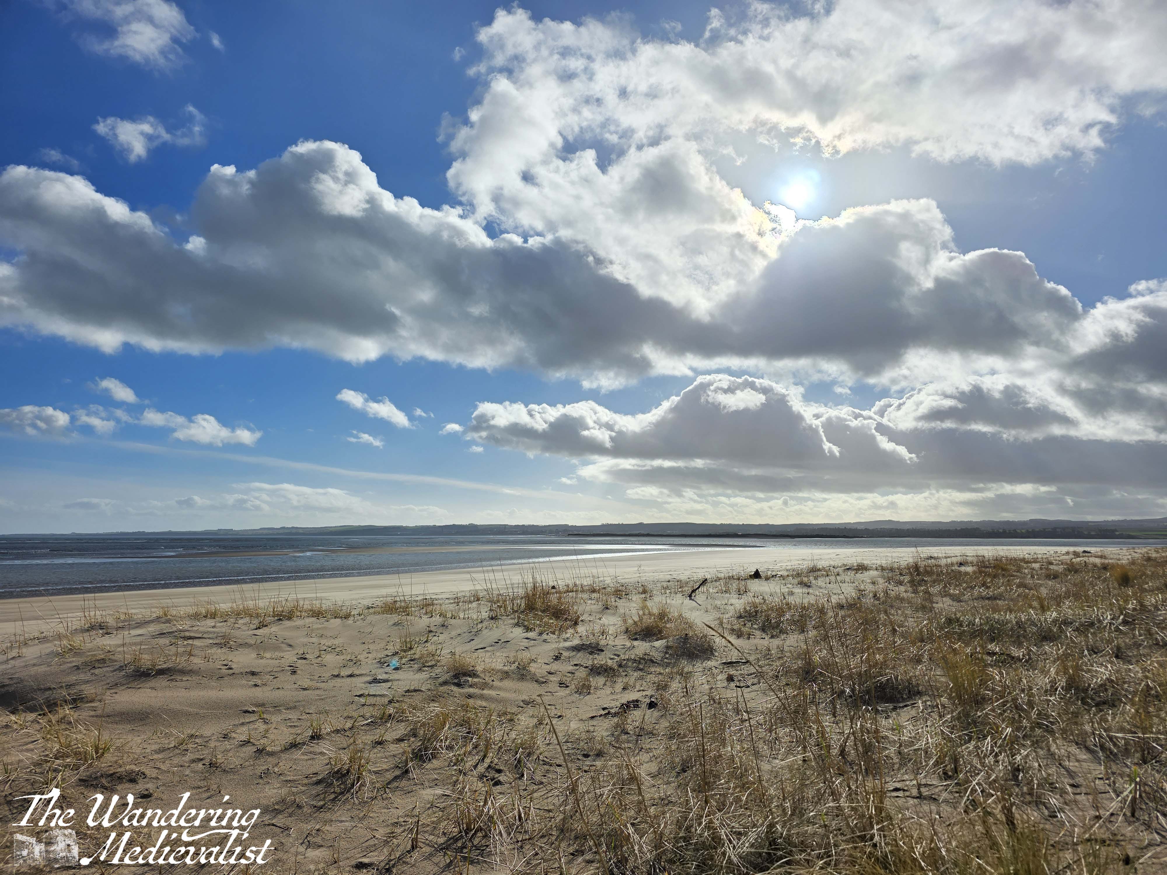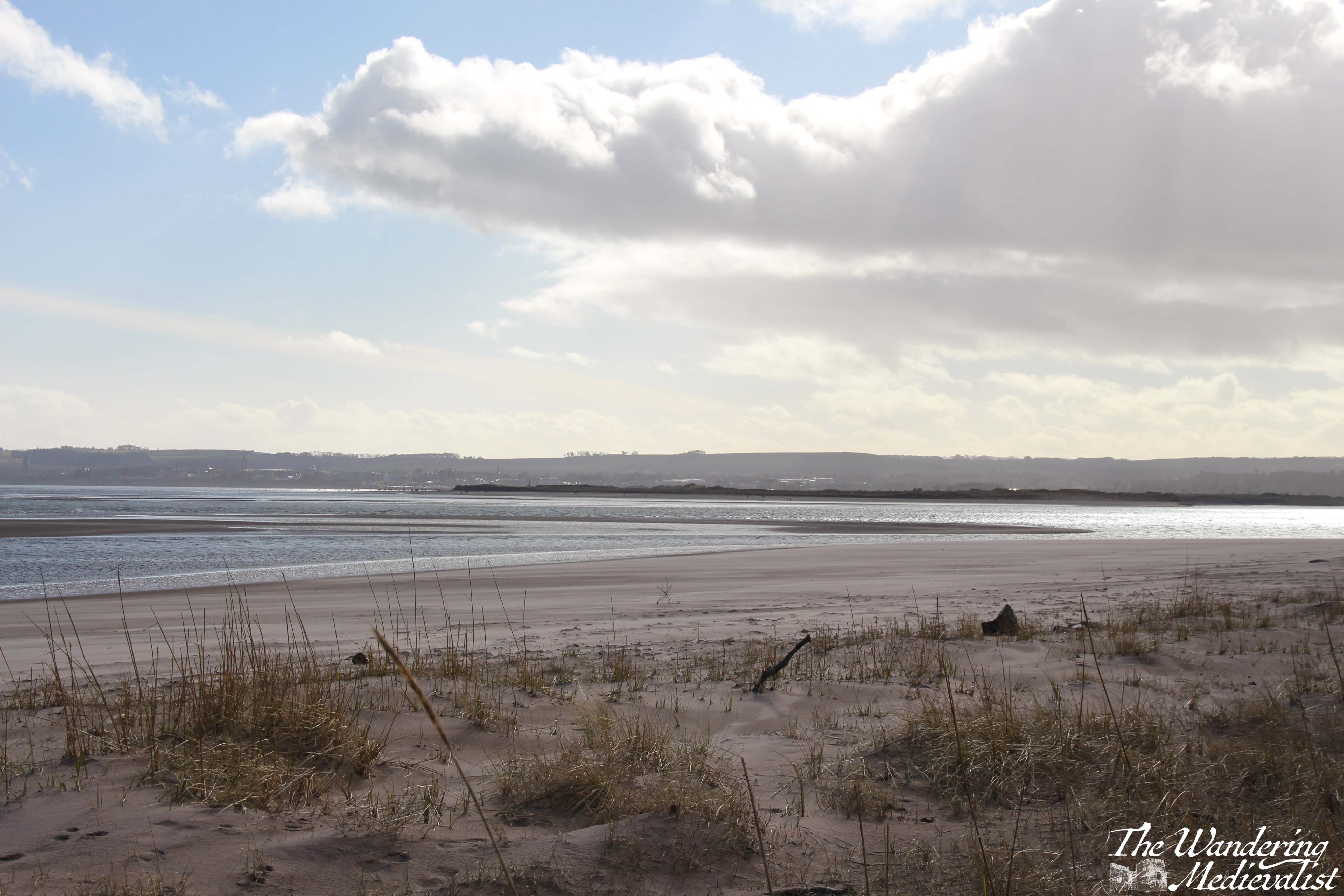 About 1.5 miles from where the path should have branched off, I finally reached the beach. The view across the Eden Estuary towards St Andrews was spectacular, the sun came out just at the right time, and even the giant blocks of concrete half buried in the sand were beautiful. These blocks can be found all along this stretch of beach, constructed during World War II in the hopes that they would prevent the Germans from landing on the wide sand and rolling tanks into the farmland.