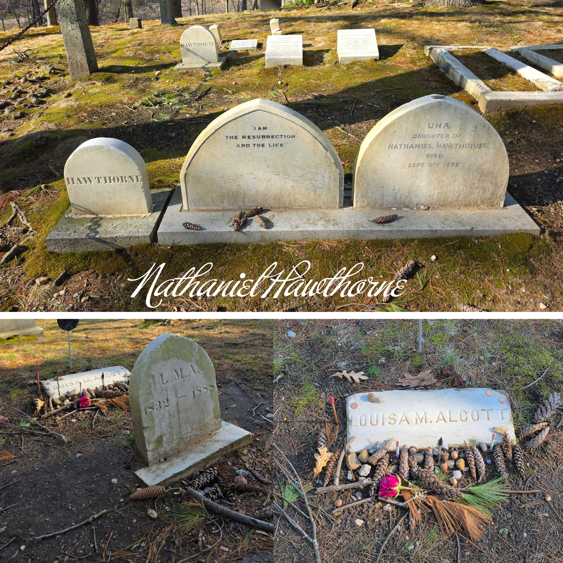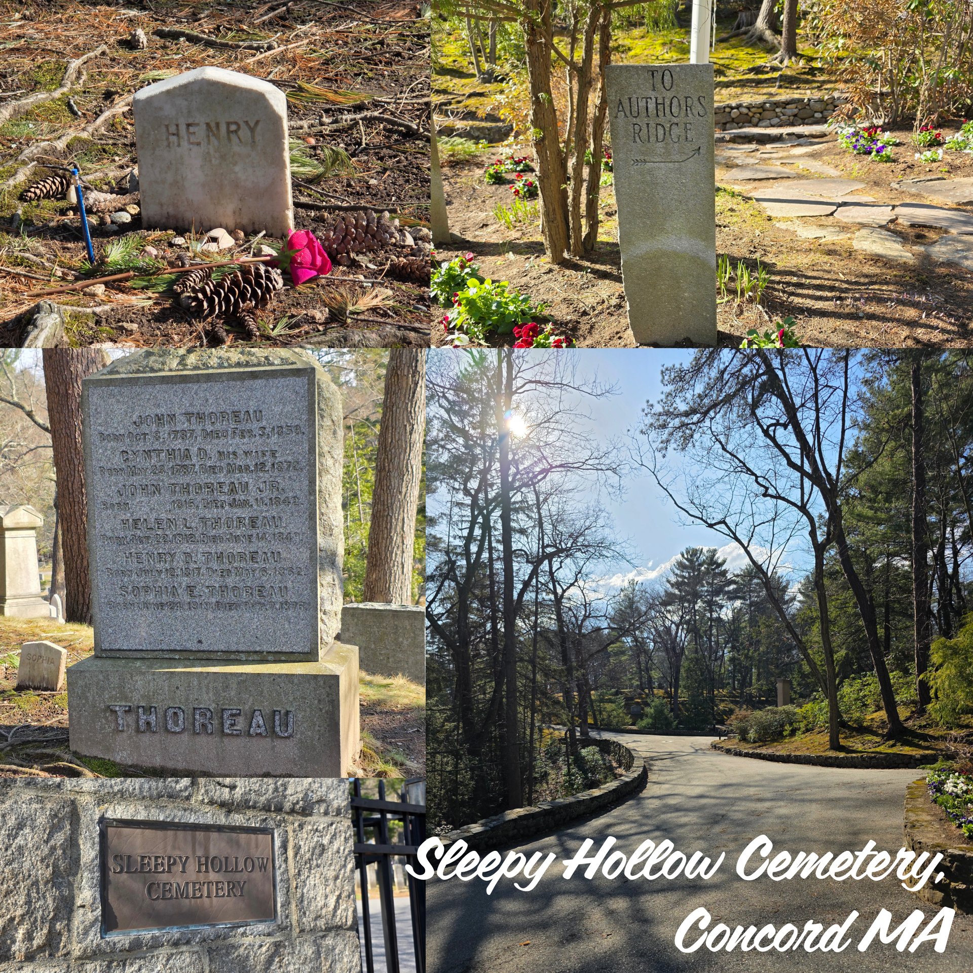 We did take one more walk around the town of Concord, down the Main Street and circling through the neighbourhoods to visit two graveyards. The first was the Old Burying Hill, located just off the Common, and the location of the original meeting house. The second was the more famous Sleepy Hollow Cemetery, where there is an entire section devoted to famous authors of the greater Boston area. Here are buried, amongst others, Henry David Thorough, Nathaniel Hawthorne, Louisa May Alcott, and Ralph Waldo Emerson (who we never did find)