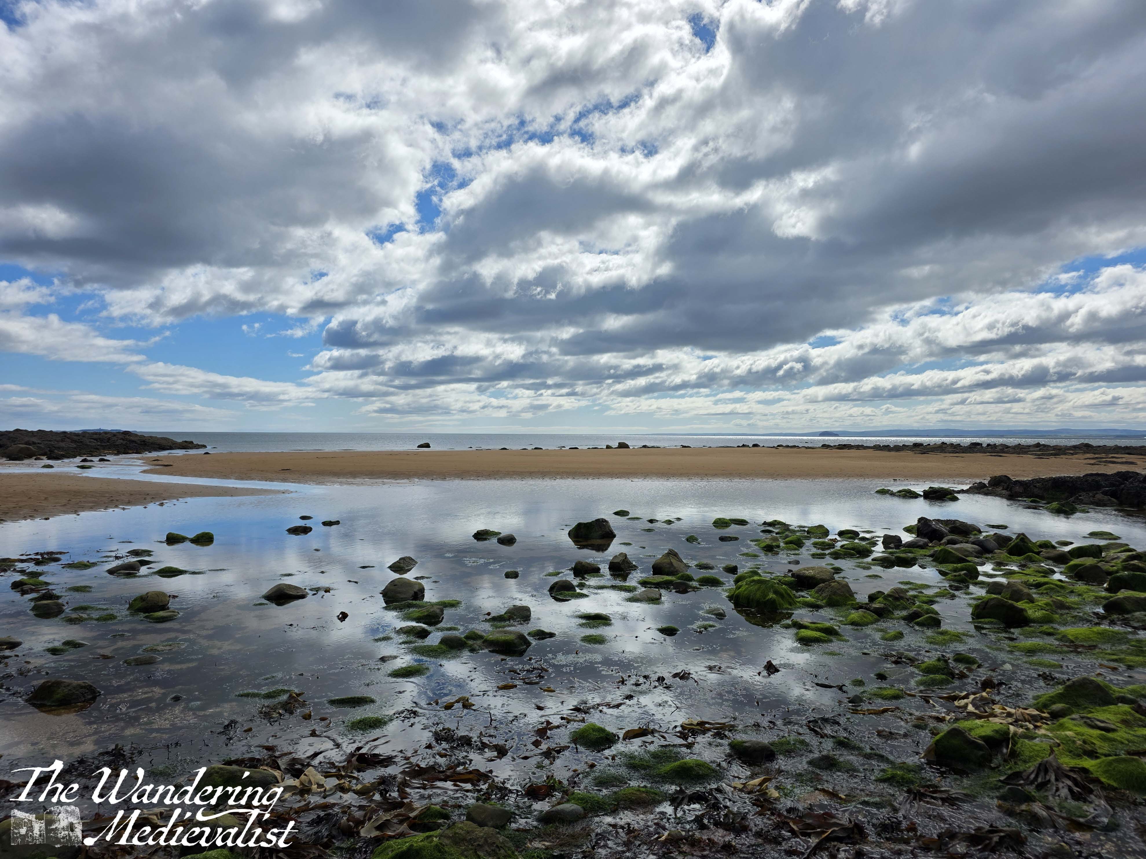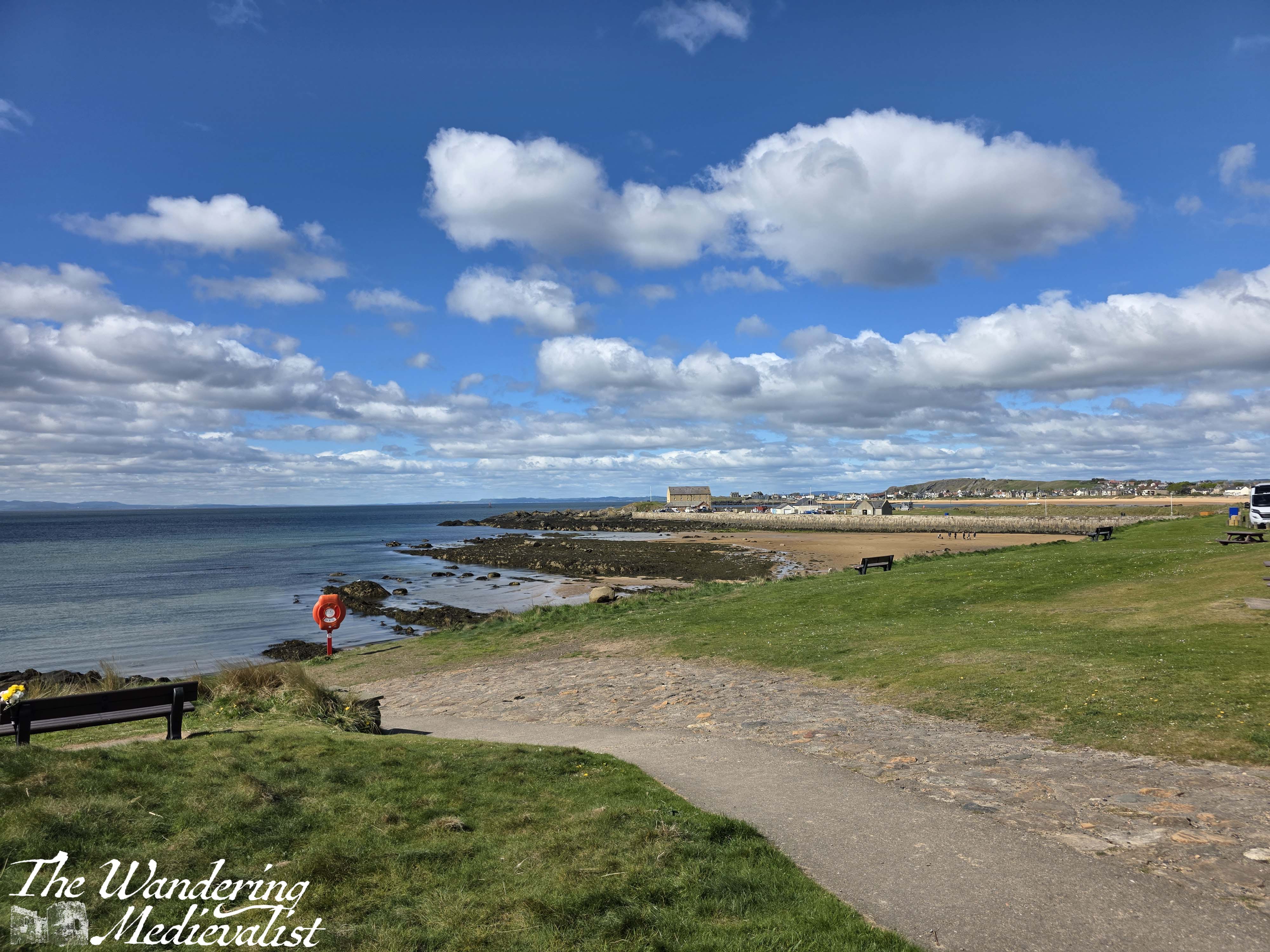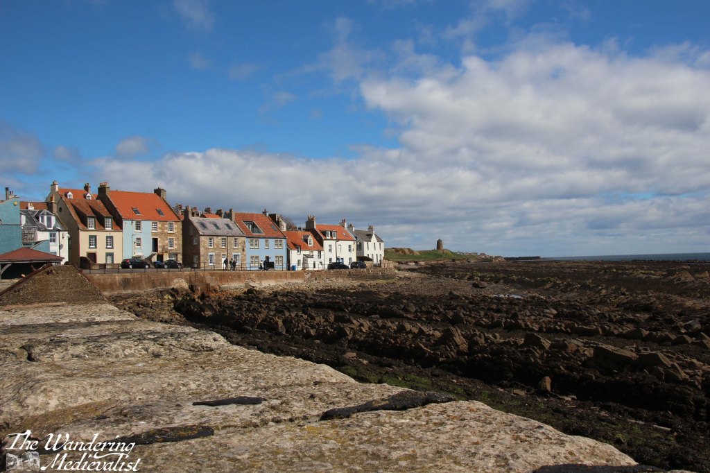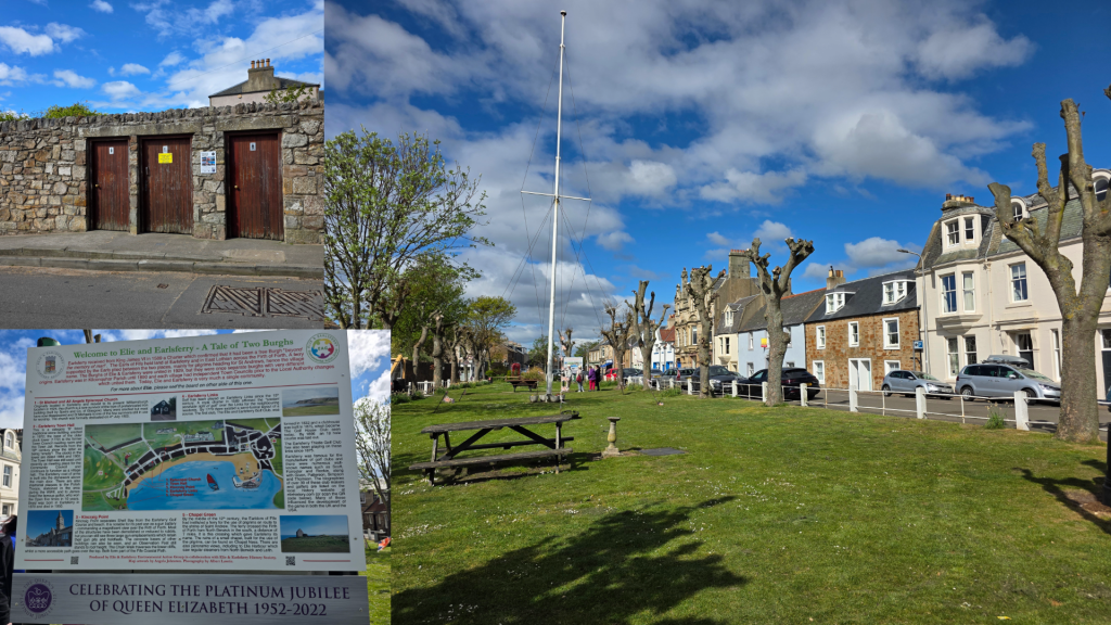 I alighted from the bus just next to the village green in Elie, where there is a detailed plaque telling you about the history of the town and Earlsferry, which is part of the burgh. As the name suggests, prior to the building of the Forth bridge, a ferry took travellers – mostly religious pilgrims destined for St Andrews – across the water from Edinburgh and landed here. The beach is wide and flat, making it a perfect landing spot.
