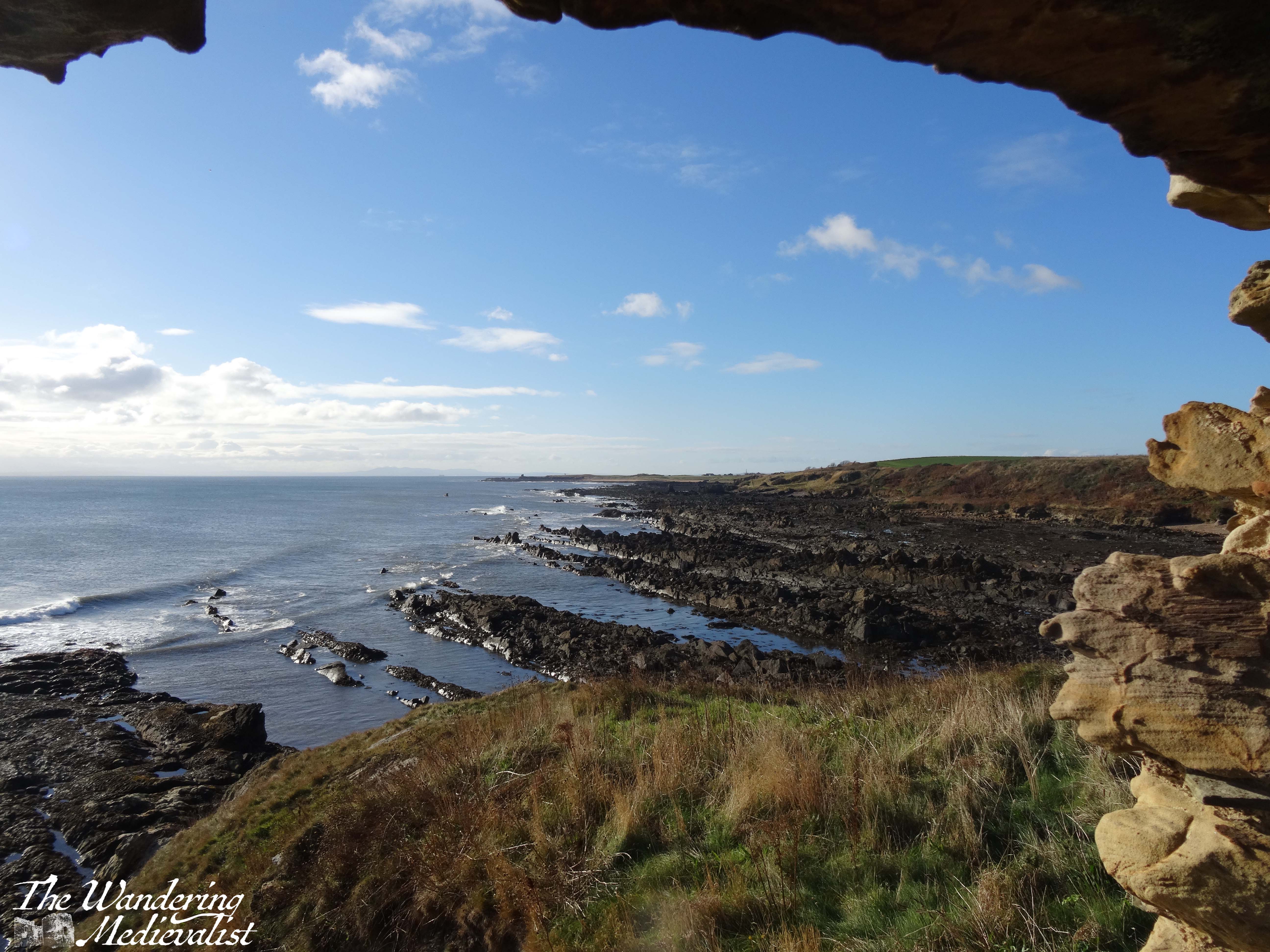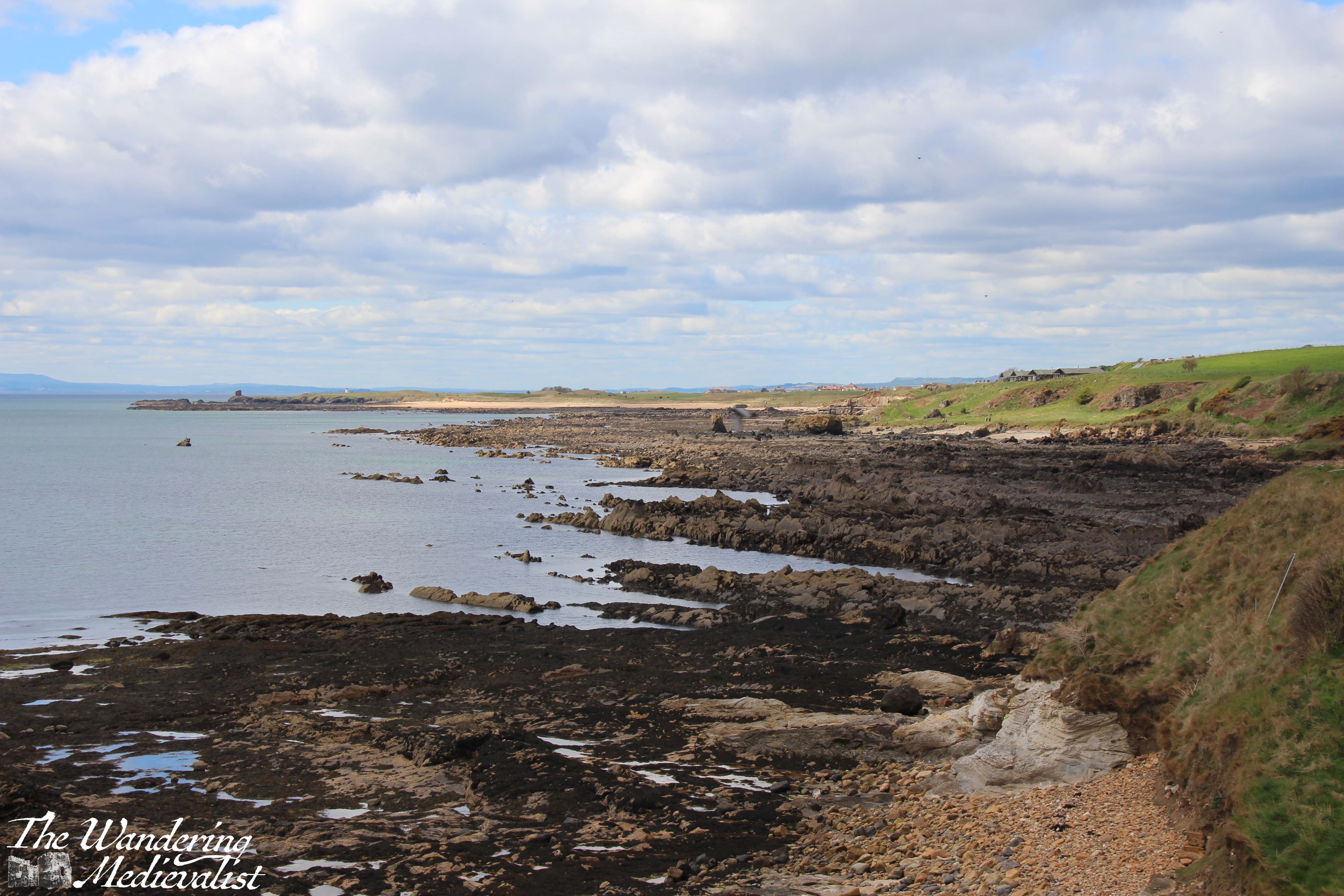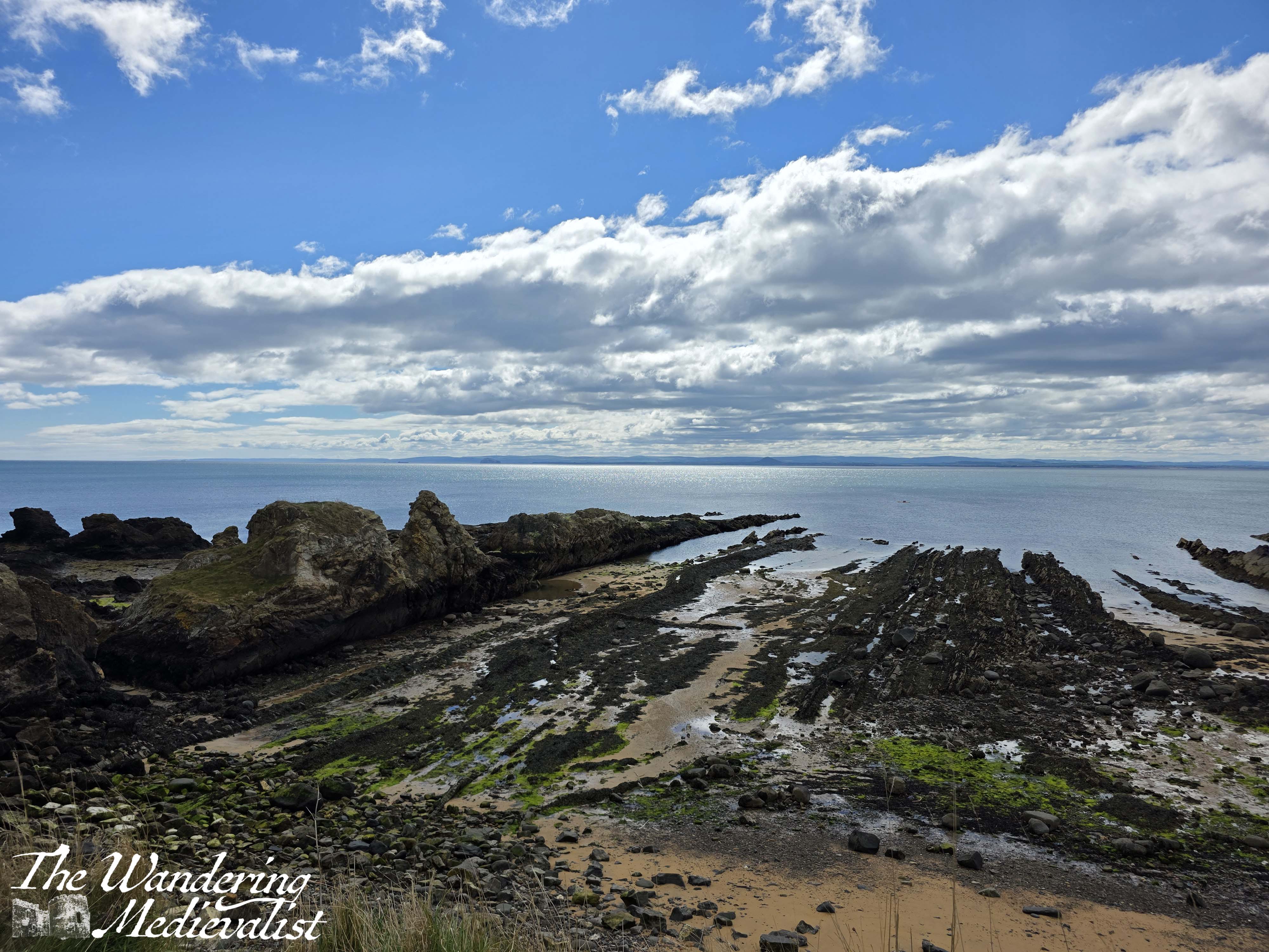 I opted to take one of several left-hand paths, walking through the grass and ending up at the ridge of the dune above the beach. Beaches on Fife are not always fortunate enough to be layered in sand, and even the ones that are eventually open up to the long shale ridges that stretch out into the water in sometimes knife-sharp edges. The Coastal Path offers no shortage of these views, as you will see further on in this post.