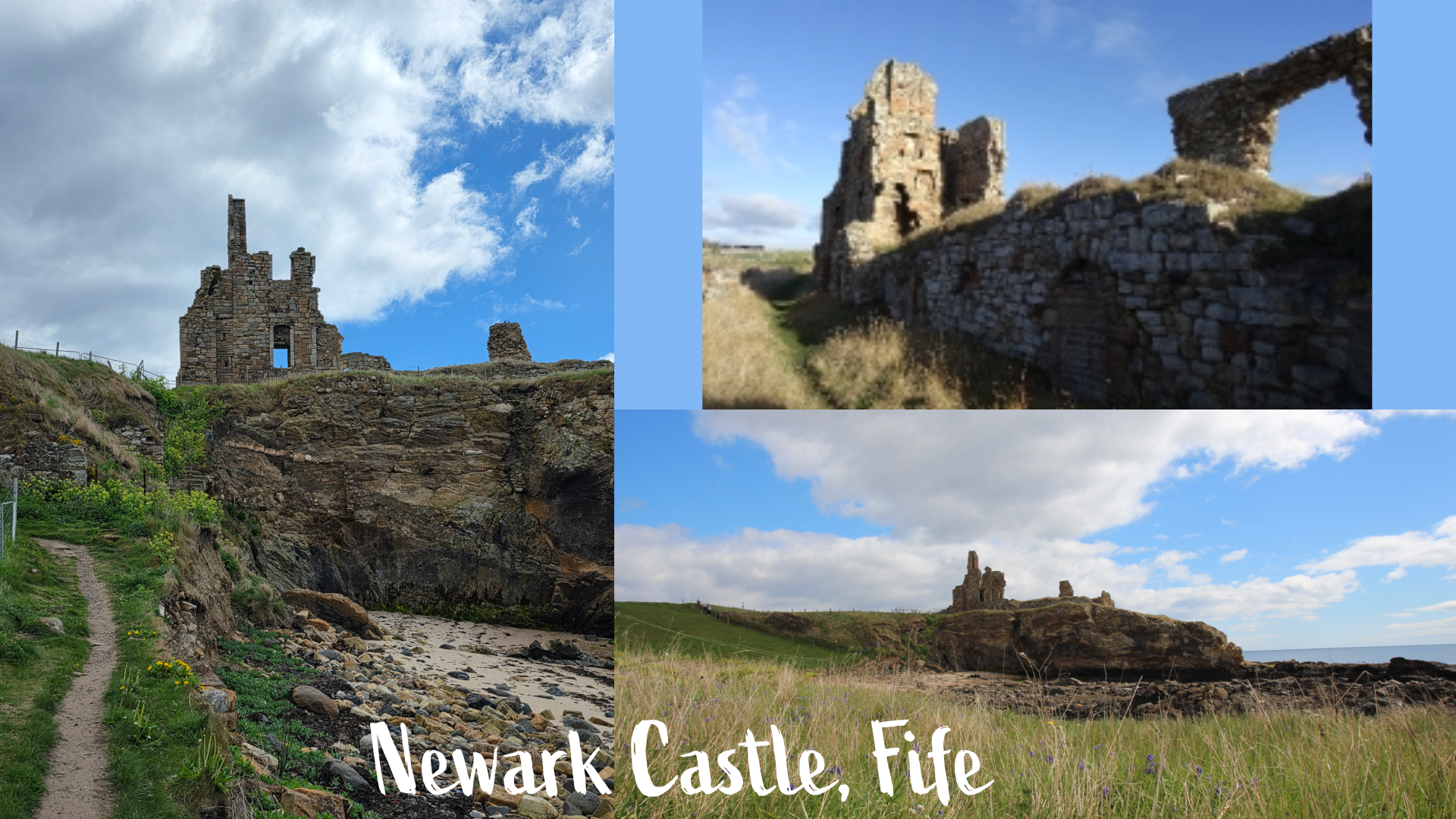 Rising above the beach at this point was a promontory boasting the remains of Newark Castle. Several years back when I hiked this trail, we were able to get right up to the castle, but danger of falling masonry keeps walkers back at a distance today. Constructed in the 15th century, the castle has just enough left to evoke the imagination of what was once there.