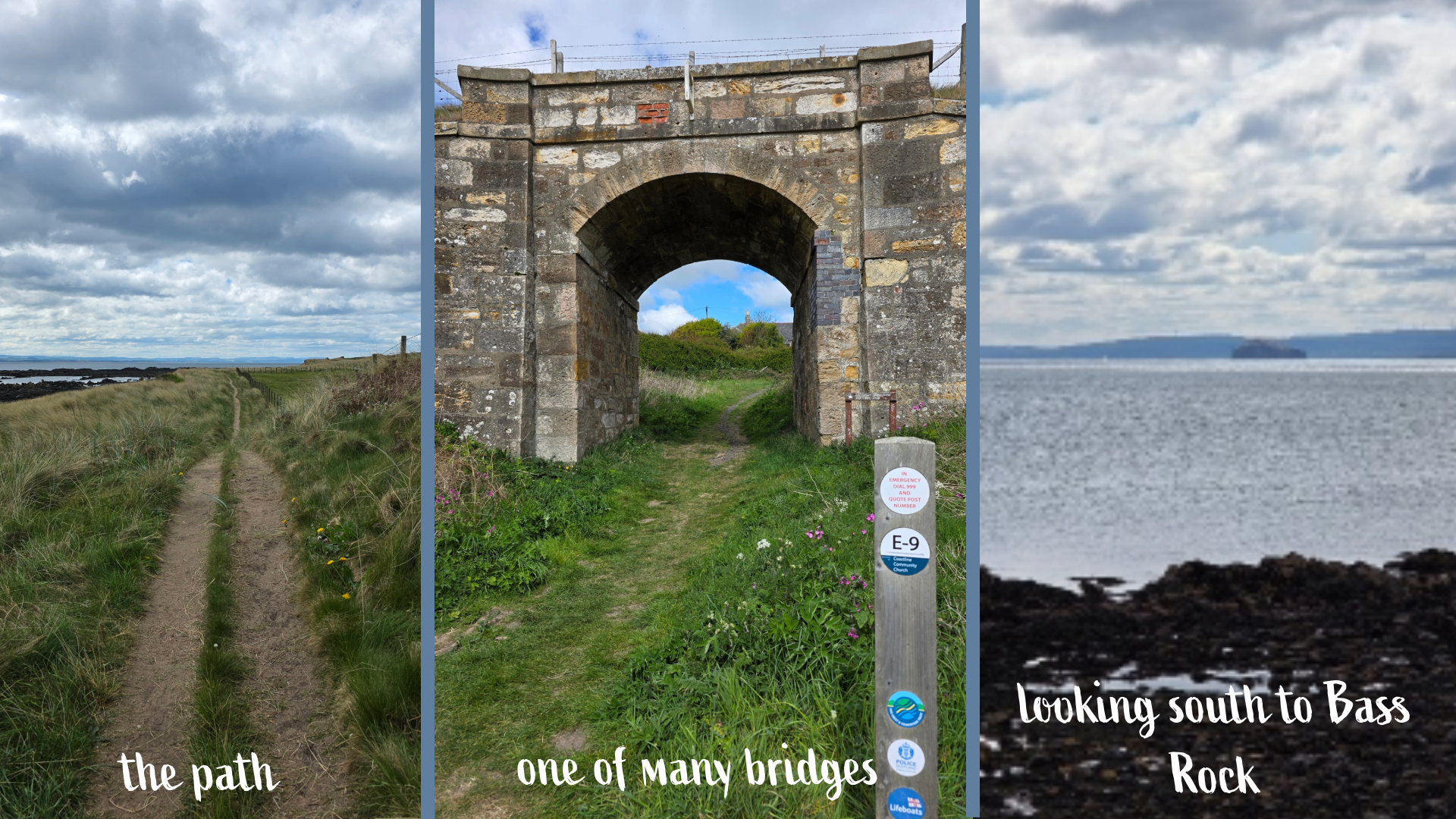 The path here is a well-kept rut between tall grass, but firm and well-kept, with a decent amount of up and down along hillocks. About a mile from the car park, there is the first of several bridges that allow coastal walkers to cut up to the main road.
