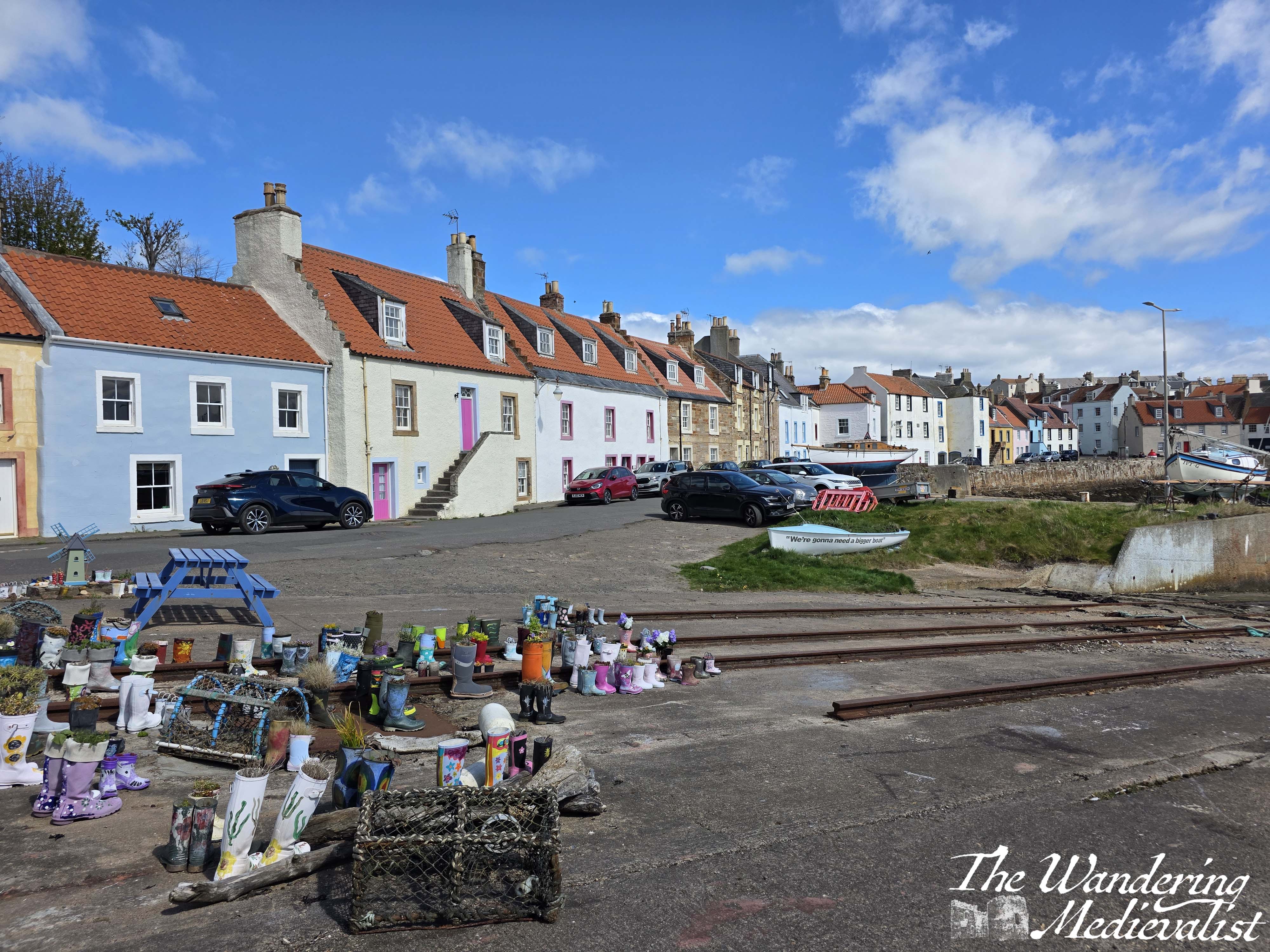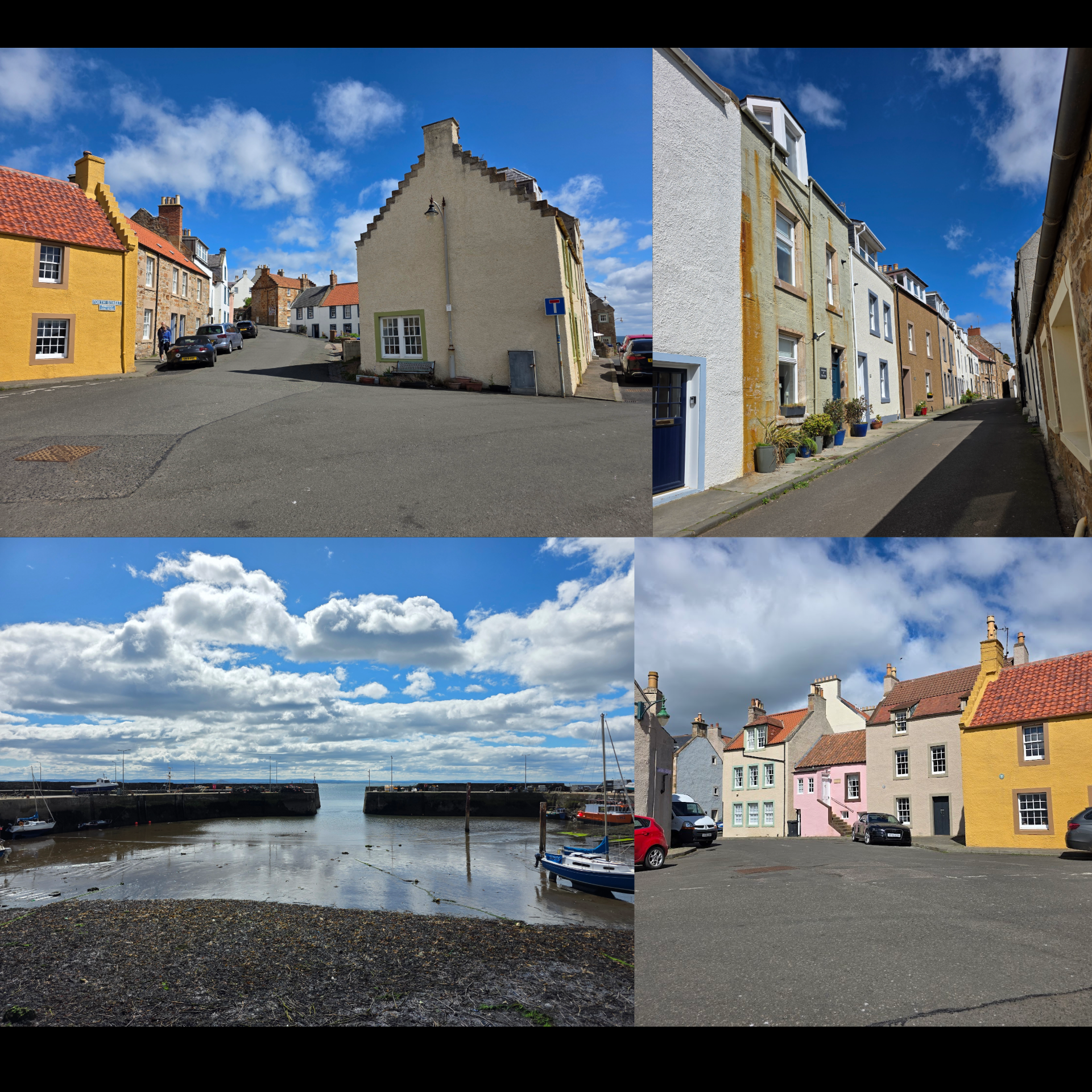 St Monans is an incredibly well-kept village with a good harbour, where for more than 200 years there was a prosperous boat-building company. There are beautiful old houses reminiscent of parts of New England to me (though stone of course rather than wood), and winding routes that cars can only just manage.