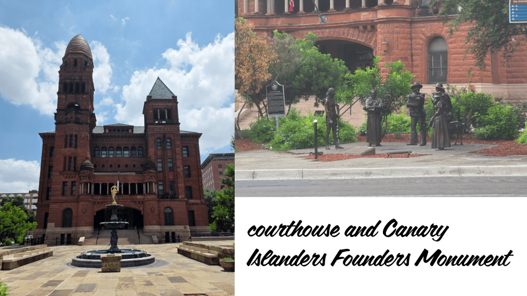 In time we looped back into the city, and while I enjoyed the tour immensely, I wanted to explore the San Fernando Cathedral, which I had passed briefly earlier in the day. So, I alighted just outside the city courthouse, where I was surprised to see a group of statues labelled ‘Canary Islanders’. This seemed incredibly random to me, and on later research I discovered that this is known as the Founders Monument, honouring 56 Canary Islanders who arrived in San Antonio in March 1731 and established the first civilian government in the area.
