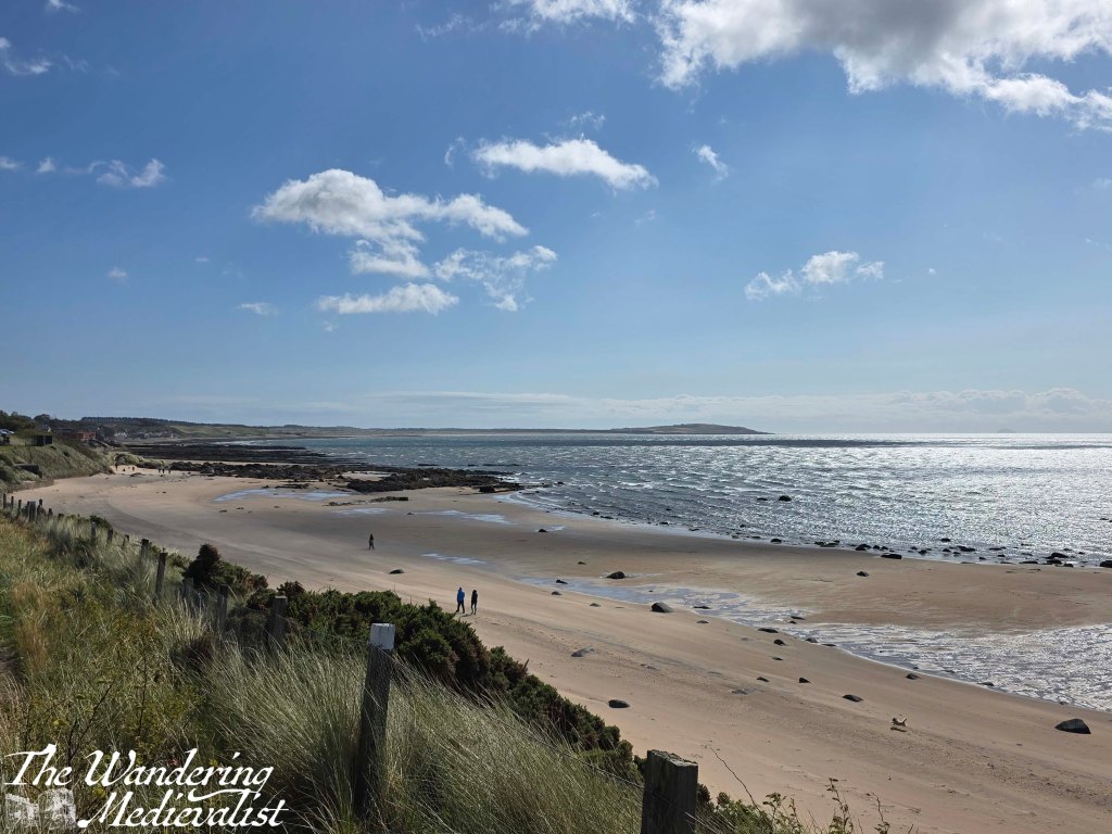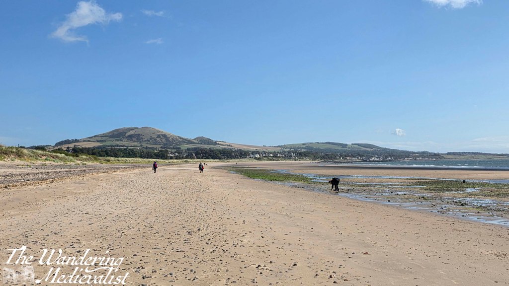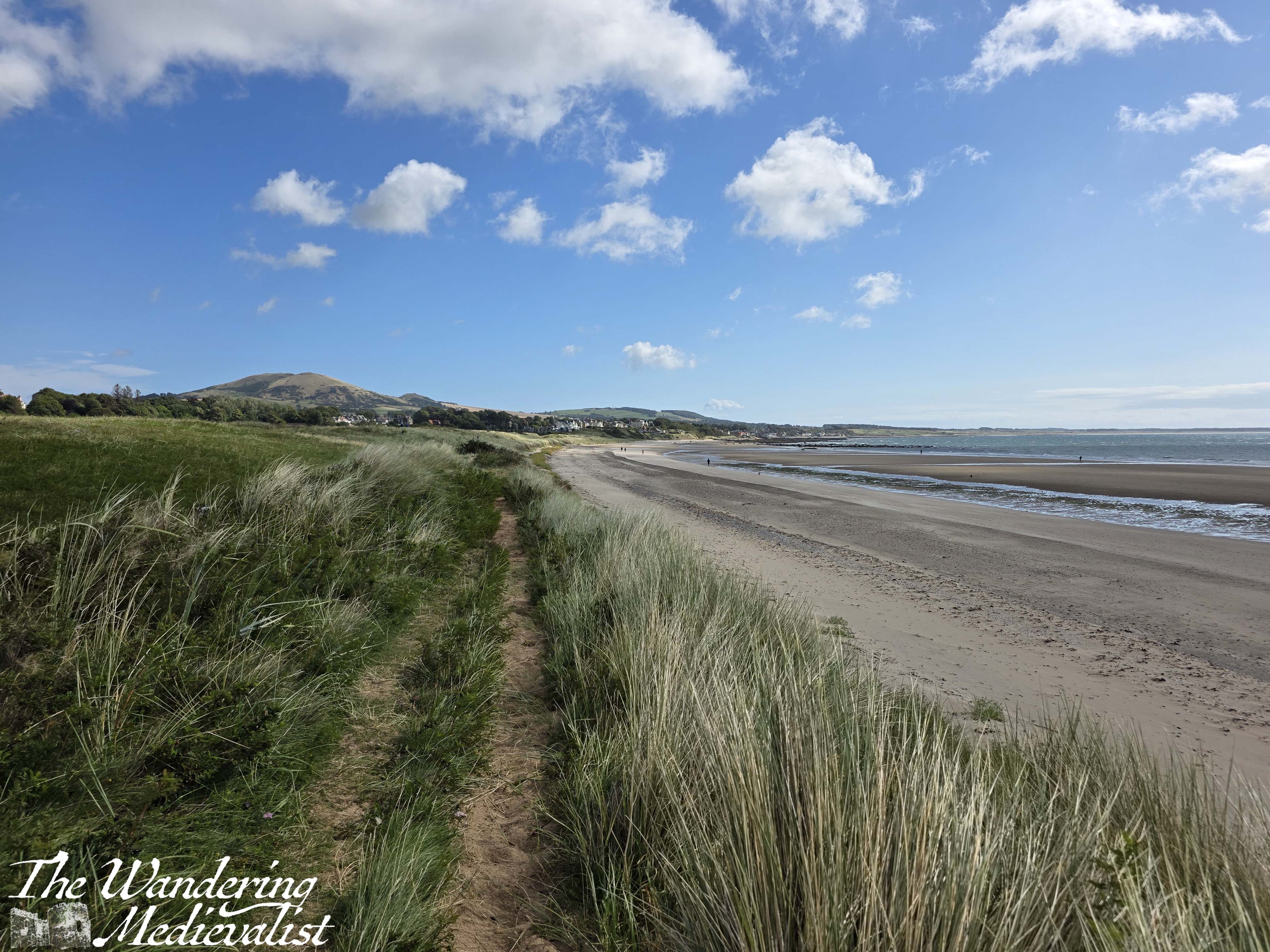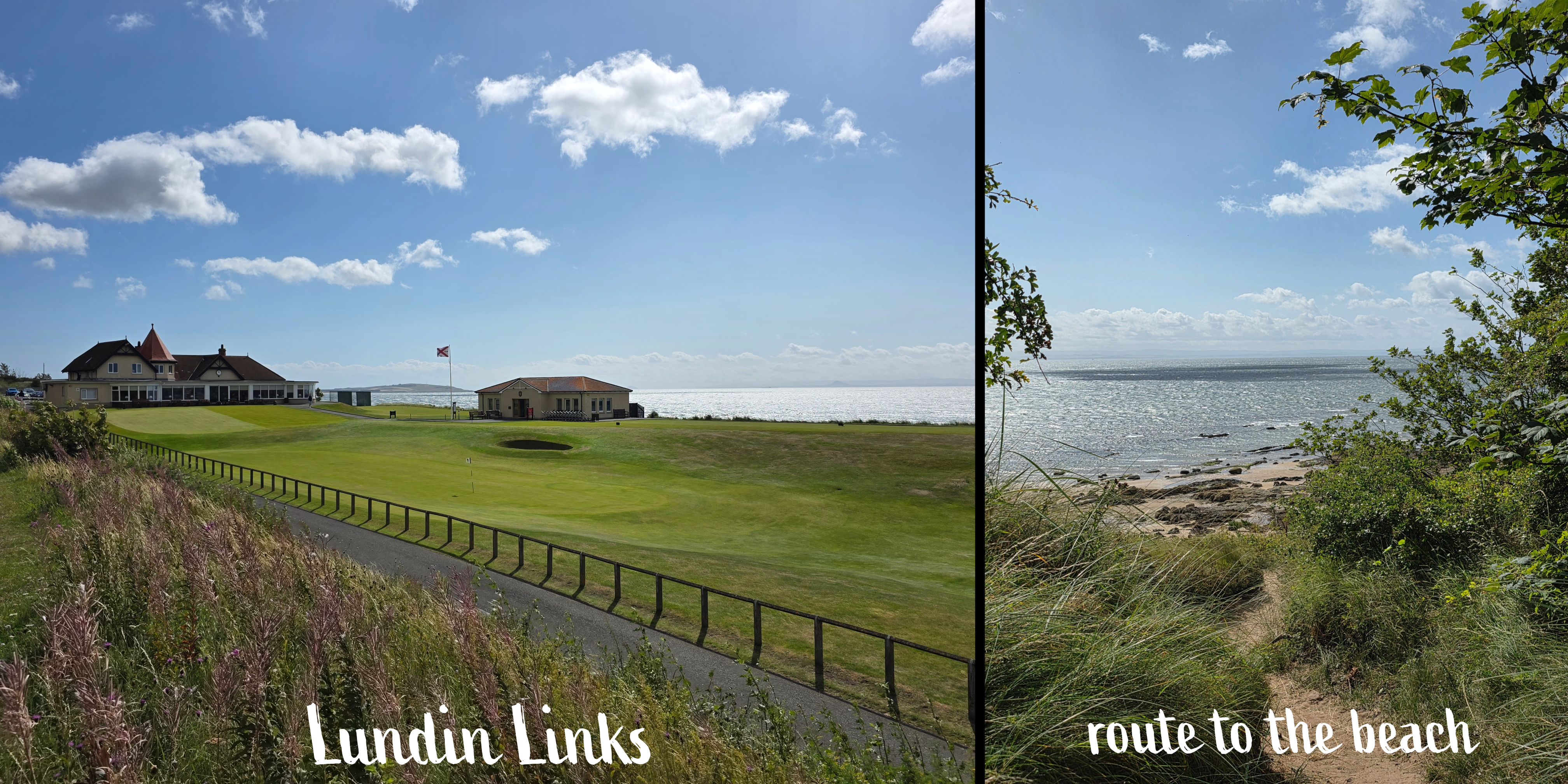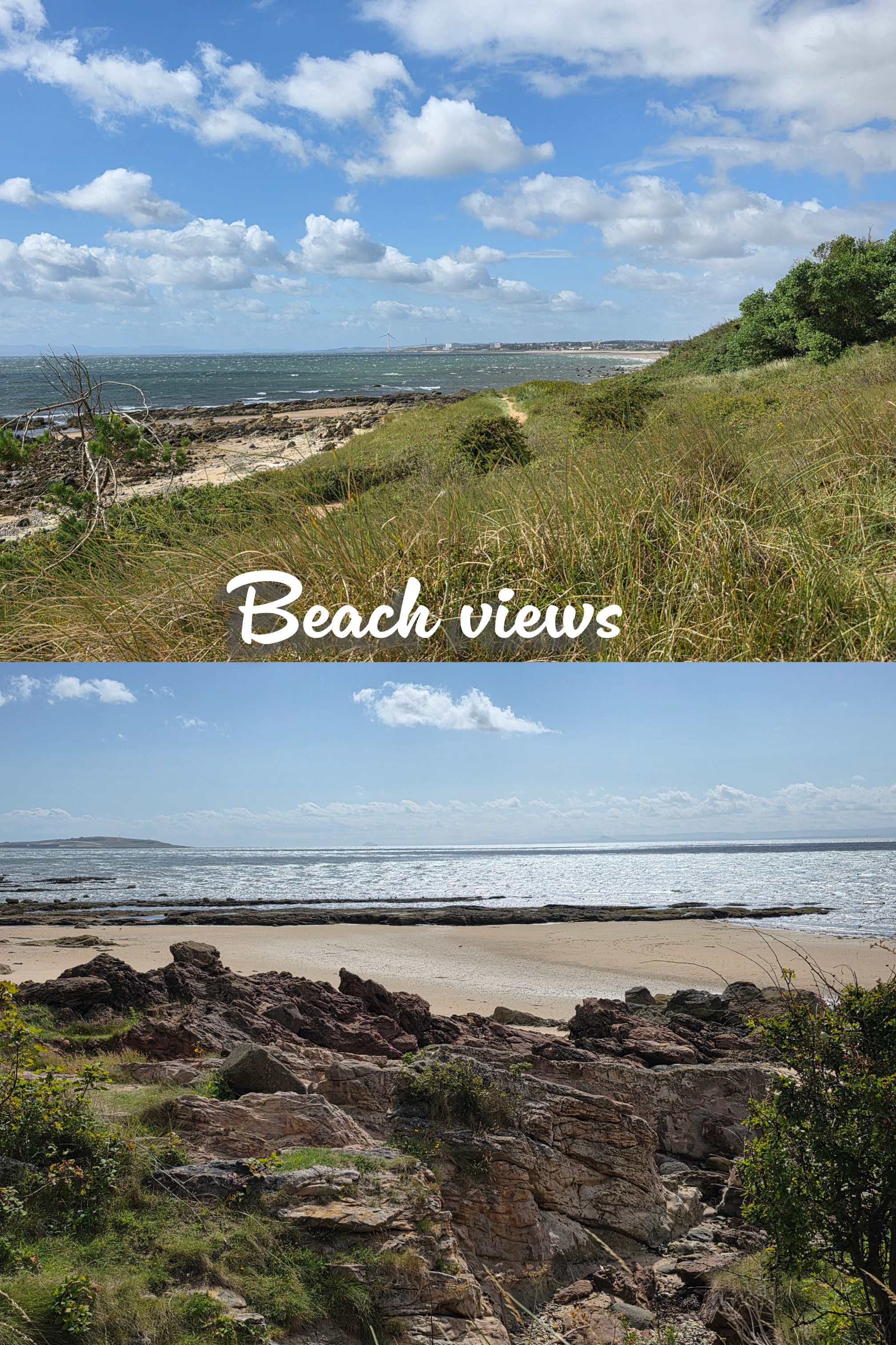 As the path moves around the bay, Largo Law shifts further to the left, and the well-kept houses of Lundin Links appear along the distant edge of the golf course. At some point this becomes Lundin Links rather than Leven, though I’m not sure where – probably at the stone wall that seems to cut a relatively even division down the grassy slopes. On the beach, the pristine sand slowly becomes rockier, first by the waterline and then gradually moving inland, with sand replaced by the rock shelves so common in Fife. With the dunes and long grass edging the beach, it is just a really beautiful few miles, and could probably mostly be done on the sand itself, should a walker prefer the beach.